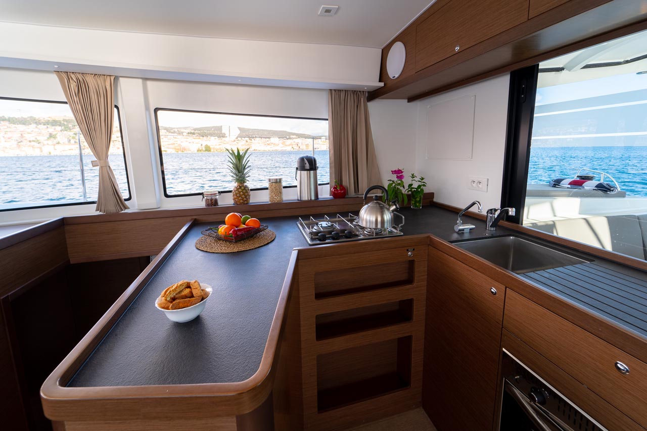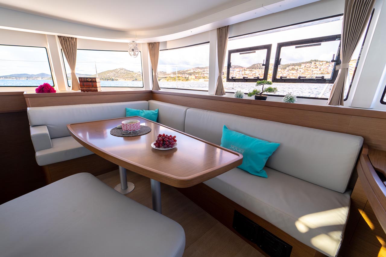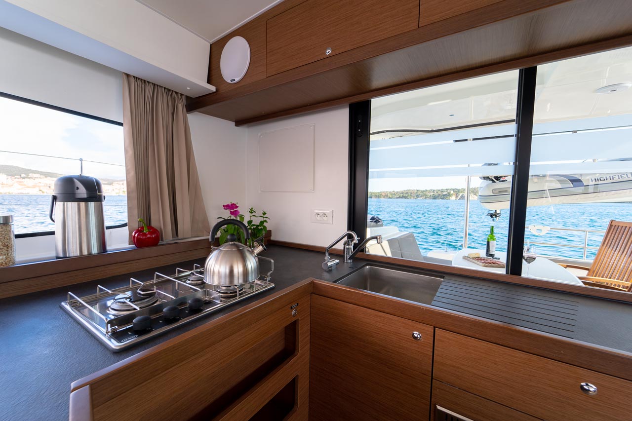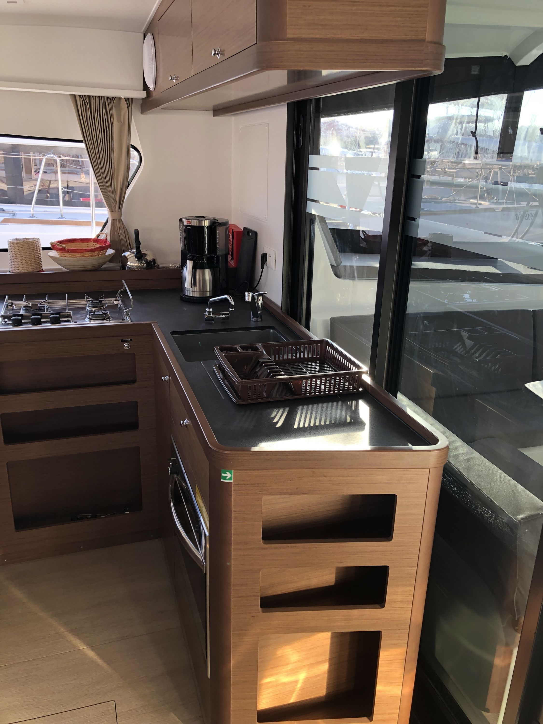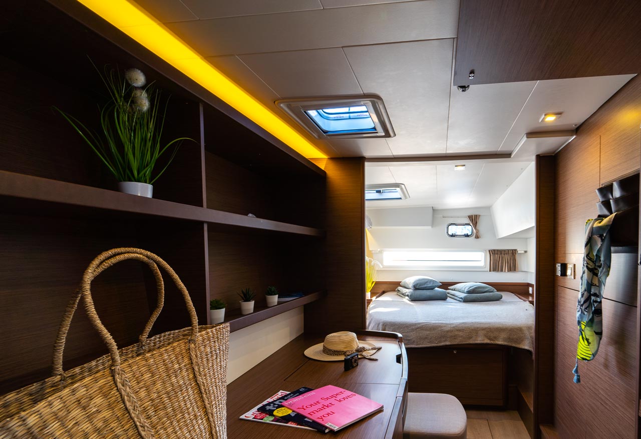 | Inside | Borduhr, Heizung, Inverter 12V/220V, Kühlschrank, Ladegerät, Luftpumpe für Beiboot, Pantryausstattung, Radio mit CD/MP3/USB/AUX-In, Salontisch absenkbar, USB Steckdose, Ventilatoren in Kabinen, Warmwasser, WC (elektr.) |