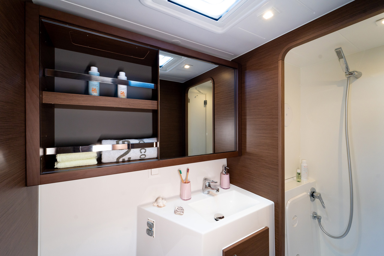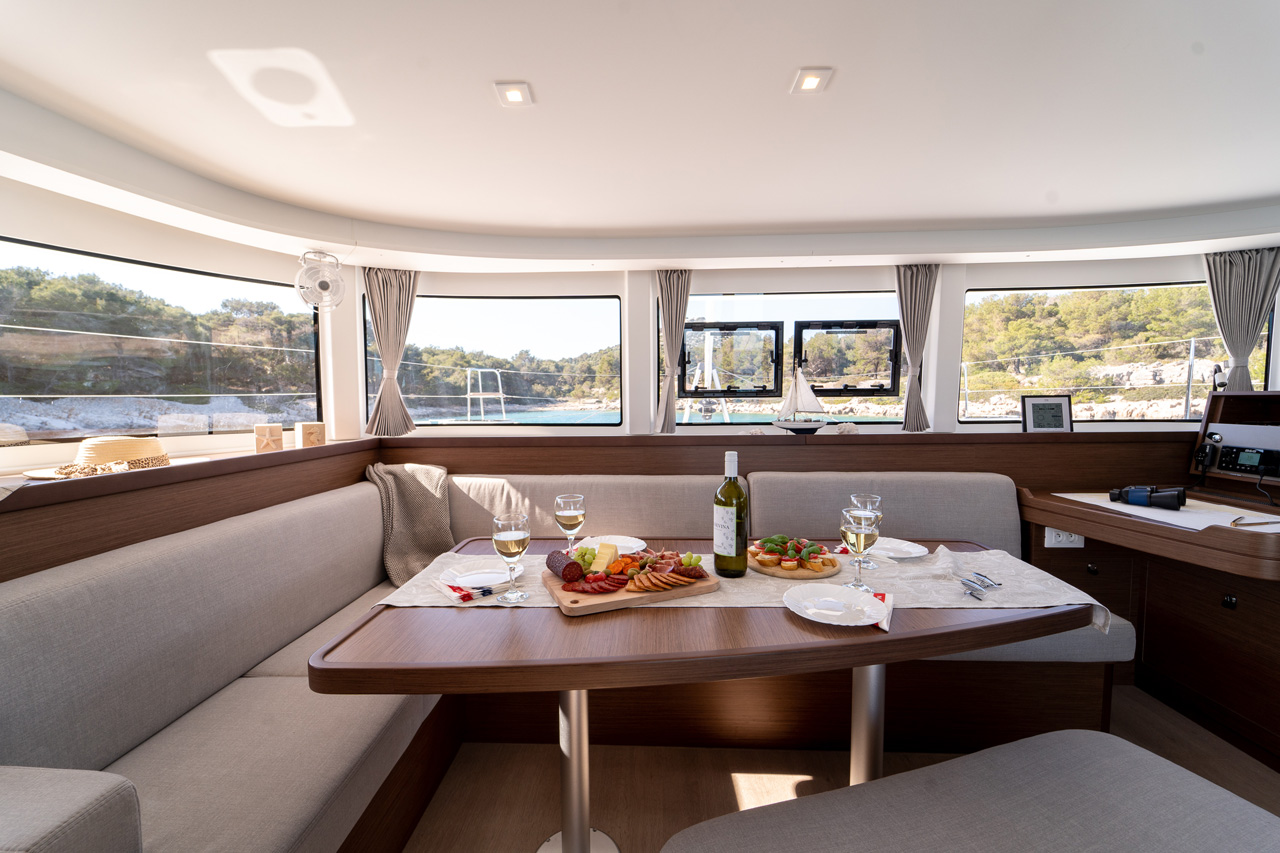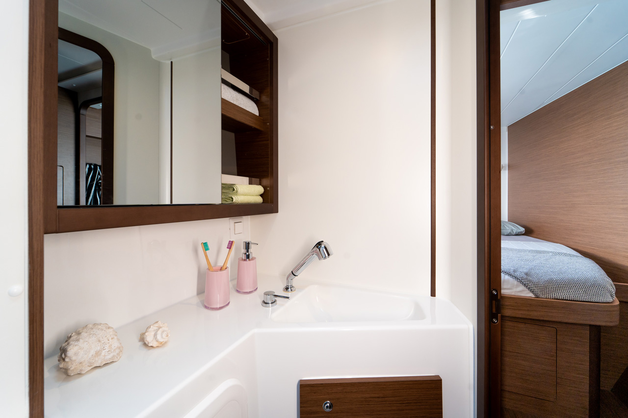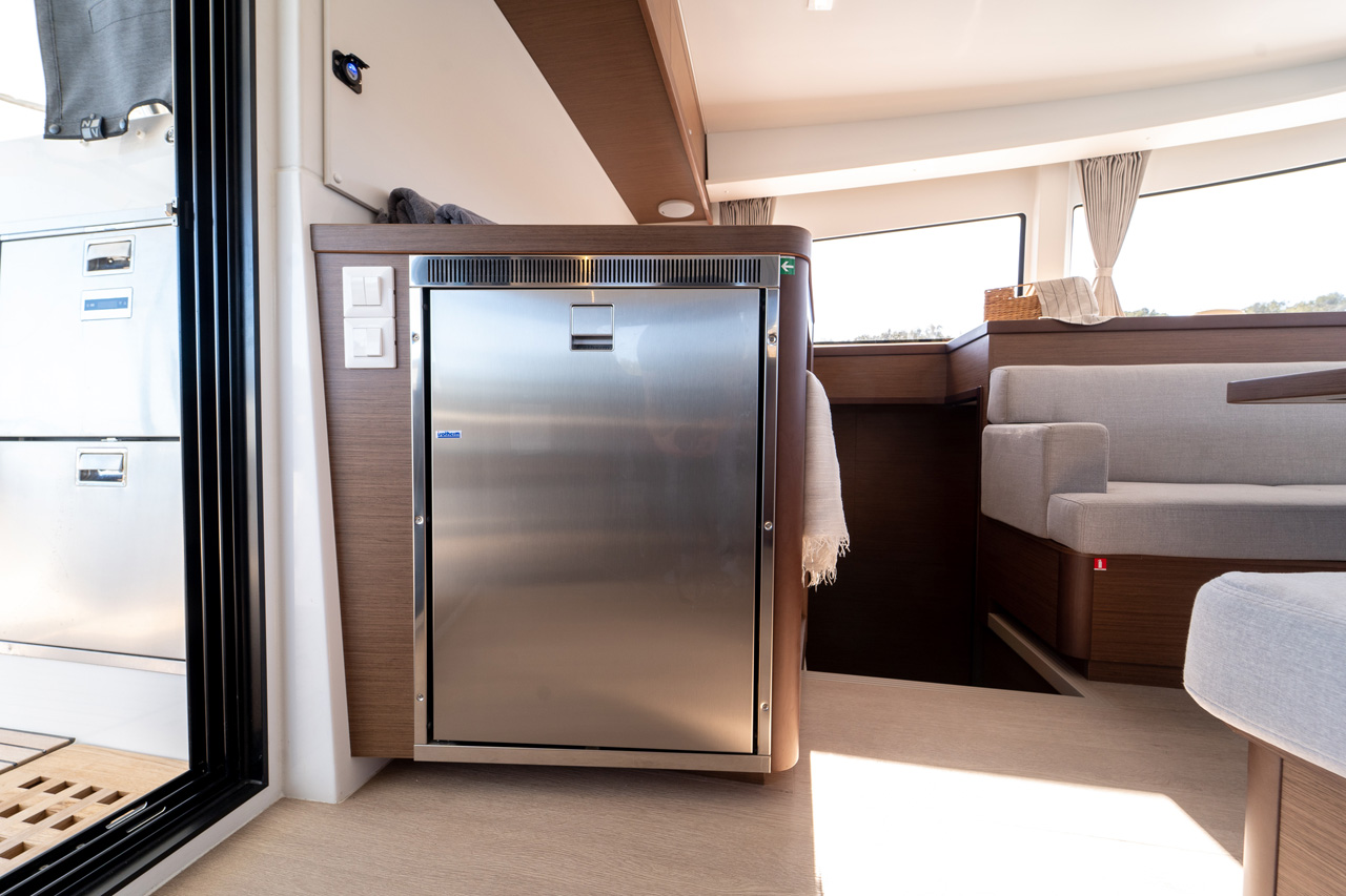 | Inside | Borduhr, Eiswürfelmaschine, Generator, Heizung, Inverter 12V/220V, Kaffeemaschine, Klimaanlage, Kühlschrank, Ladegerät, Luftpumpe für Beiboot, Pantryausstattung, Radio, Salontisch absenkbar, USB Steckdose, Ventilatoren in Kabinen, Warmwasser, Watermaker, WC (elektr.) |