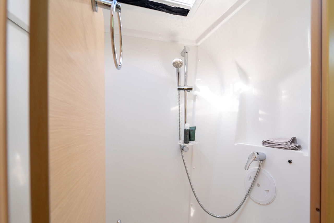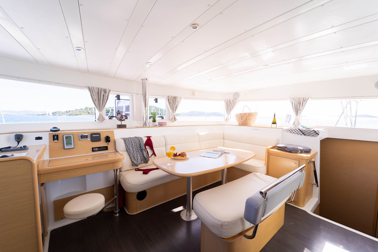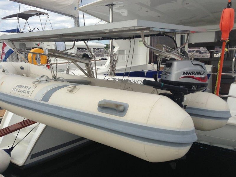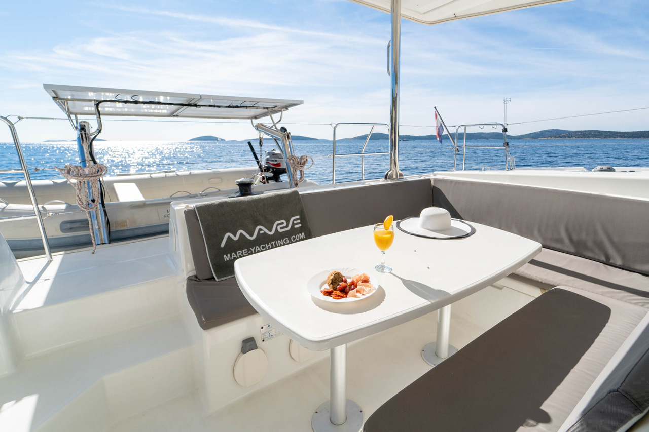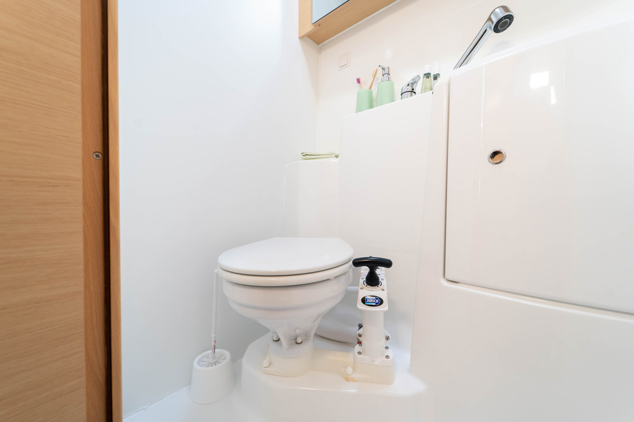 | Inside | 2. Kühlschrank, Borduhr, Gefrierschrank, Generator, Heizung, Inverter 12V/220V, Klimaanlage (ohne Landstrombedarf), Kühlschrank, Ladegerät, Luftpumpe für Beiboot, Pantryausstattung, Radio mit CD, AUX und USB, Salontisch absenkbar, USB Steckdose, Ventilatoren in Kabinen, Warmwasser, Watermaker |