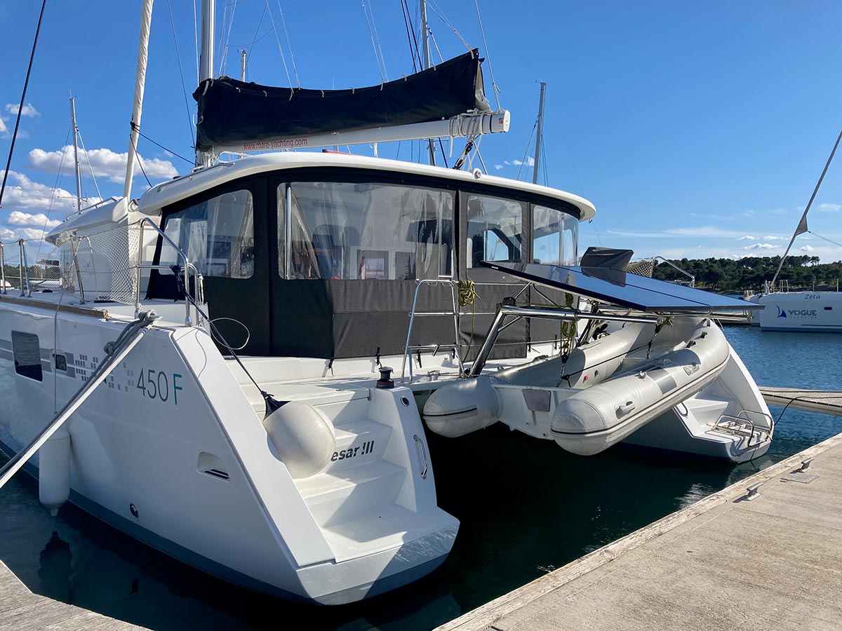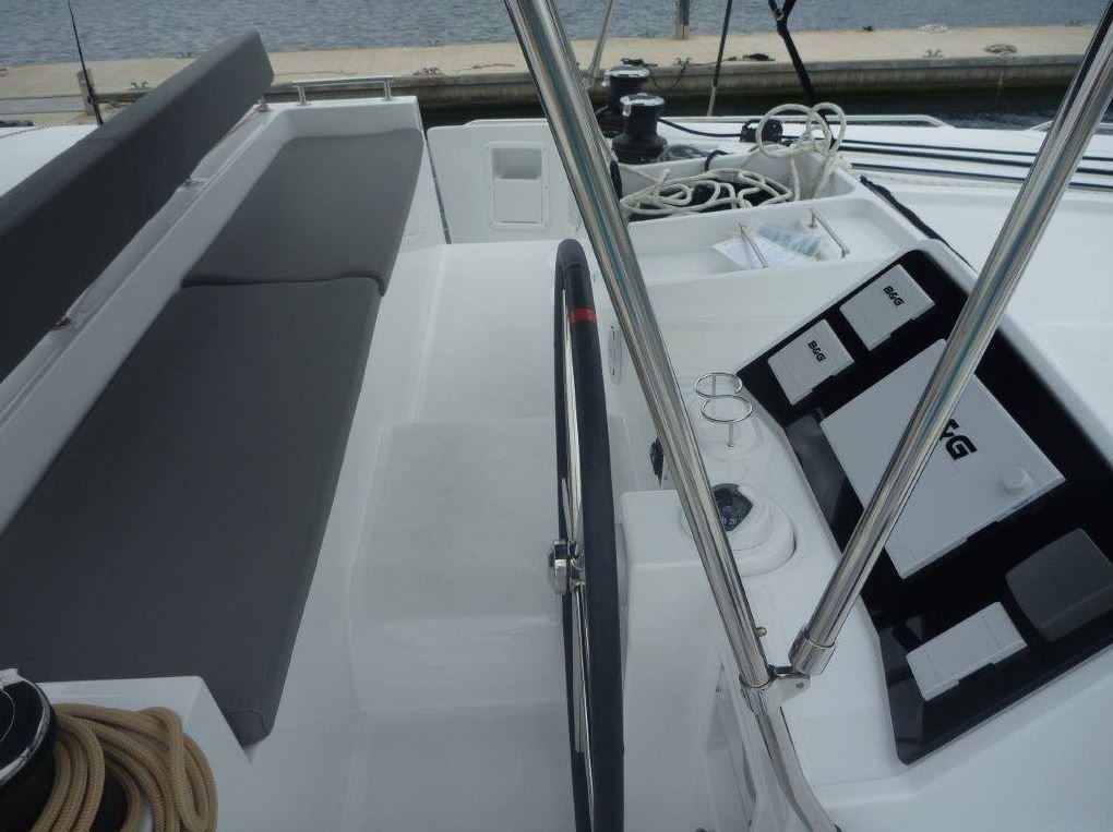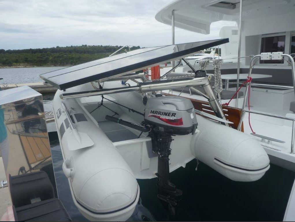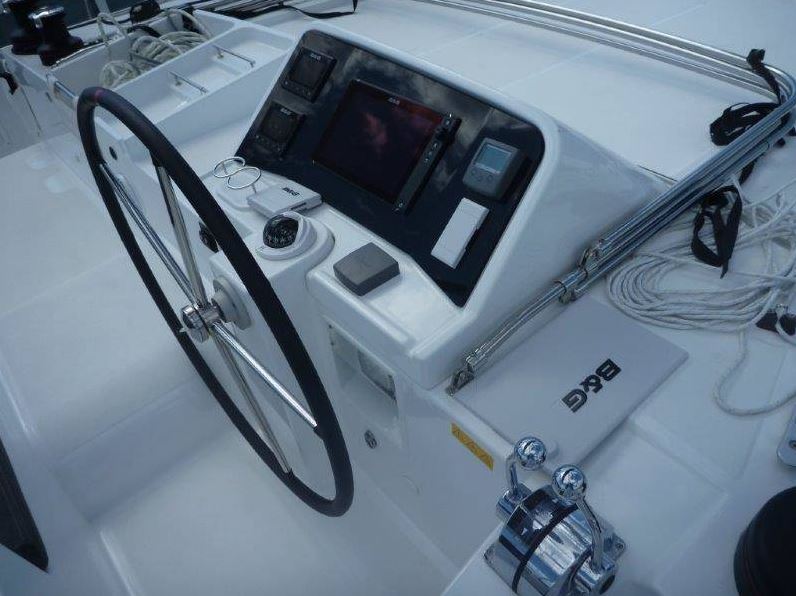 Outside 220 V-Landanschluss, Anker mit Kette, Ankerwinsch, Biminitop, Bootshaken, Cockpitdusche, Cockpitlautsprecher, Cockpitpolster, Cockpittisch, Cockpitverdeck, Davits, elektr. Ankerwinsch, elektr. Winsch, Fender, Festmacherleinen, Gangway, Kugelfender, Kunststoff-Eimer (Pütz), Solaranlage, Sonnendeck, Unterwasserbeleuchtung, Wantenschneider, Wasserkanister , Wasserschlauch