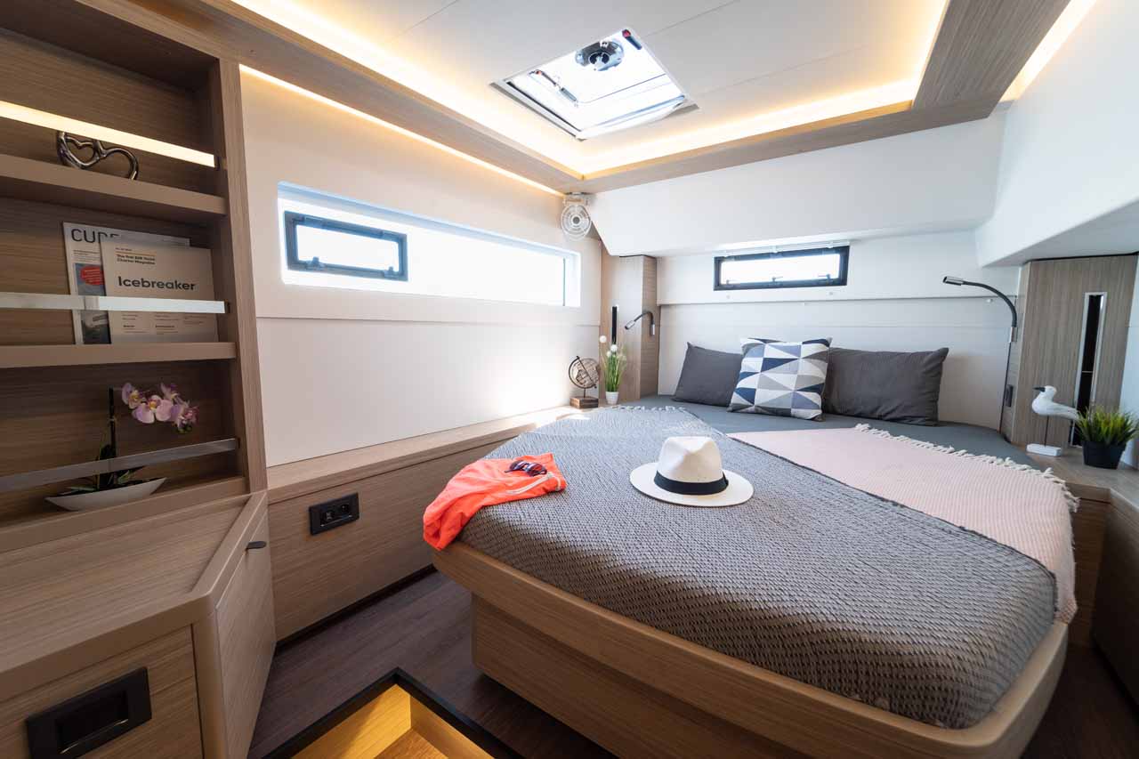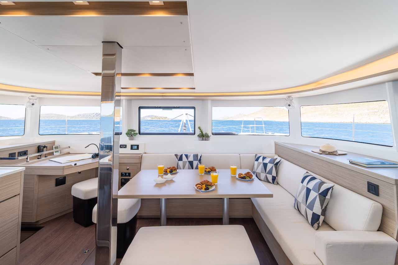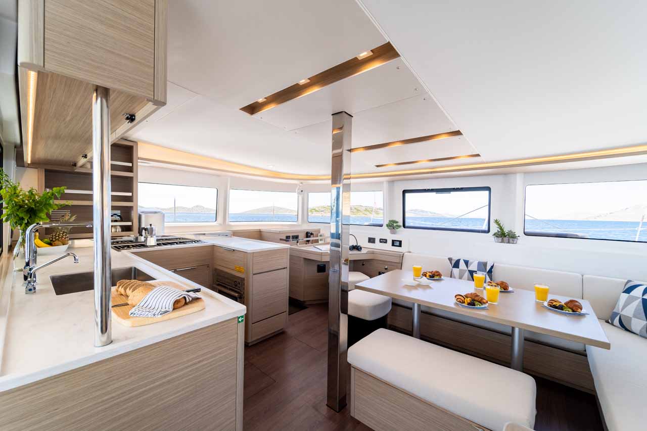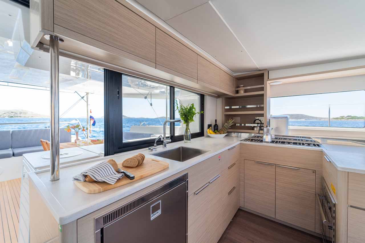 | Inside | Borduhr, Eiswürfelmaschine, Generator, Geschirrspüler, Heizung, Inverter 12V/220V, Kaffeemaschine, Klimaanlage (ohne Landstrombedarf), Kühlschrank, Ladegerät, Luftpumpe für Beiboot, Pantryausstattung, Radio, USB Steckdose, Ventilatoren in Kabinen, Warmwasser, Watermaker, WC (elektr.) |