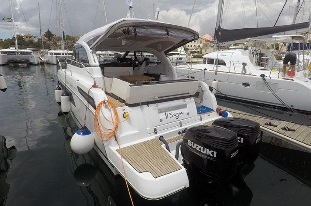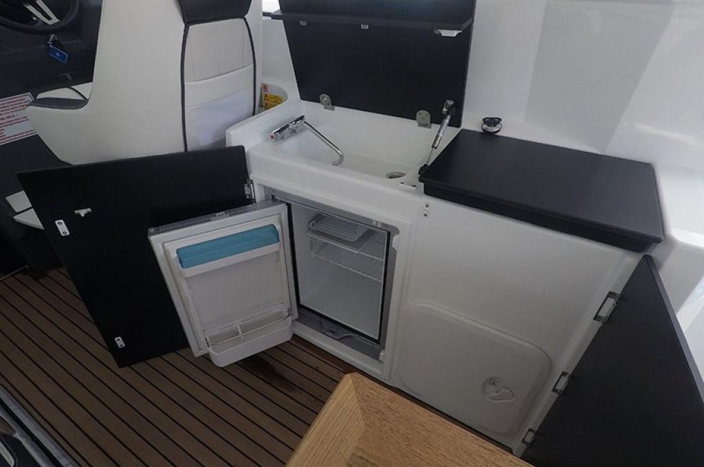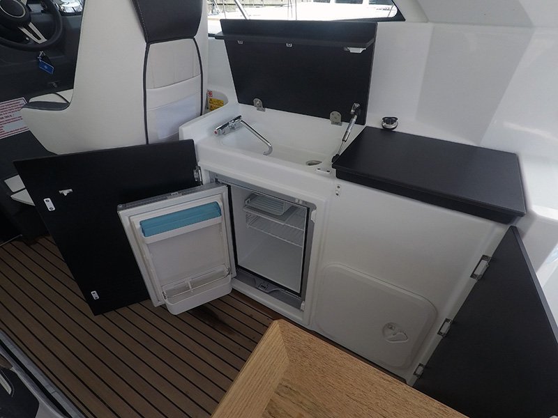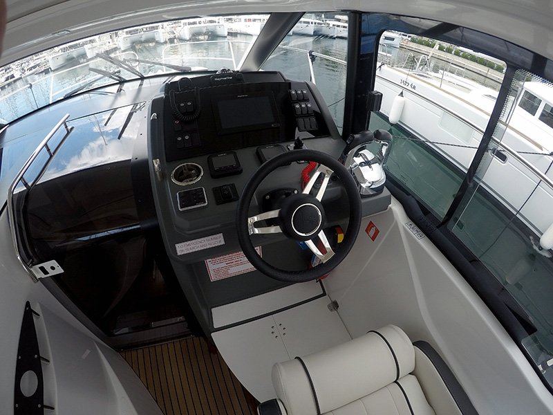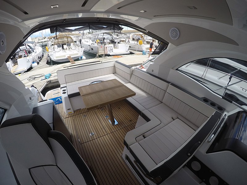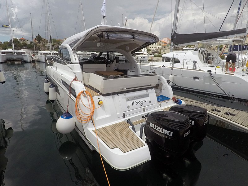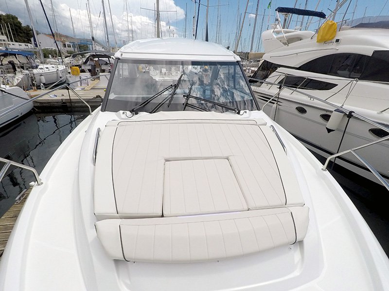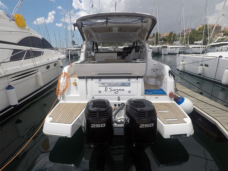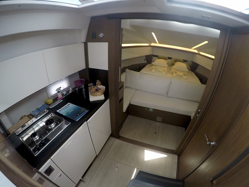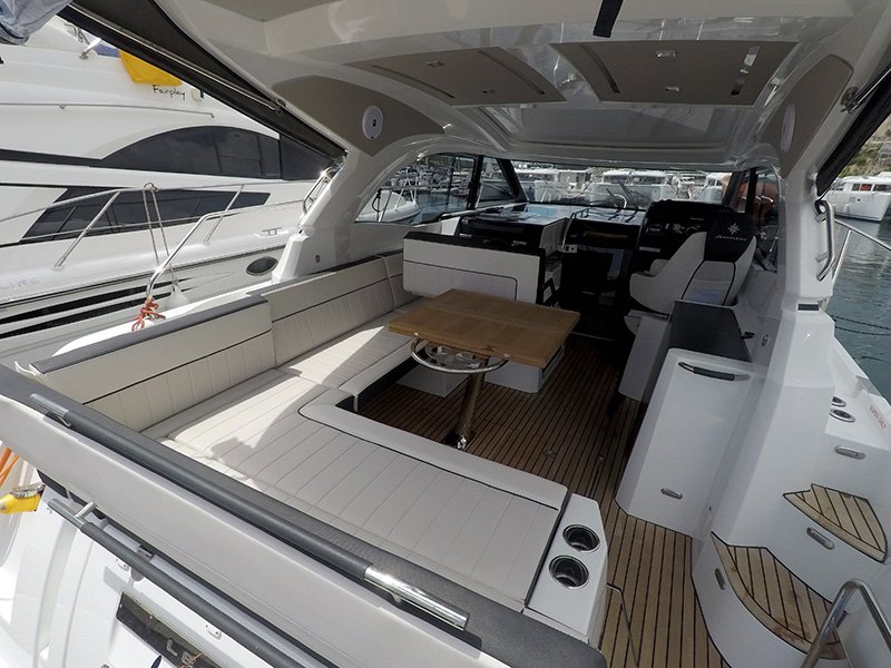 | Outside | 220 V-Landanschluss, Anker mit Kette, Anker mit Seil, Badeleiter, Bootshaken, Cockpitdusche, Cockpitlautsprecher, Cockpitpolster, Cockpittisch, Deckbürste, Delta-Anker, elektr. Ankerwinsch, Fender, Festmacherleinen, Gangway, Hardtop, Wasserschlauch, Winschen |