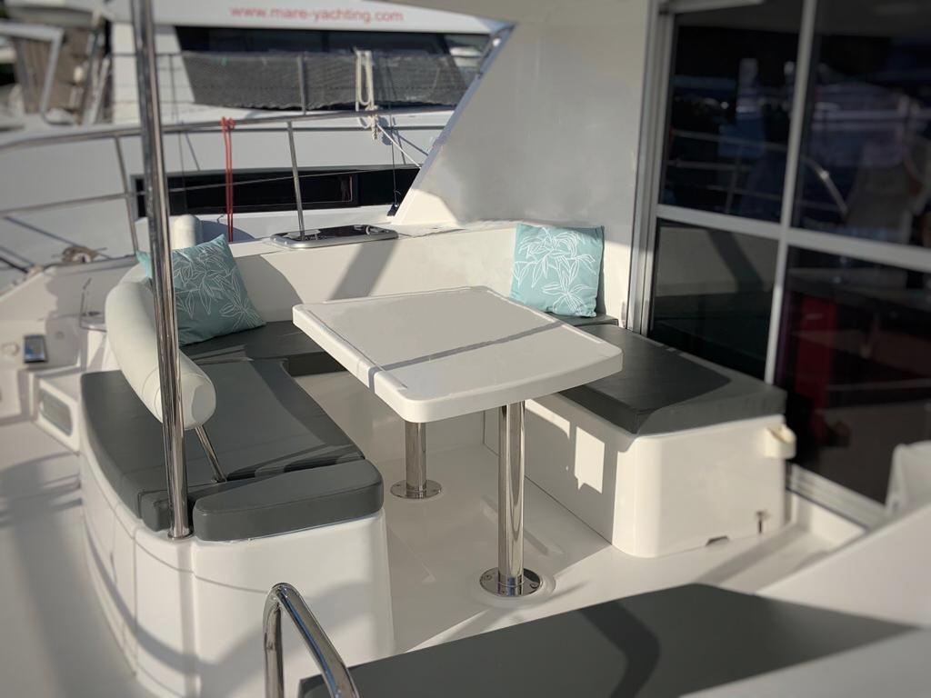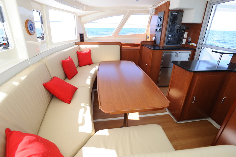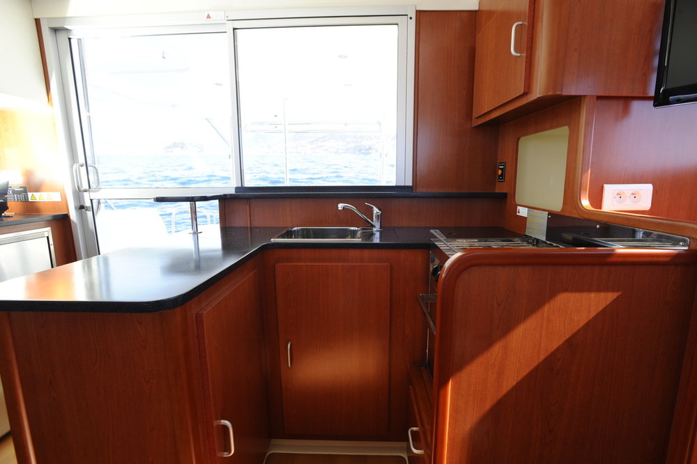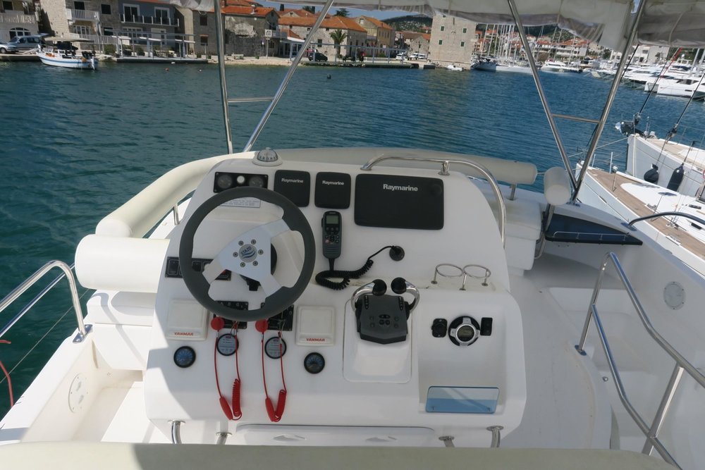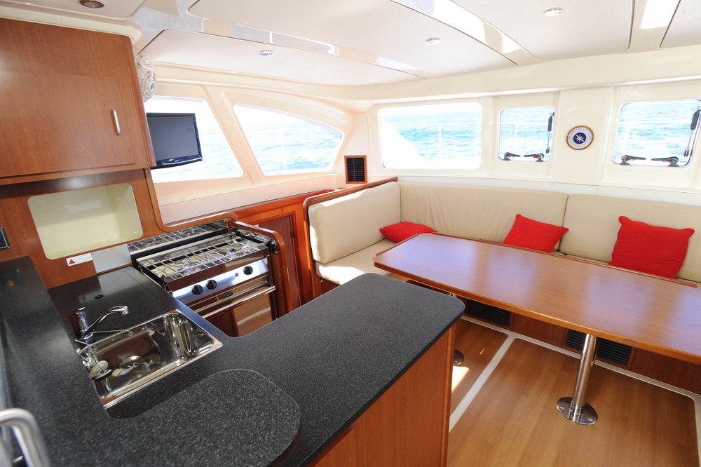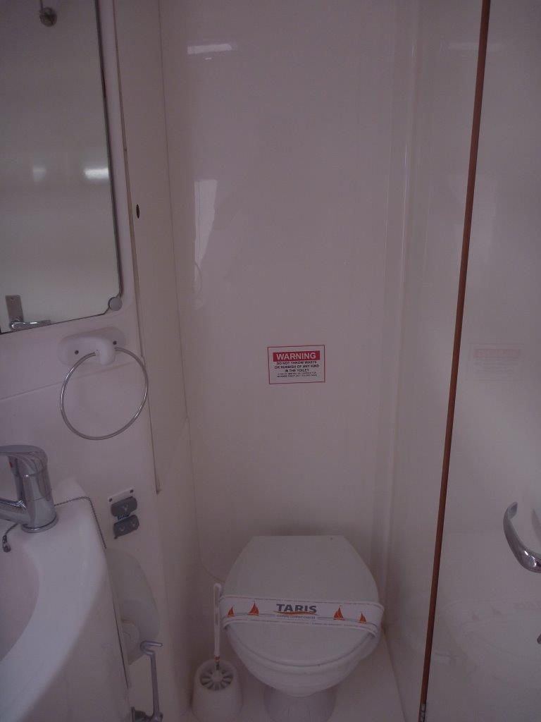 | Inside | Borduhr, Generator, Heizung, Inverter 12V/220V, Klimaanlage (ohne Landstrombedarf), Kühlschrank, Ladegerät, Luftpumpe für Beiboot, Pantryausstattung, Radio mit CD, AUX und USB, Ventilatoren in Kabinen, Warmwasser, WC (elektr.) |