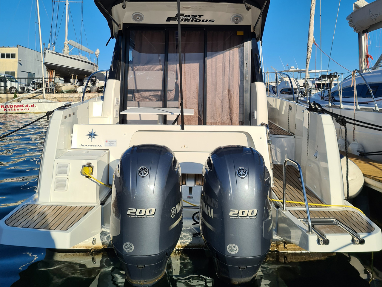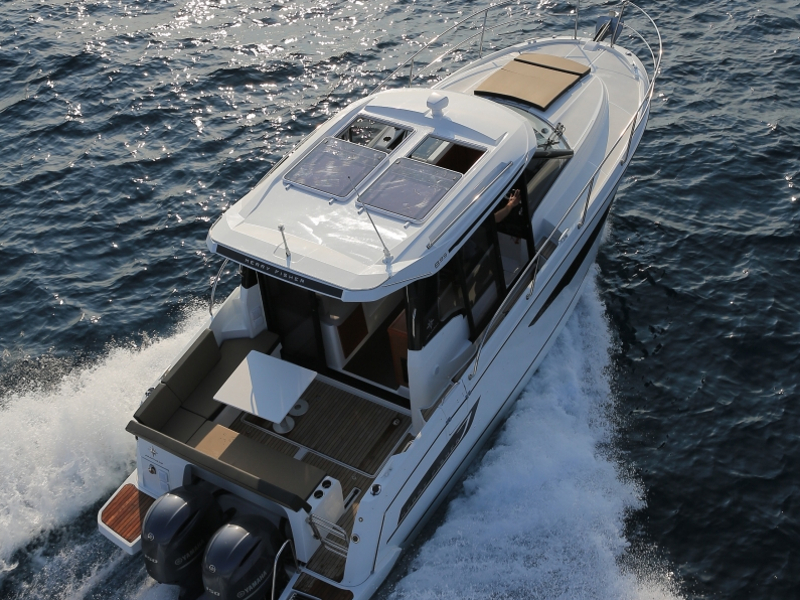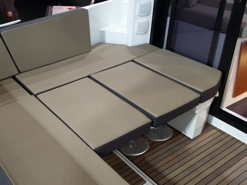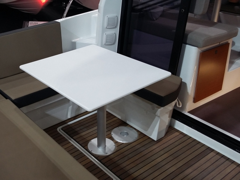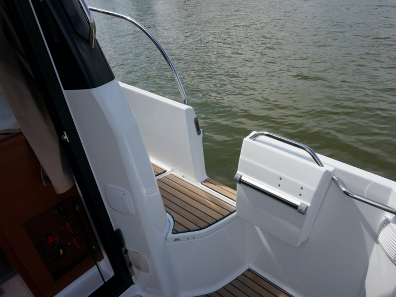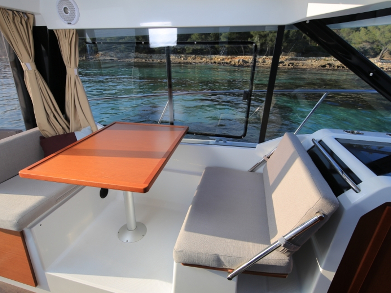 | Outside | Biminitop, Cockpitdusche, Cockpitlautsprecher, Cockpittisch, elektr. Ankerwinsch, Teak im Cockpit |