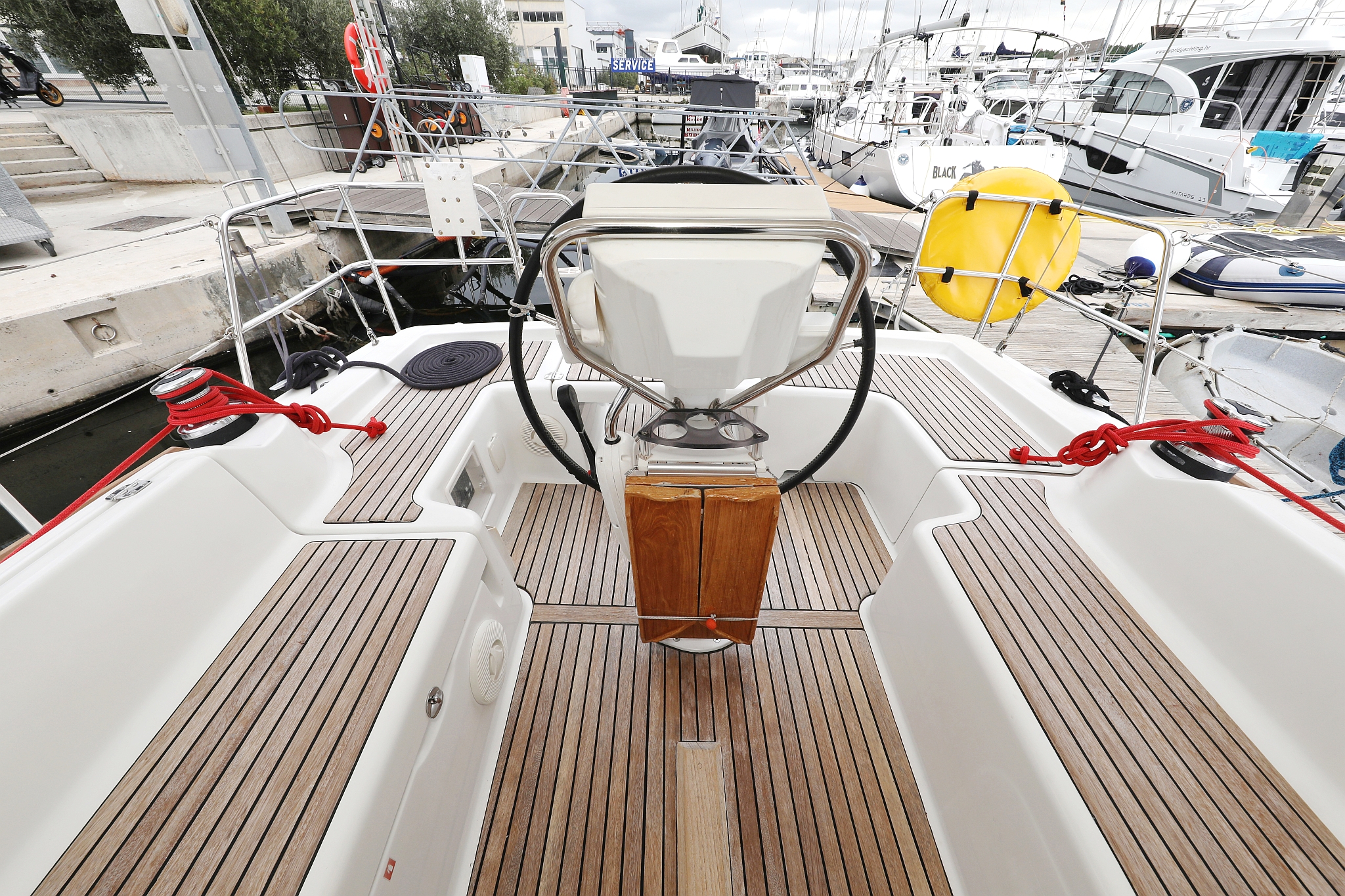 | Outside | 220 V-Landanschluss, Anker mit Kette, Badeplattform, Biminitop, Cockpitdusche, Cockpitlautsprecher, Cockpitpolster, Cockpittisch, elektr. Ankerwinsch, Fender, Gangway, Kugelfender, Teak im Cockpit, Winschen |