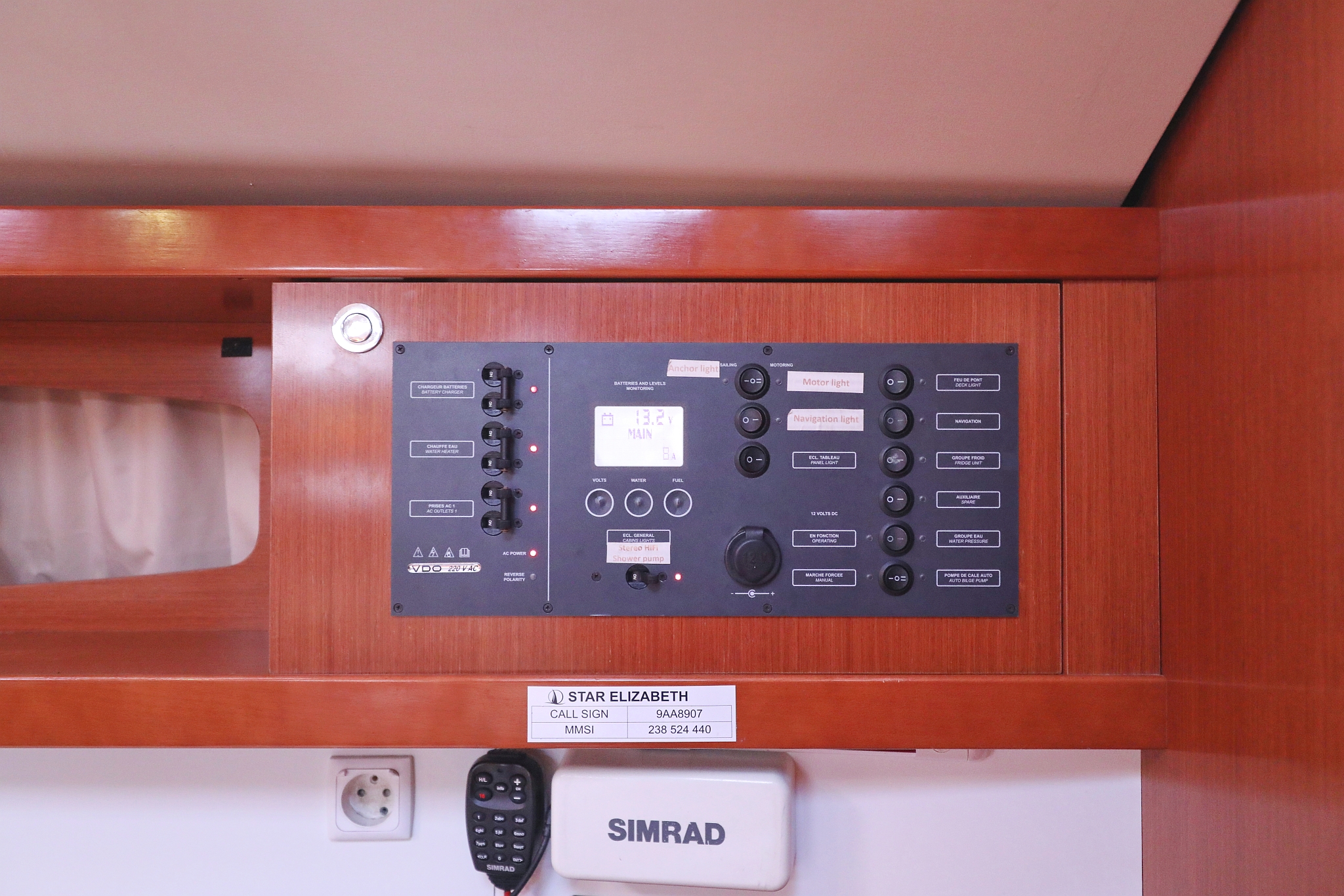 | Safety | Autopilot, Bordapotheke, Bugstrahlruder, elektr. Bilgepumpe, Feststoffschwimmwesten, Handbilgepumpe, Lifebelts, Notsignale, Radarreflektor, Rettungskragen, Taschenlampe, UKW-Funk, Zweitanker |
