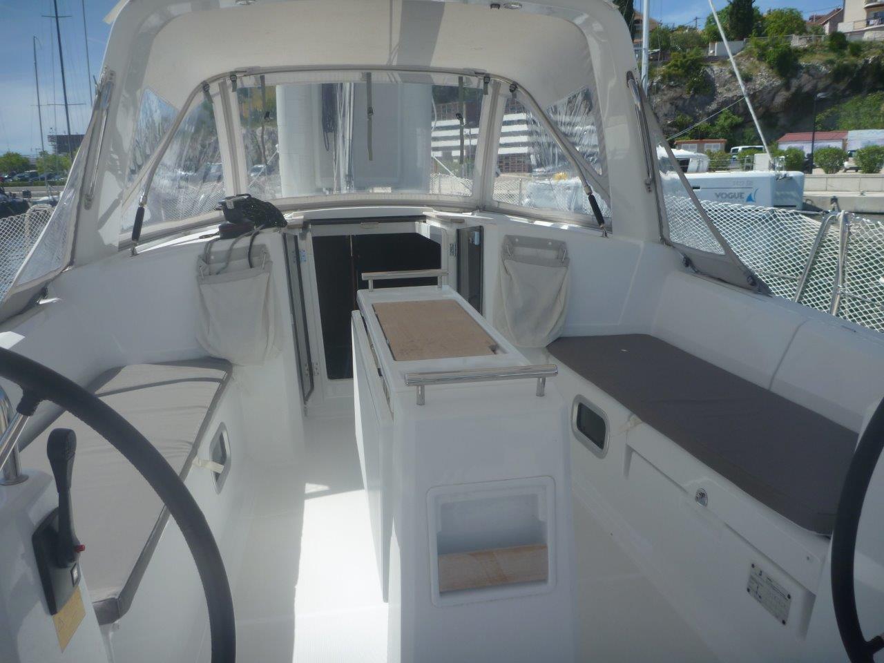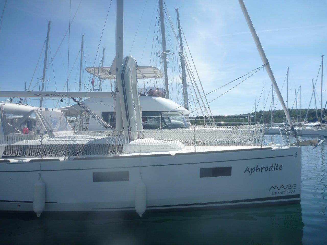 | Outside | 220 V-Landanschluss, Anker mit Kette, Badeplattform, Biminitop, Bootshaken, Cockpitdusche, Cockpitlautsprecher, Cockpittisch, Dieselkanister , elektr. Ankerwinsch, Fender, Festmacherleinen, Gangway, Kugelfender, Kunststoff-Eimer (Pütz), Solaranlage, Sprayhood, Teak im Cockpit, Wantenschneider, Wasserkanister , Wasserschlauch, Windex |