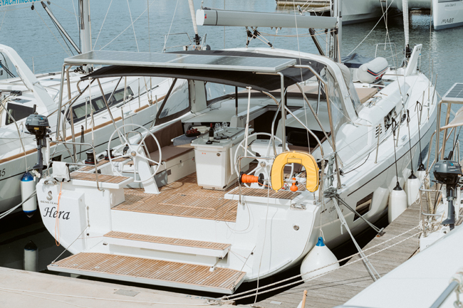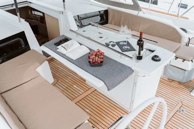 | Outside | Badeplattform, Biminitop, Cockpitdusche, Cockpitlautsprecher, Cockpitpolster, Fender, Solaranlage |