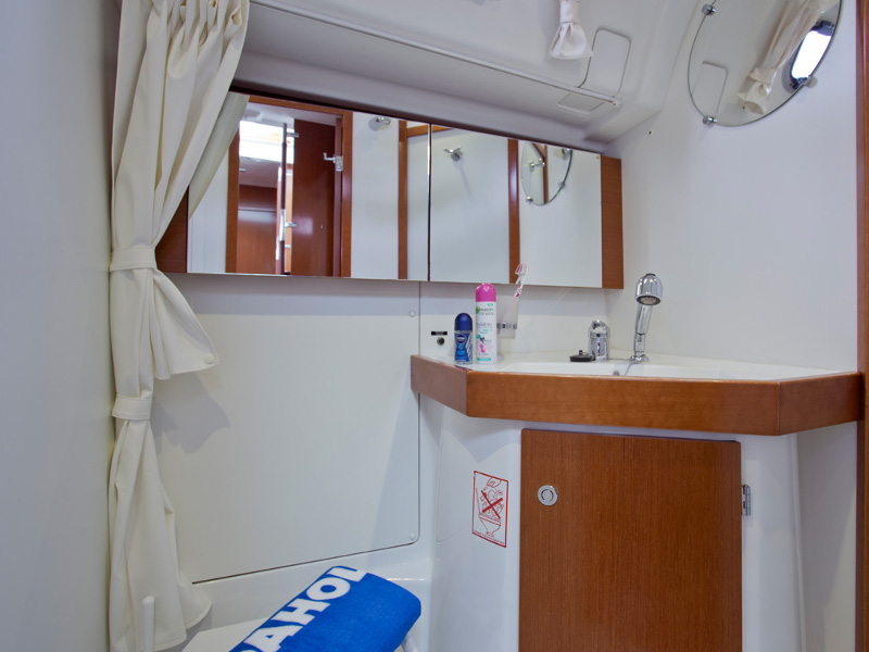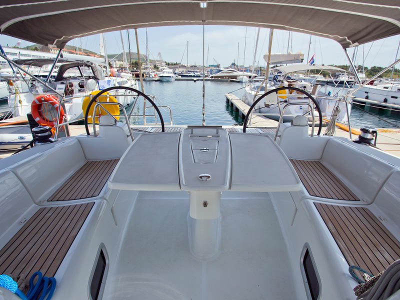 | Outside | 220 V-Landanschluss, Anker mit Kette, Biminitop, Cockpitdusche, Cockpitlautsprecher, Cockpittisch, elektr. Ankerwinsch, Heckdusche, Sprayhood |
