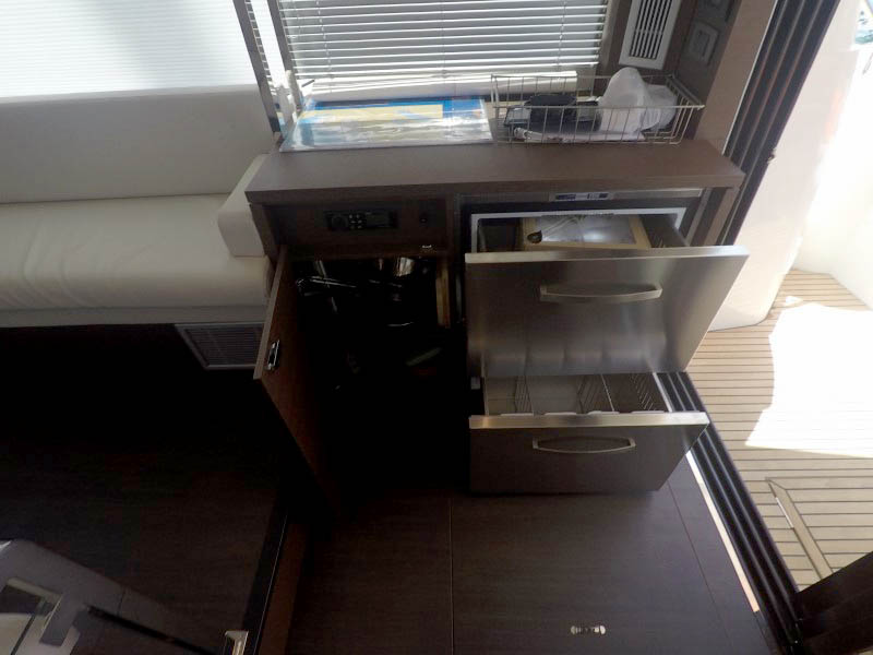 | Outside | 220 V-Landanschluss, Biminitop, Cockpitdusche, Cockpitpolster, Cockpittisch, elektr. Ankerwinsch, Flybridge |