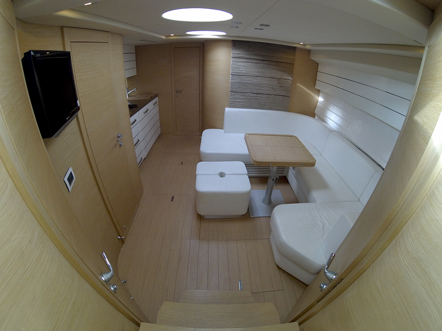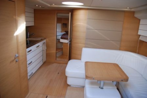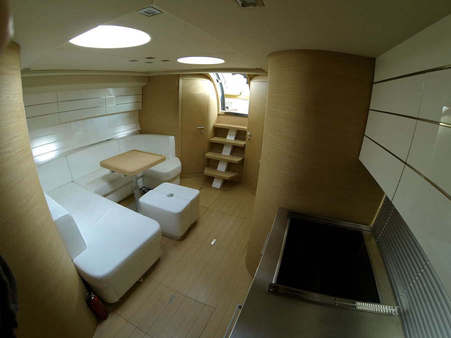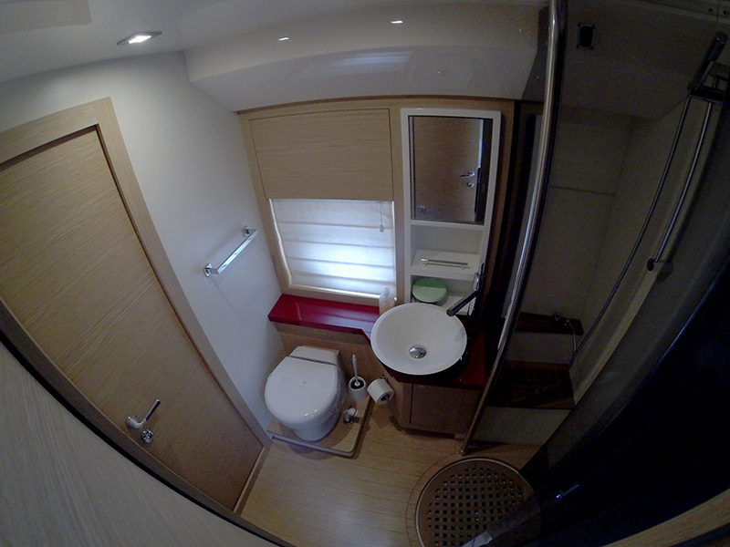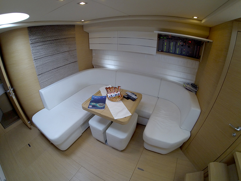 | Inside | Backofen, DVD-Player, Fäkalientank, Gasherd, Generator, Heizung, Klimaanlage (ohne Landstrombedarf), Kühlschrank, Luftpumpe für Beiboot, Radio mit AUX-In, TV, Warmwasser |