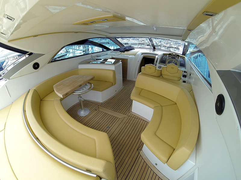 | Outside | 220 V-Landanschluss, Anker mit Kette, Anker mit Seil, Bootshaken, Cockpitdusche, Cockpitlautsprecher, Cockpitpolster, Cockpittisch, Deckbürste, elektr. Ankerwinsch, Fender, Festmacherleinen, Gangway, Hardtop, Kunststoff-Eimer (Pütz), Teakdeck, Wasserschlauch, Winschen |
