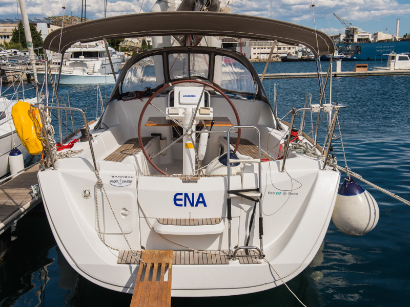 | Outside | Anker mit Kette, Badeleiter, Biminitop, Cockpitdusche, Cockpitlautsprecher, Cockpittisch, Deckbürste, elektr. Ankerwinsch, Fender, Festmacherleinen, Sprayhood, Teak im Cockpit, Wasserschlauch, Windex |