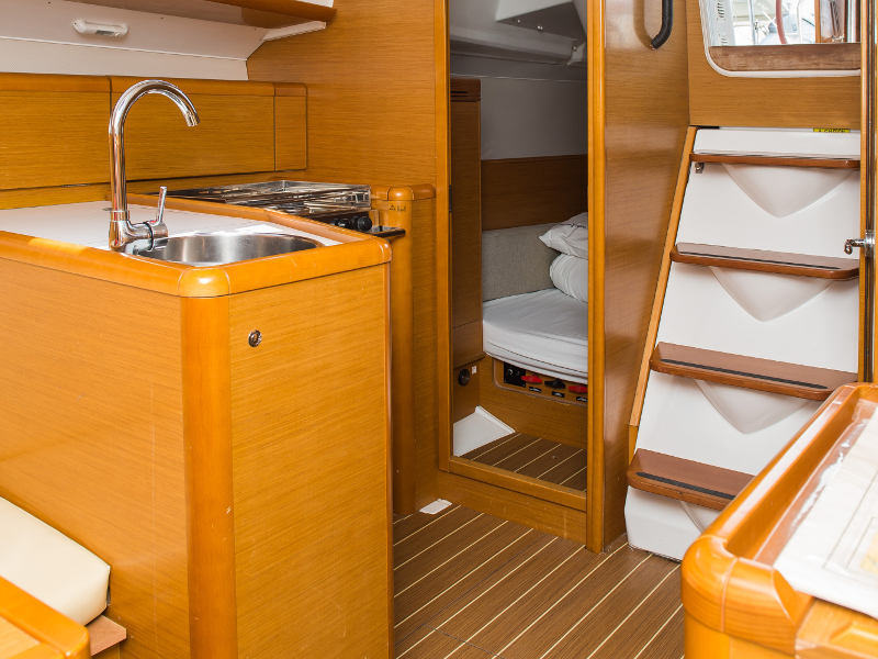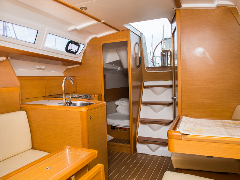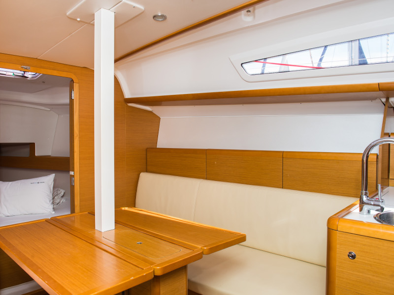 | Safety | Autopilot, Bootsmannstuhl, Bordapotheke, Bordwerkzeug, elektr. Bilgepumpe, Feststoffschwimmwesten, Feuerlöscher, Handbilgepumpe, Navigationslichter, Nebelhorn, Notpinne, Notsignale, Radarreflektor, Rettungsinsel, Sicherheitsgurt, UKW-Funk |