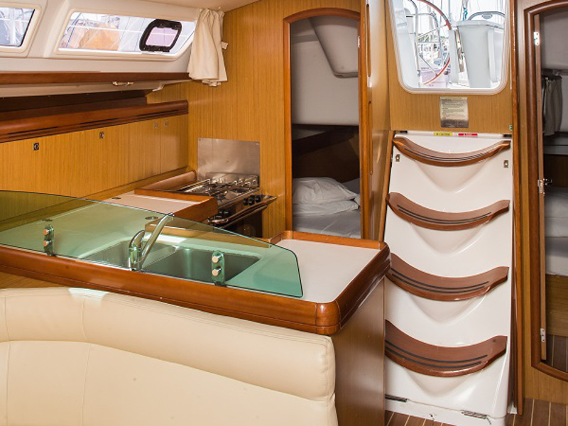 | Navigation | Fernglas, GPS mit Kartenplotter im Salon, Hafenhandbücher, Kompass, Seekarten, Sumlog, Tiefenmesser, Windmesser |