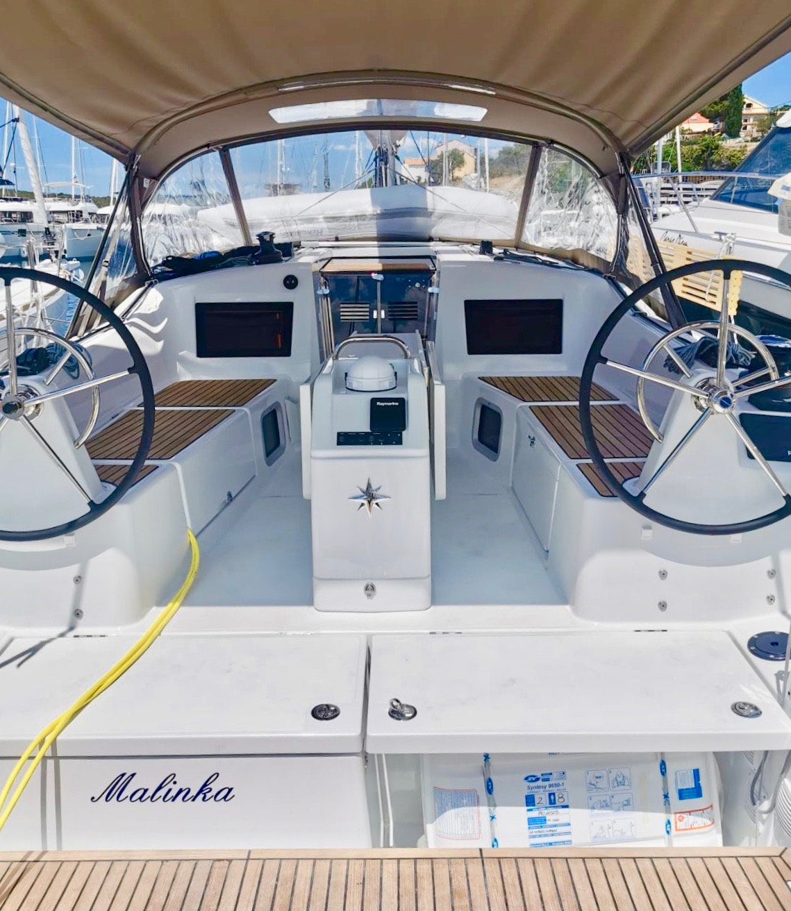 | Outside | Außendusche, Biminitop, elektr. Ankerwinsch, Sprayhood, Unterwasserbeleuchtung, Windex |