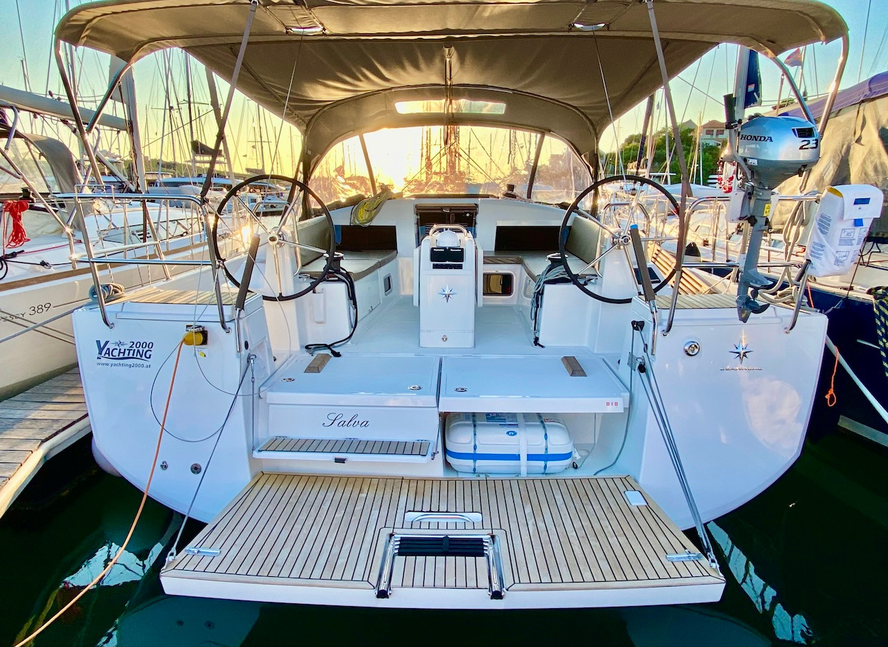 | Outside | Außendusche, Biminitop, Cockpitpolster, elektr. Ankerwinsch, Sprayhood, Windex |