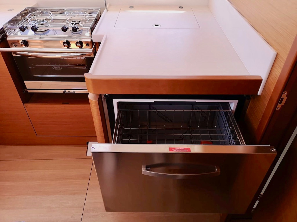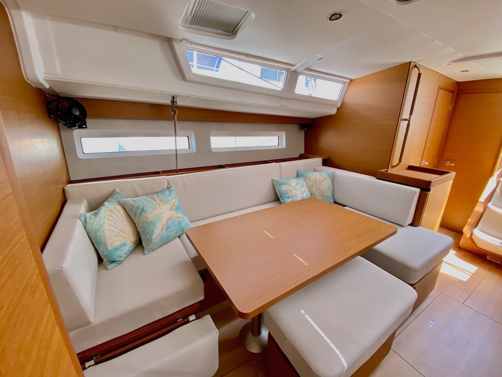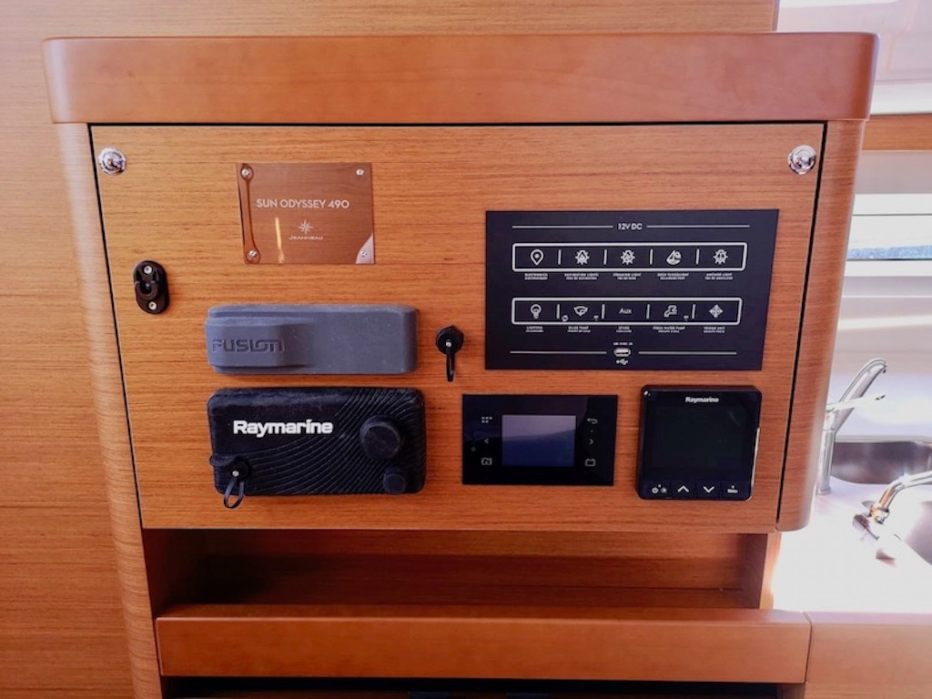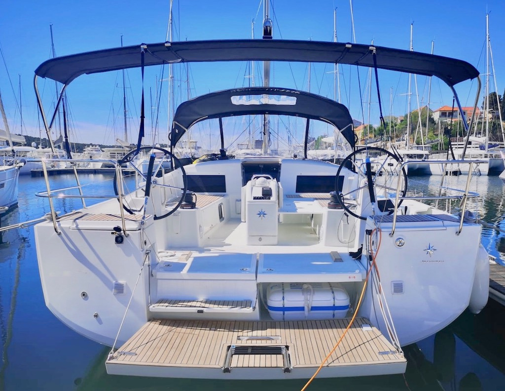 | Outside | Außendusche, Biminitop, Cockpitdusche warm/kalt, Cockpitlautsprecher, Cockpitpolster, elektr. Ankerwinsch, Sprayhood, Windex |