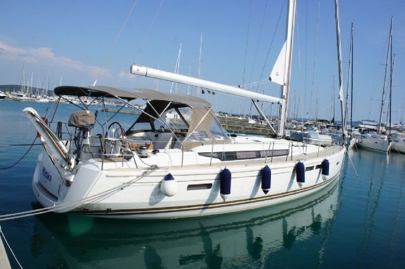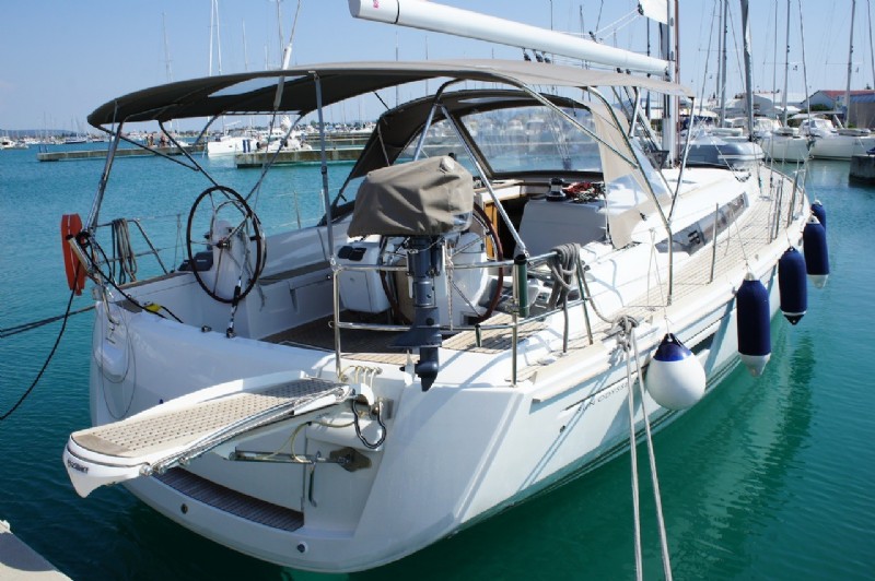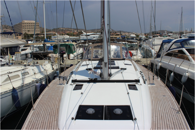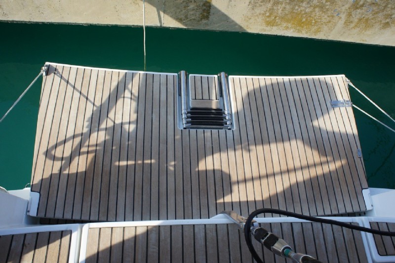 | Outside | Anker mit Kette, Biminitop, Cockpitdusche, Cockpitlautsprecher, Cockpitpolster, Cockpittisch, elektr. Ankerwinsch, Solaranlage, Sprayhood, Teak im Cockpit, Teakdeck, Windex |