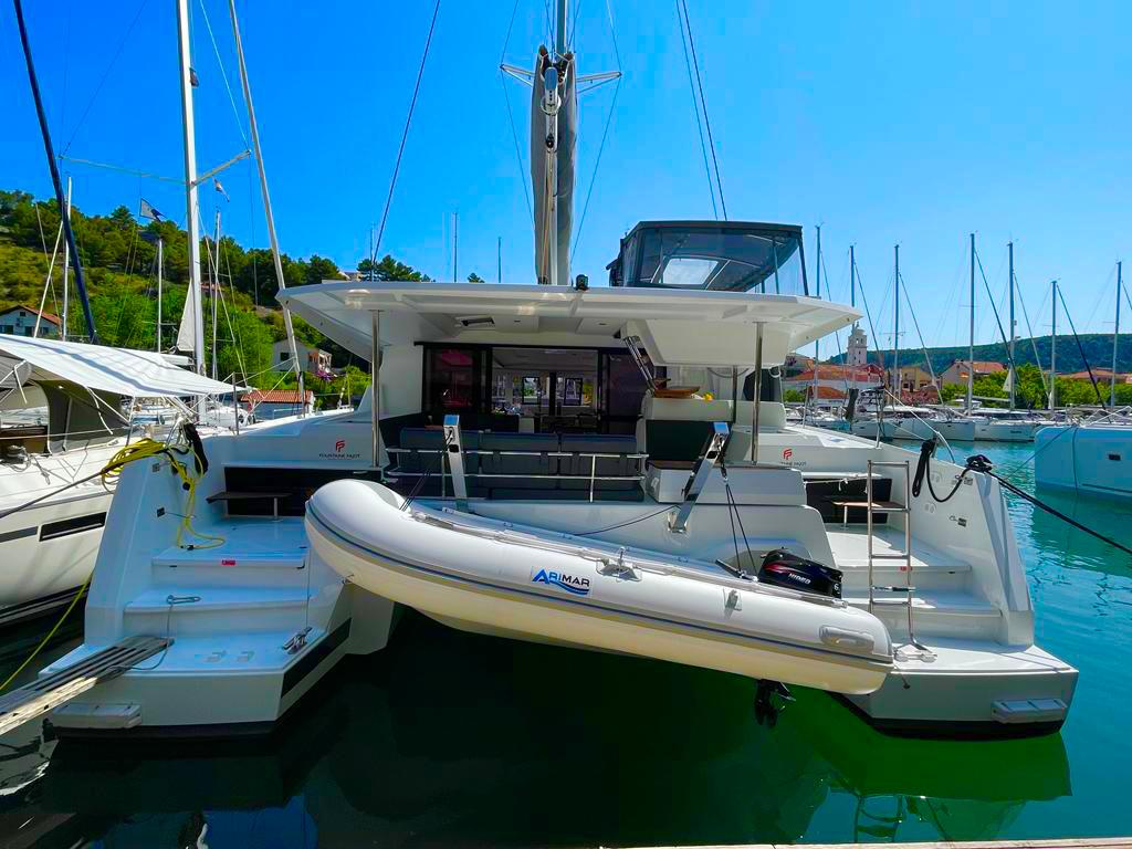 | Outside | Biminitop, Cockpitlautsprecher, elektr. Ankerwinsch, Grill, Solaranlage, Sprayhood |