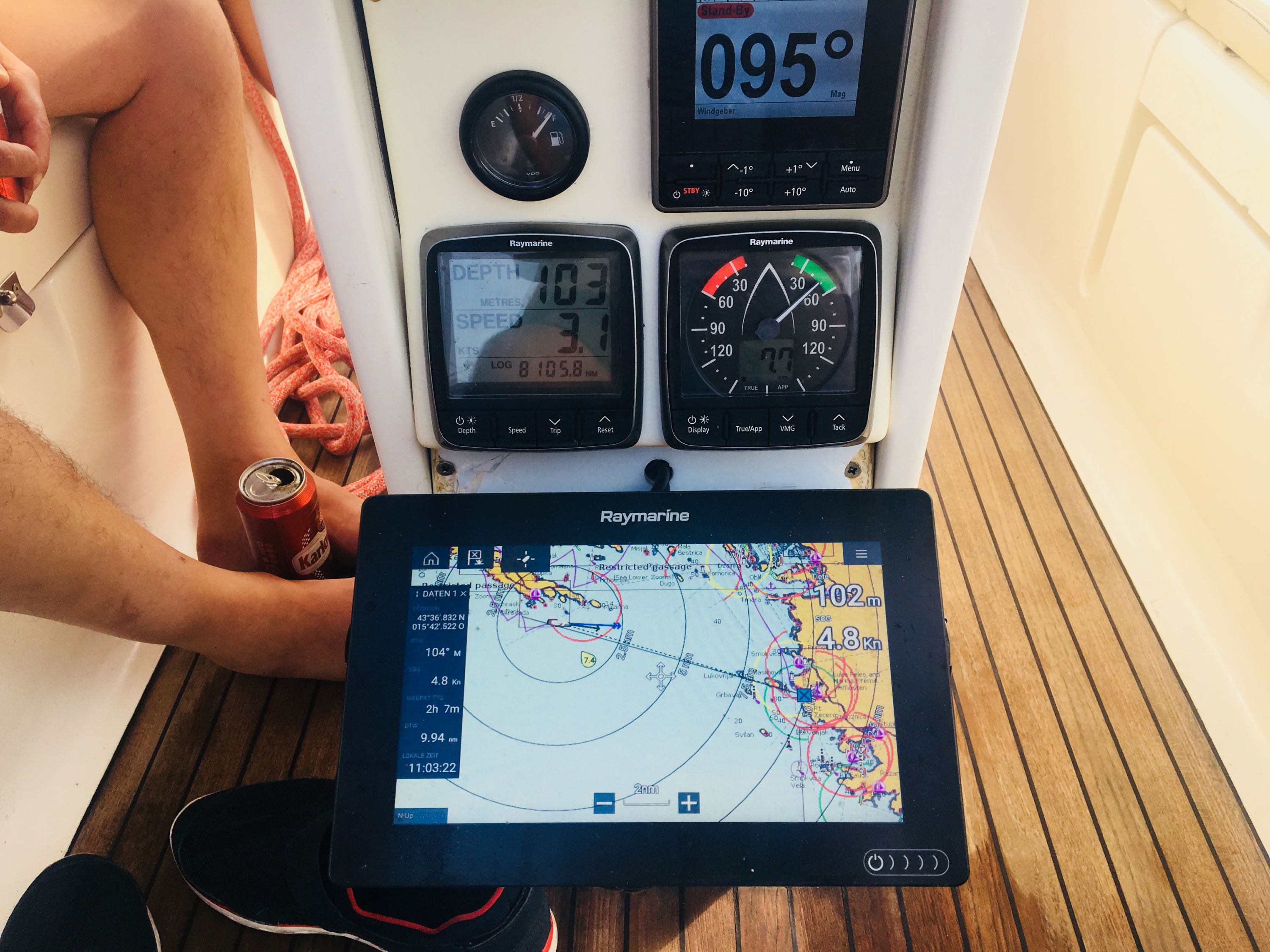 Update 2024: There’s been a lot of investments into the boat over the years, in the last year there was a general engine service, new black tank, new vang, some windows replaced, other windows were sealed with Sikaflex, two new batteries of 140 Ah were installed // Refit 2018 (alles neu): Segel, Bimini-Top, Sprayhood, Matratzen, Polster, Kartenplotter Cockpit, Ukw-Funk, Radio, TV, Solar-Panele, große Motorrevision