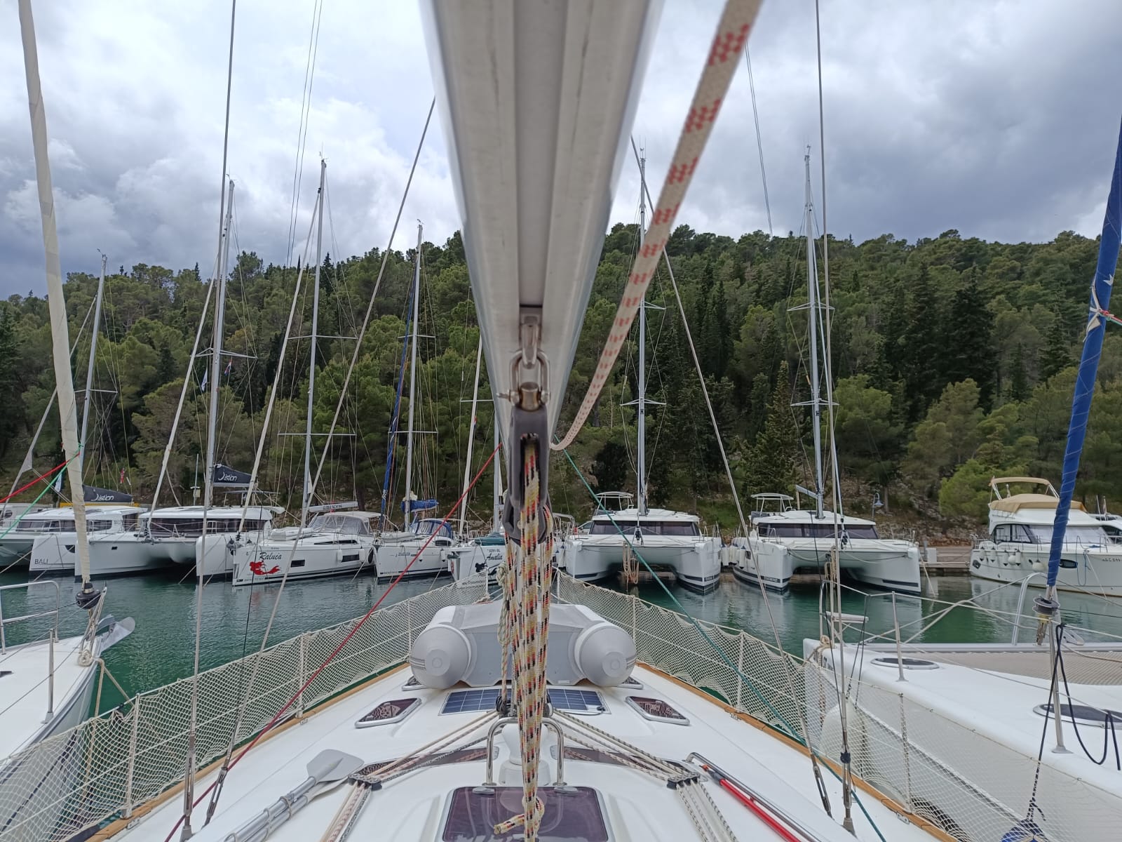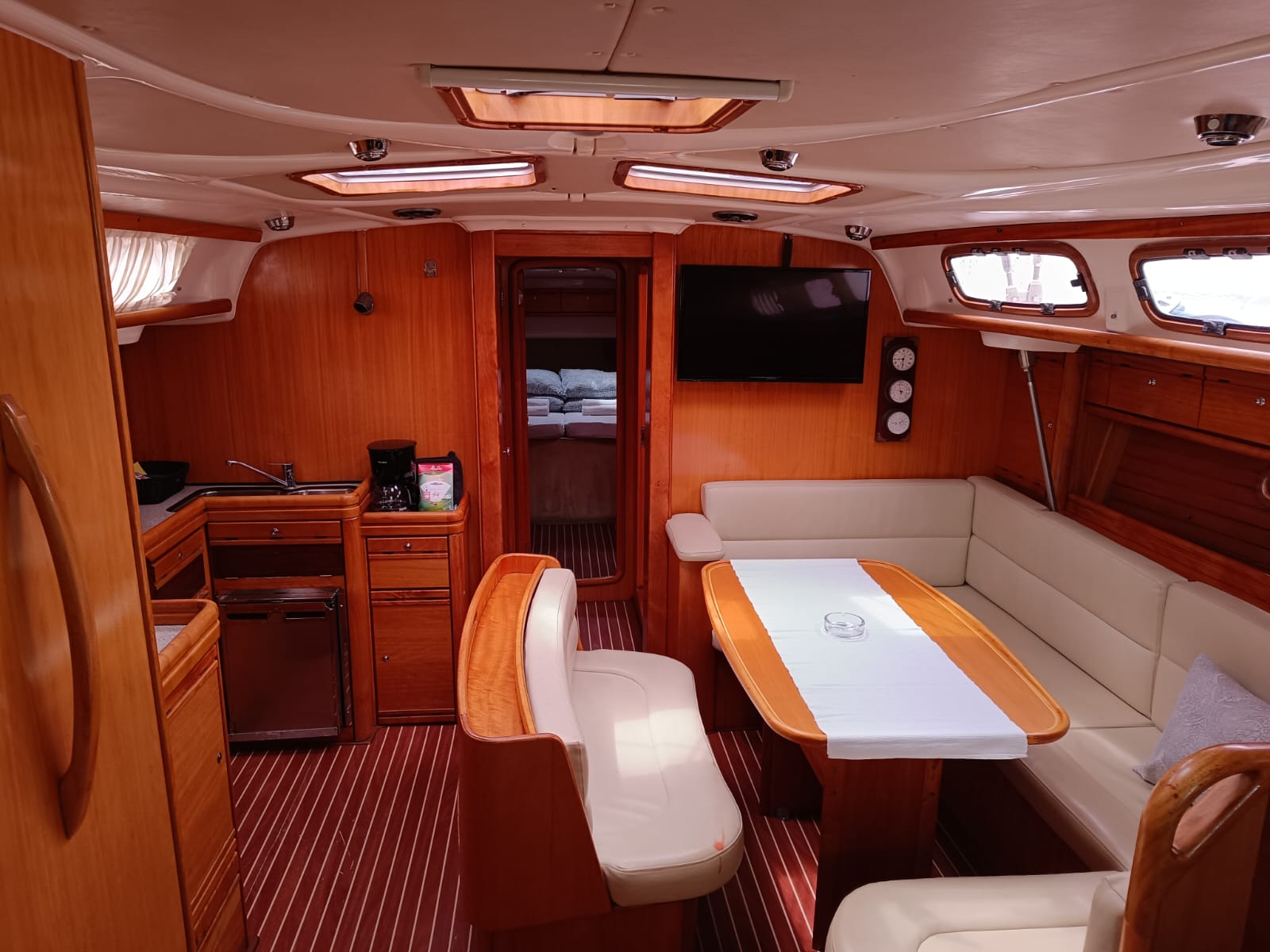 Die Segeleigenschaften der Yacht waren hervorragend. Die Segel, Schoten, Leinen, tiptop. Polster, Matratzen ebenfalls hervorragend. Wasseranlage hat nicht richtig funktioniert, Schränke haben z.T. nicht mehr richtig geschlossen. Aber der Vercharterer hat glaubhaft versichert, dass er die Probleme in Ordnung bringt.