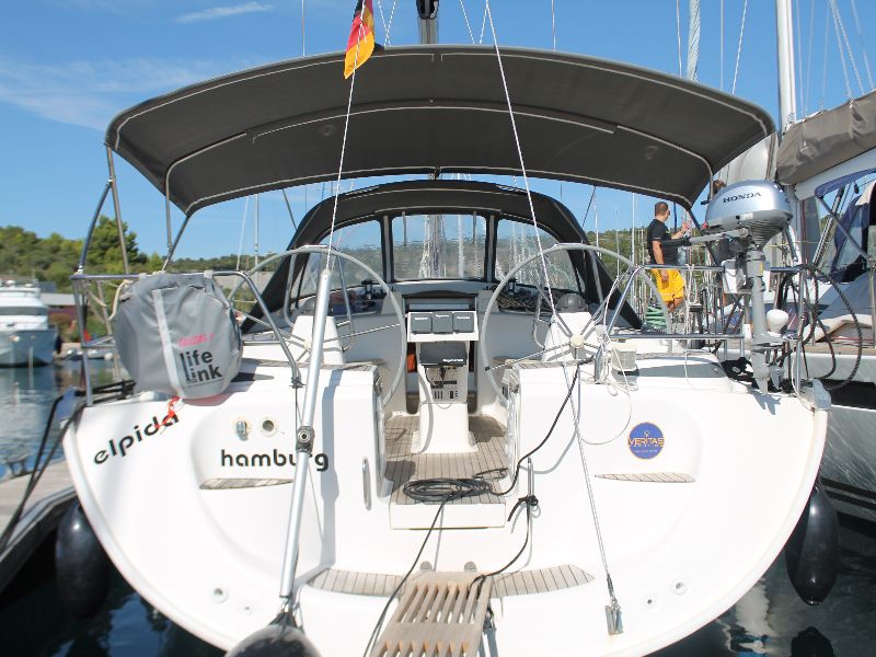 | Outside | Anker mit Kette, Badeleiter, Biminitop, Cockpitdusche, Cockpitlautsprecher, Cockpitpolster, Cockpittisch, elektr. Ankerwinsch, Fender, Gangway, Heckdusche, Sprayhood, Wasserschlauch, Windex |