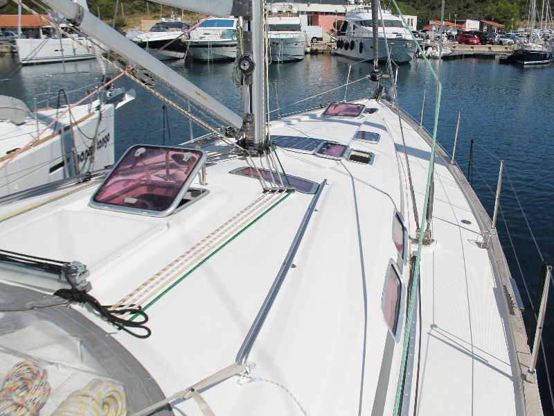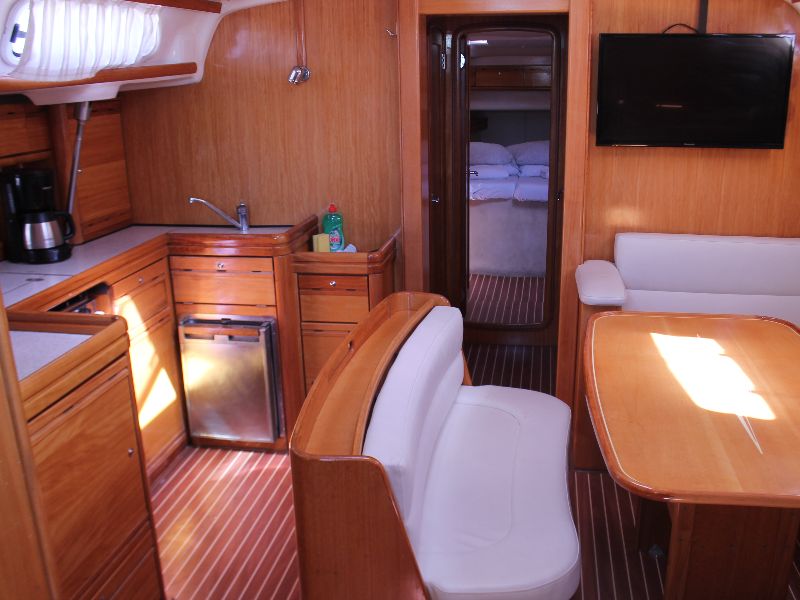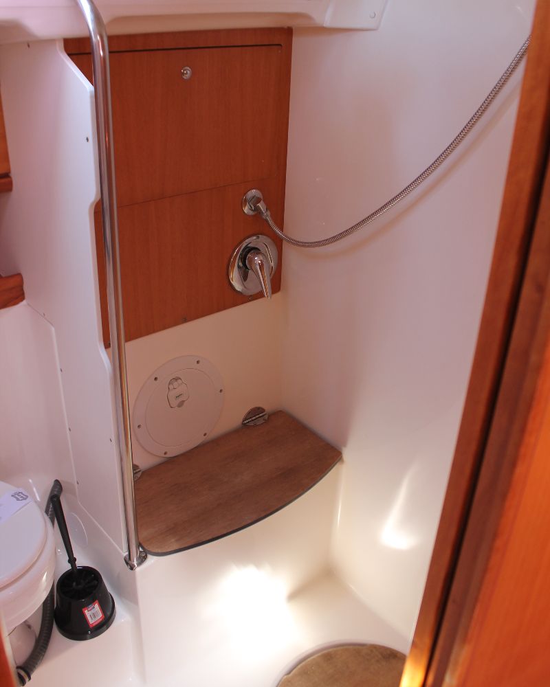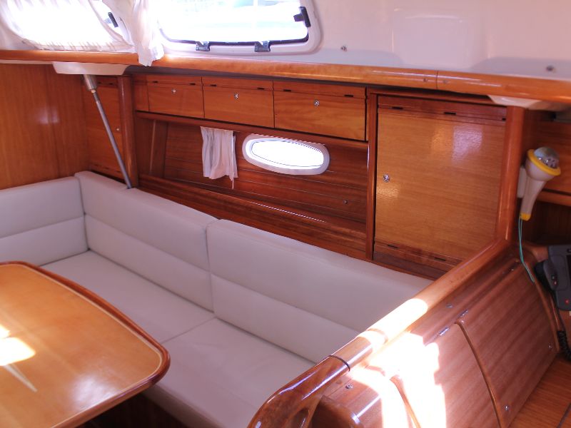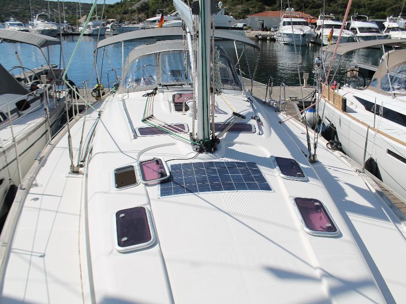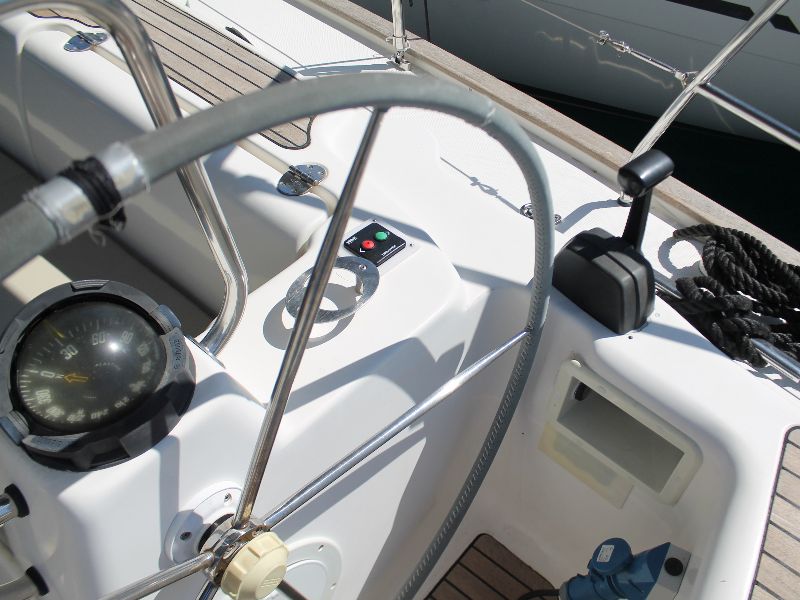 | Outside | Badeleiter, Biminitop, Cockpitdusche, Cockpitlautsprecher, Cockpitpolster, Cockpittisch, elektr. Ankerwinsch, Fender, Festmacherleinen, Gangway, Solaranlage, Sprayhood, Teak im Cockpit, Treibanker, Wasserschlauch, Windex |