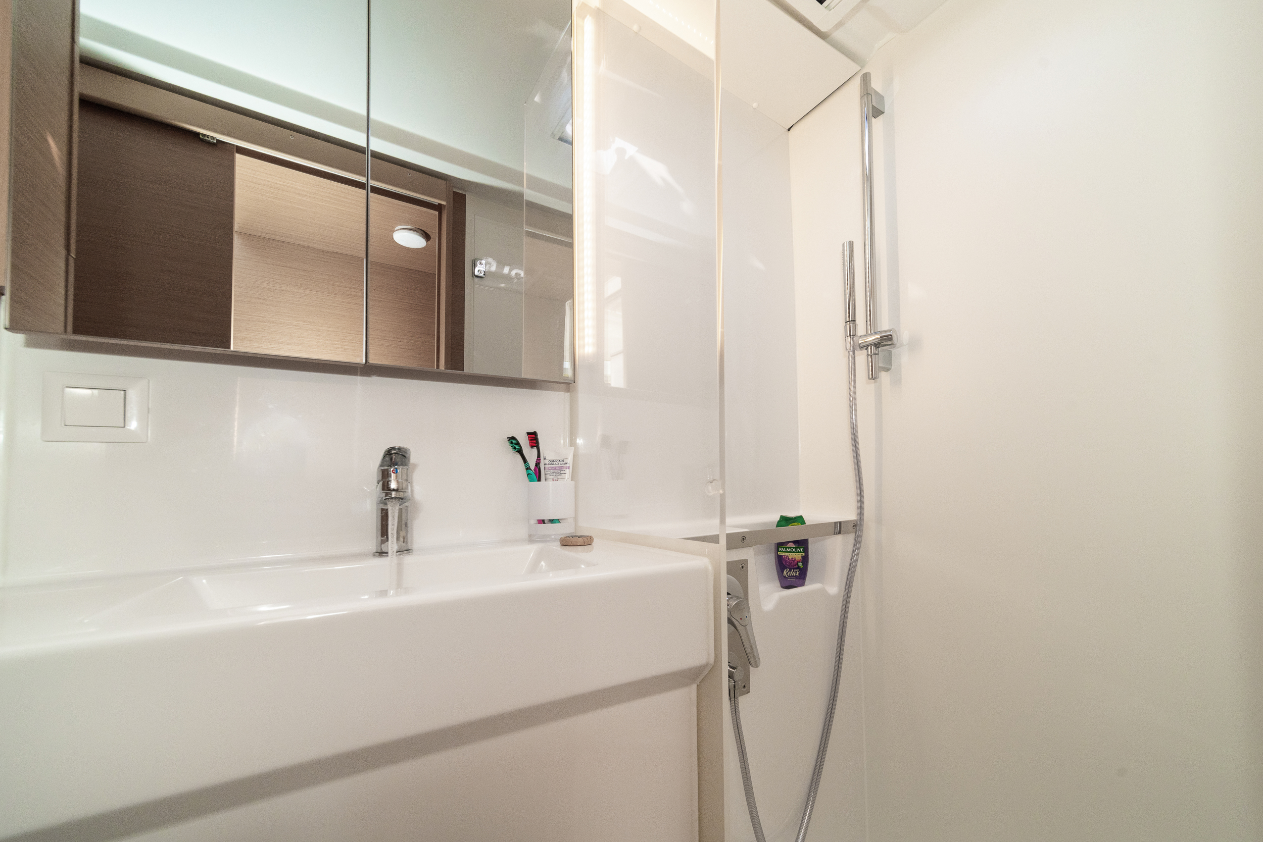 | Inside | Inverter 12V/220V, Kühlschrank, Ladegerät, Landstromkabel, Luftpumpe für Beiboot, Pantryausstattung, Radio, Salontisch absenkbar, USB Steckdose, Ventilator, WC (elektr.) |