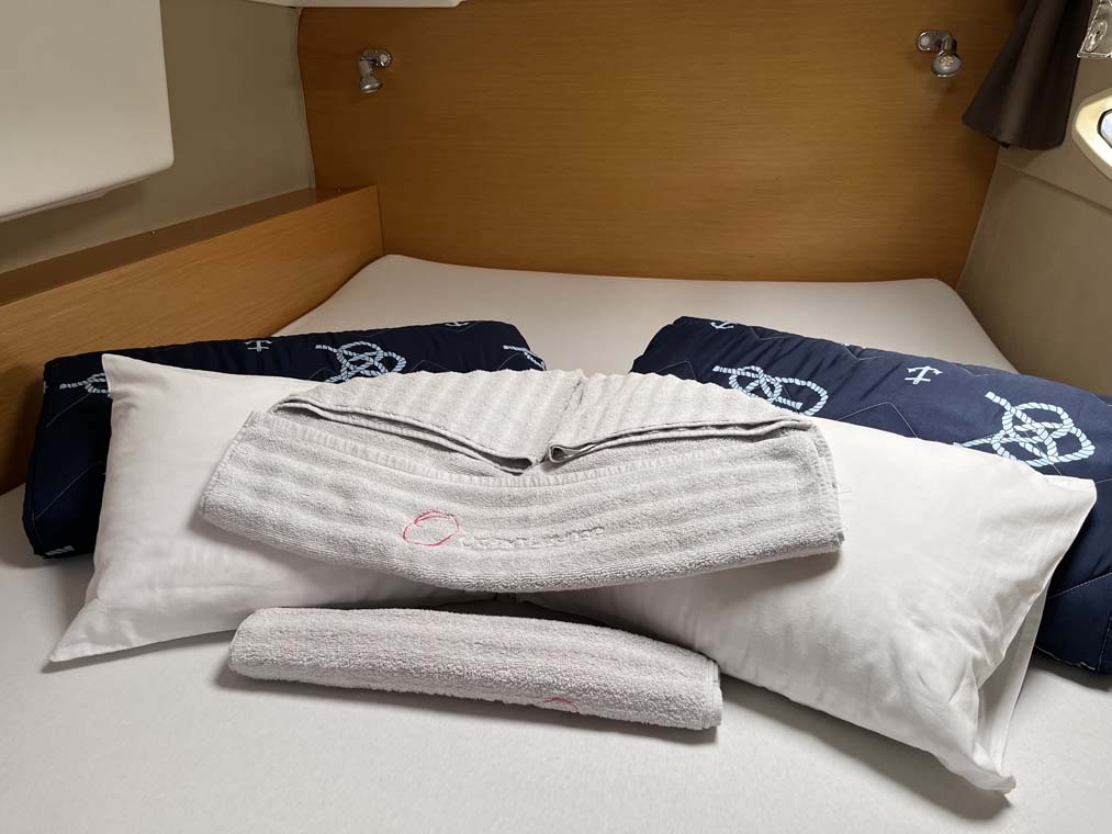 | Safety | AIS Empfänger, Automatikwesten, Autopilot, Blitzboje, Bootsmannstuhl, Bordapotheke, Bordwerkzeug, Feuerlöscher, Handbilgepumpe, Lifebelts, Motor-Ersatzteile, Nebelhorn, Notsignale, Radarreflektor, Reparaturset für Beiboot, Rettungsinsel, Rückfahrkamera, Suchscheinwerfer, Taschenlampe, UKW-Funk m. DSC, Zweitanker |
