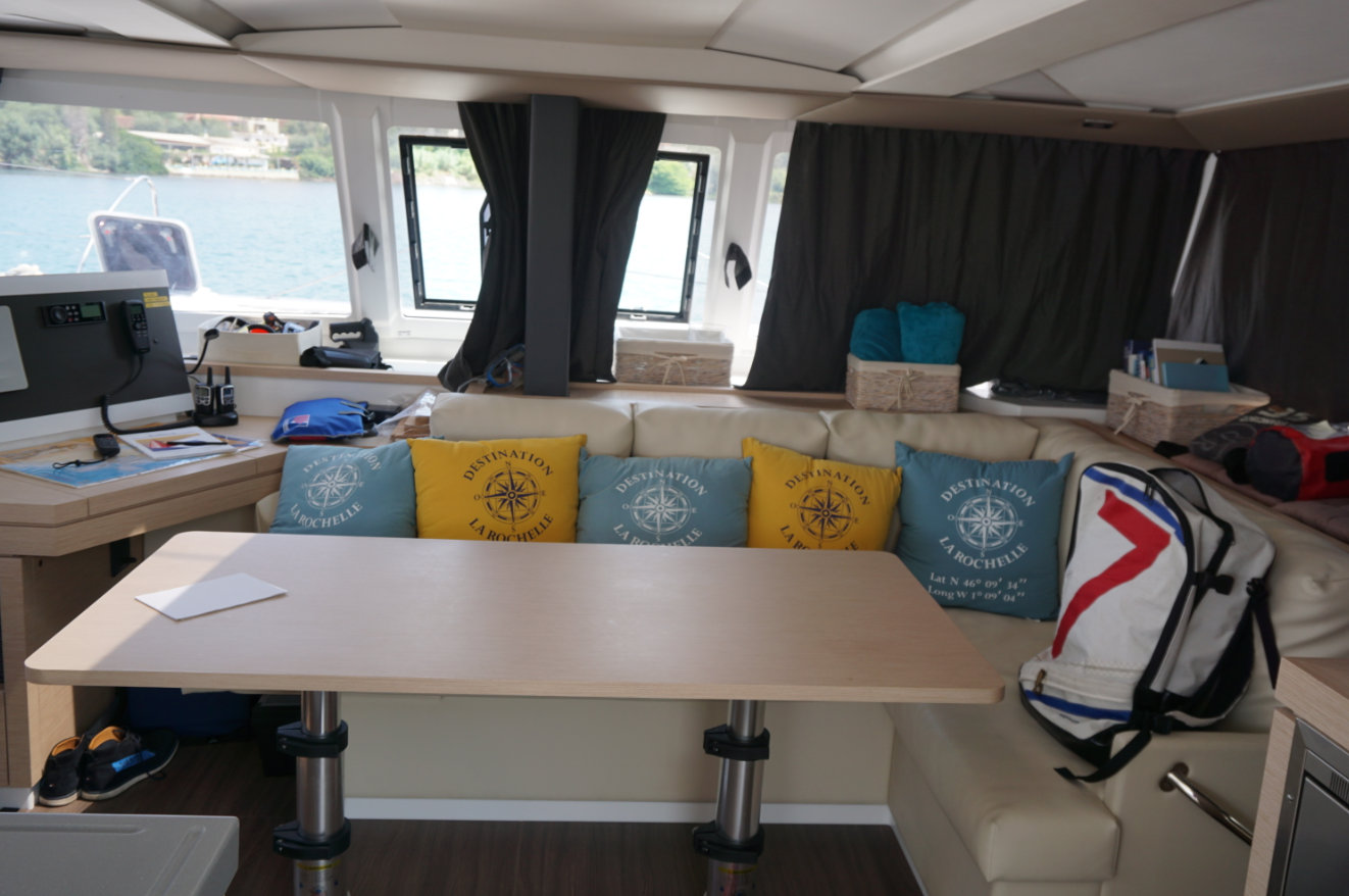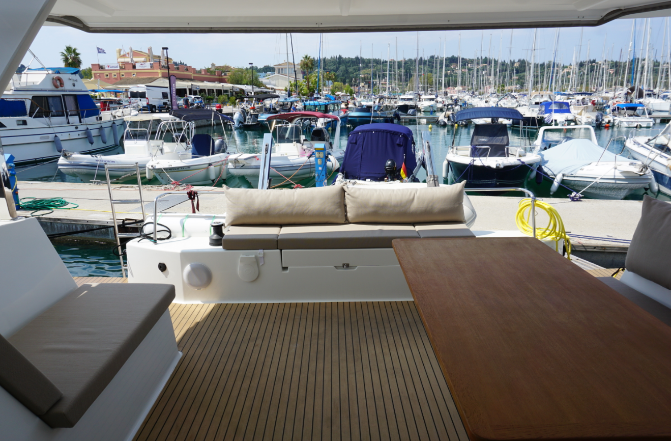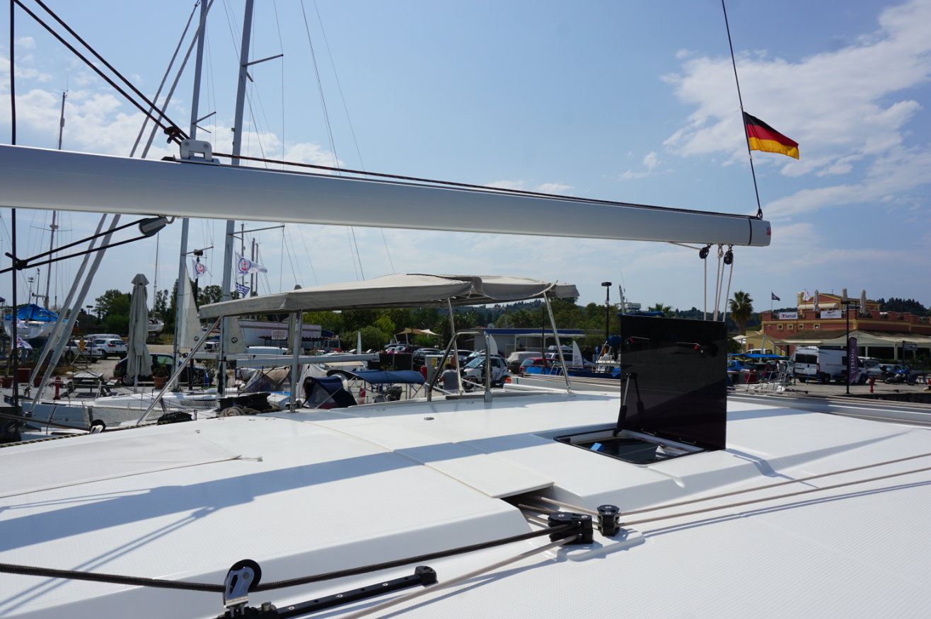 Anker mit Kette, Badeleiter, Biminitop, Cockpitdusche, Cockpitlautsprecher, Cockpittisch, elektr. Ankerwinsch, Fender, Gangway, Solaranlage, Teak im Cockpit, Treibanker, Wasserschlauch, Windex |