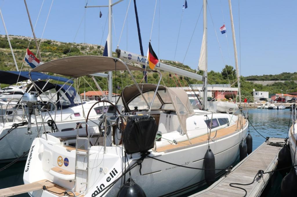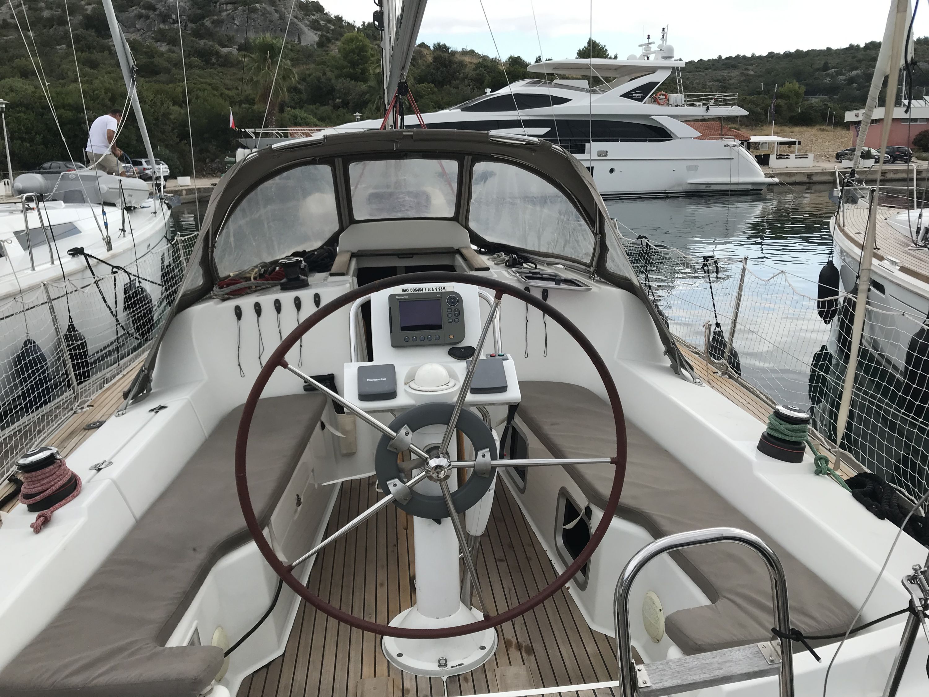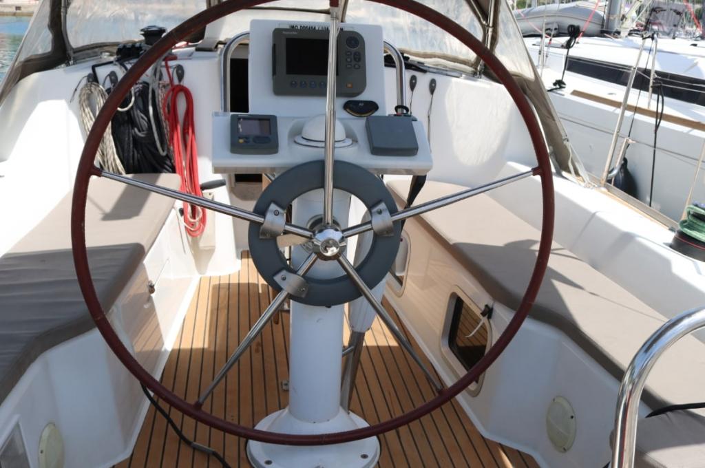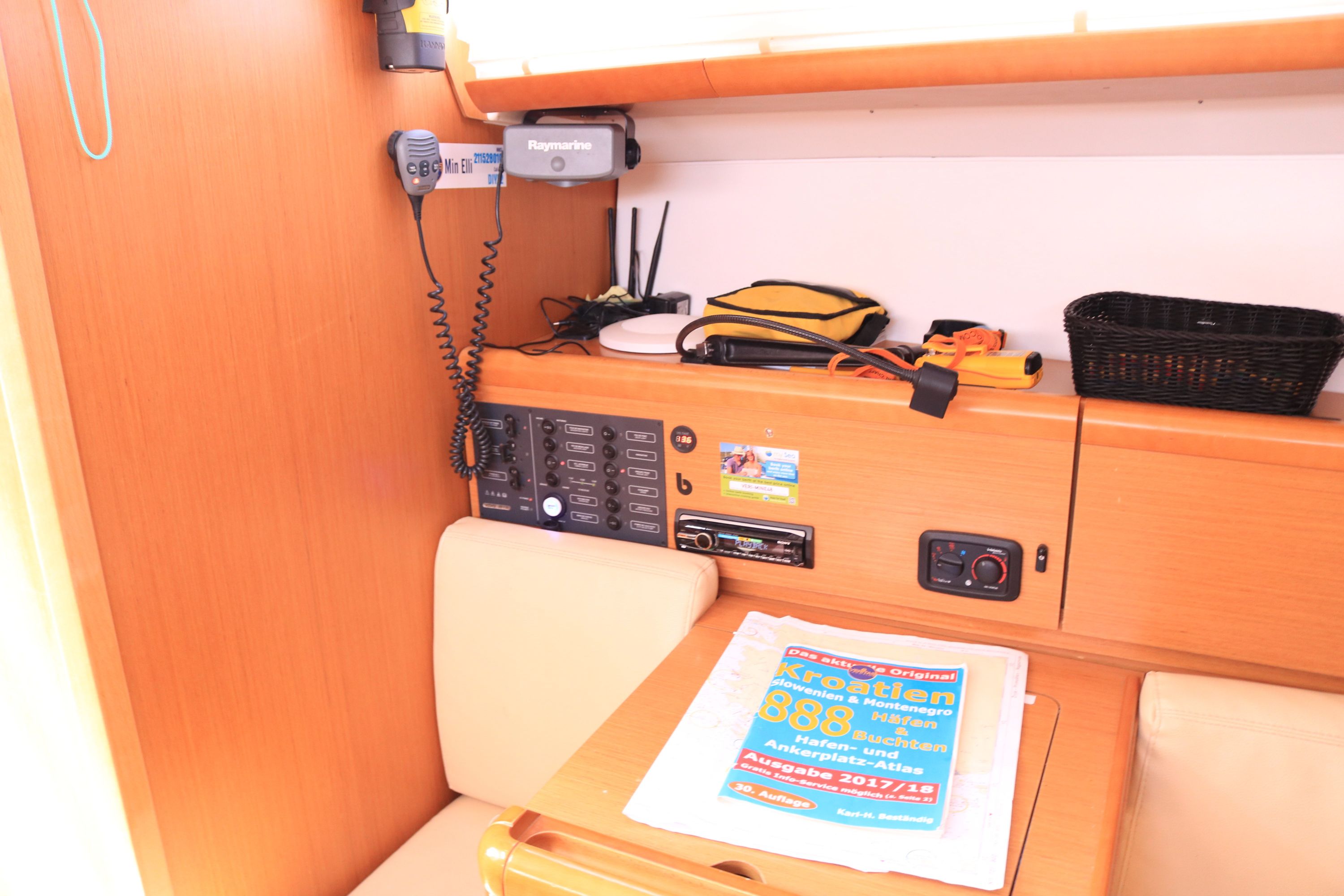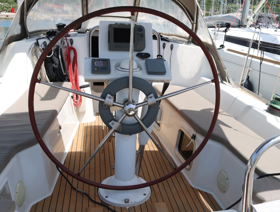 Autopilot defekt, Leine von Hauptsegel war sehr abgenutzt und ist gerissen. Biminitop ist etwas klein. Polsterungen in der Heckkabine sind unansehnlich. (Kopf- und Seitenteil). Personal ist sehr freundlich und hilfsbereit.