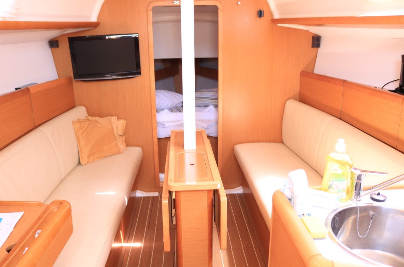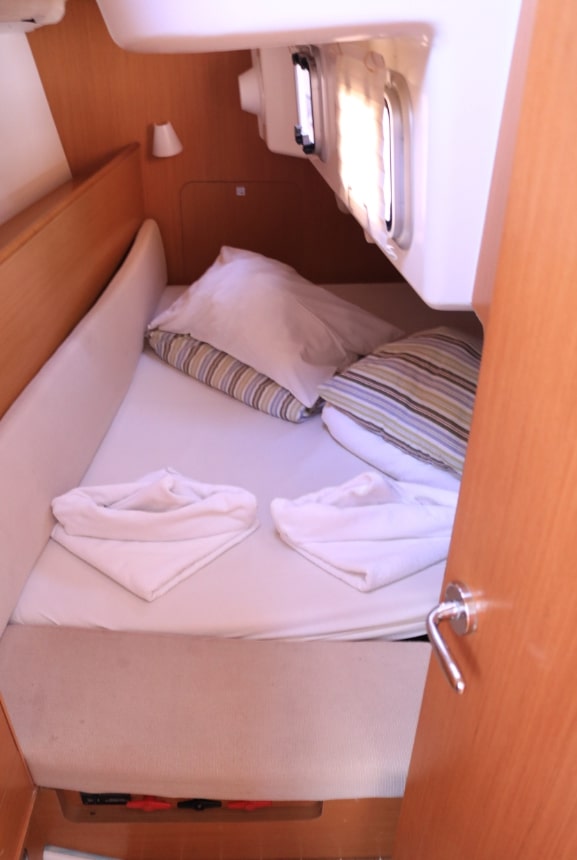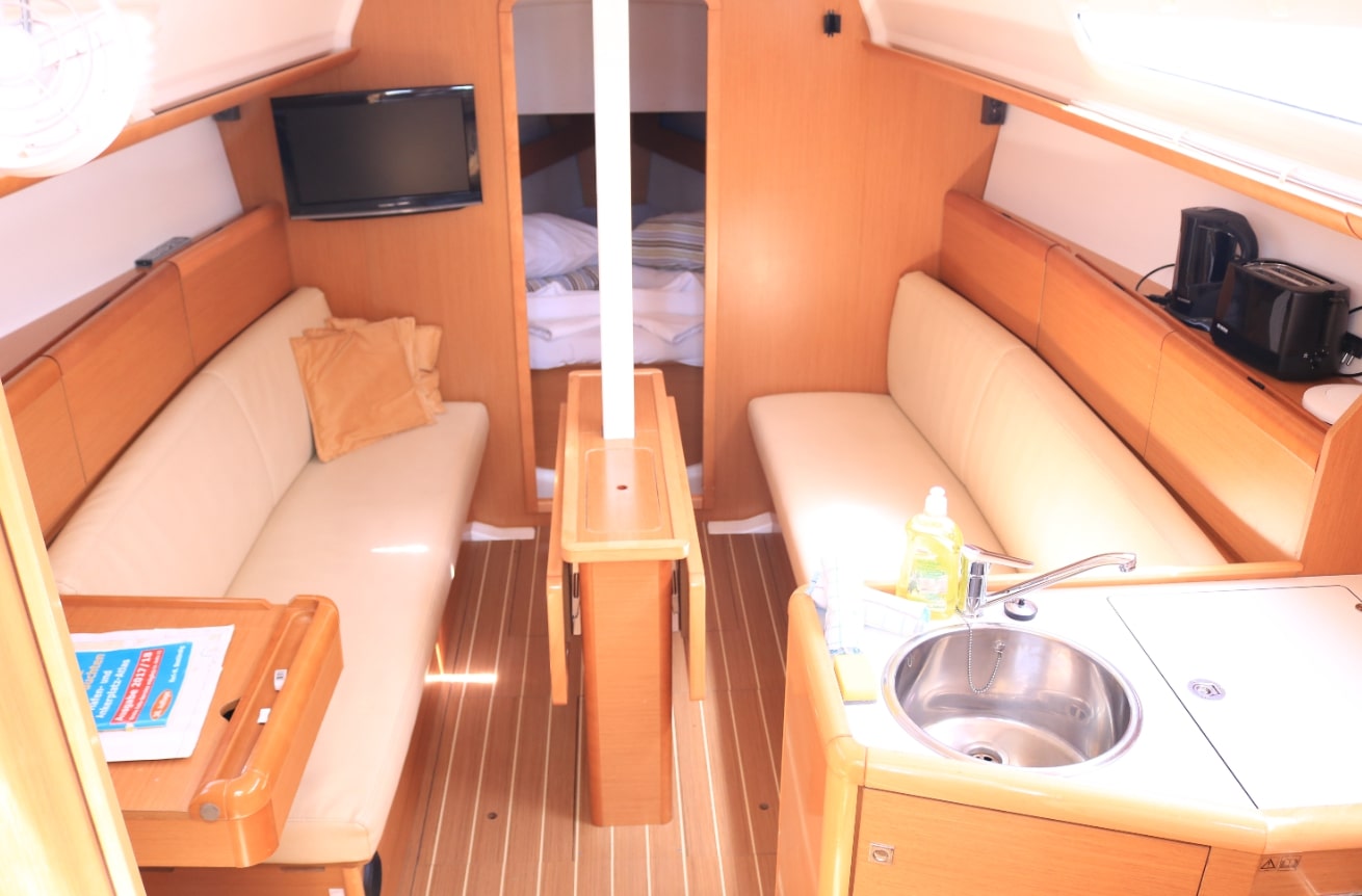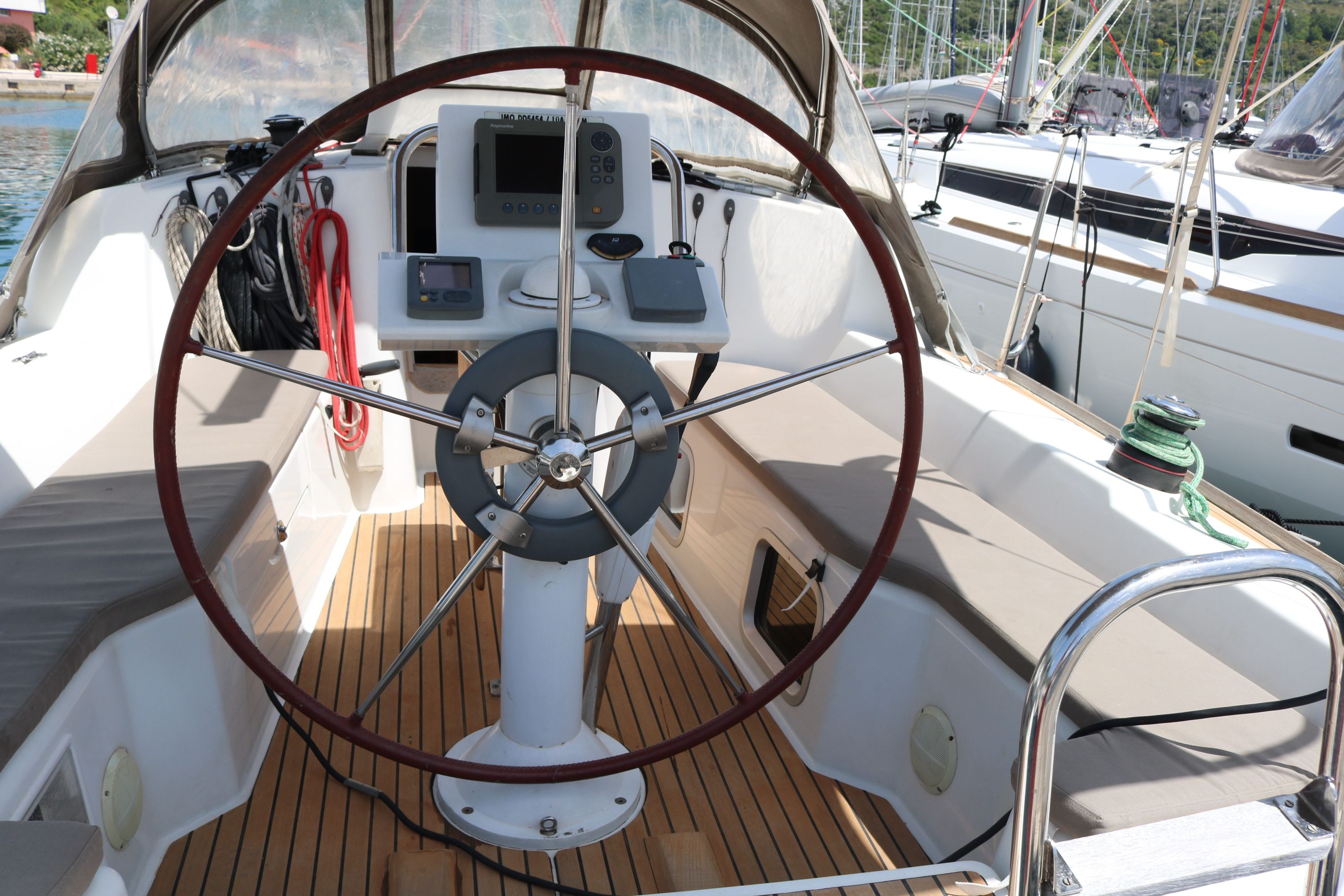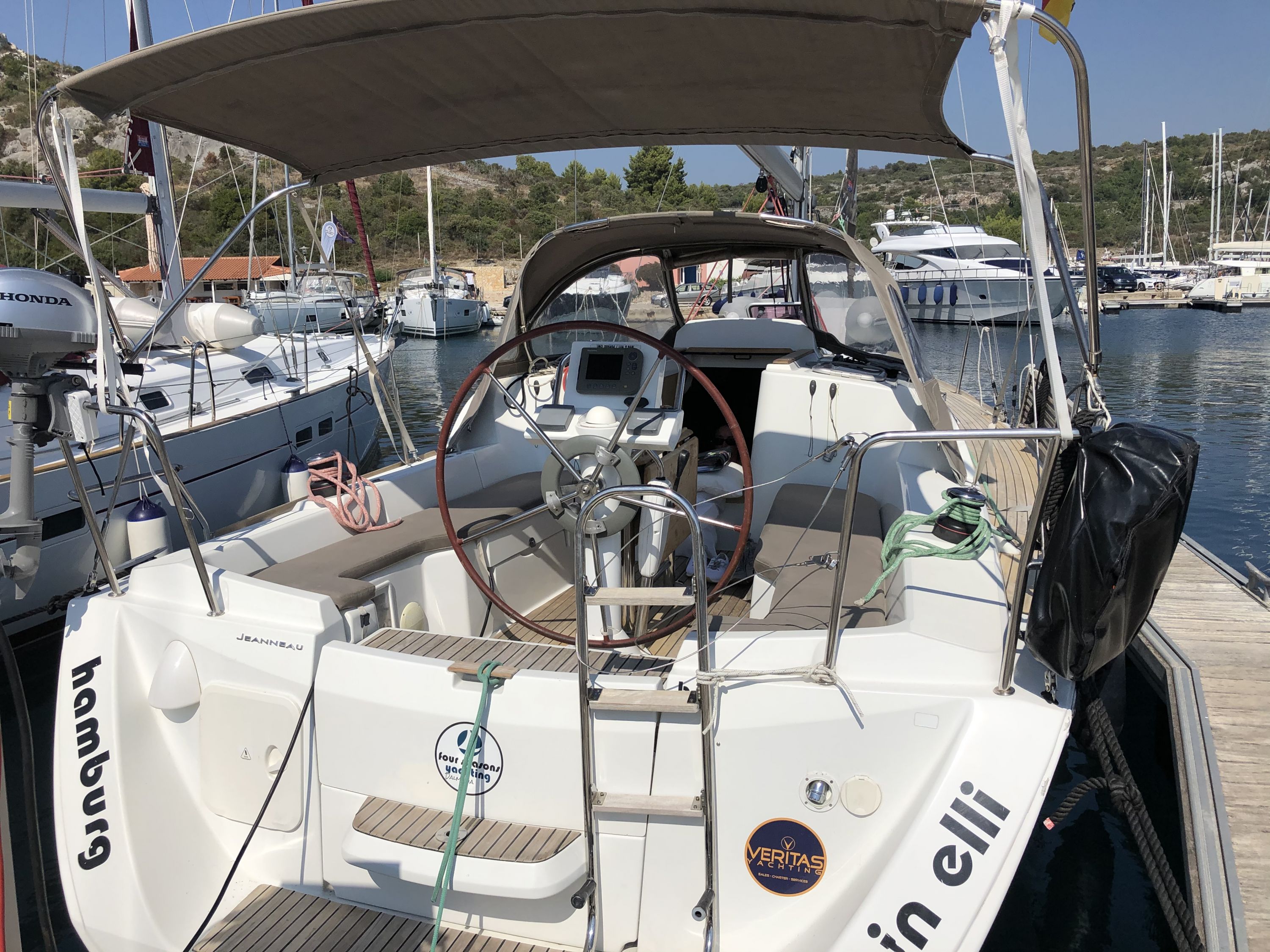 Autopilot defekt, Leine von Hauptsegel war sehr abgenutzt und ist gerissen. Biminitop ist etwas klein. Polsterungen in der Heckkabine sind unansehnlich. (Kopf- und Seitenteil). Personal ist sehr freundlich und hilfsbereit.
