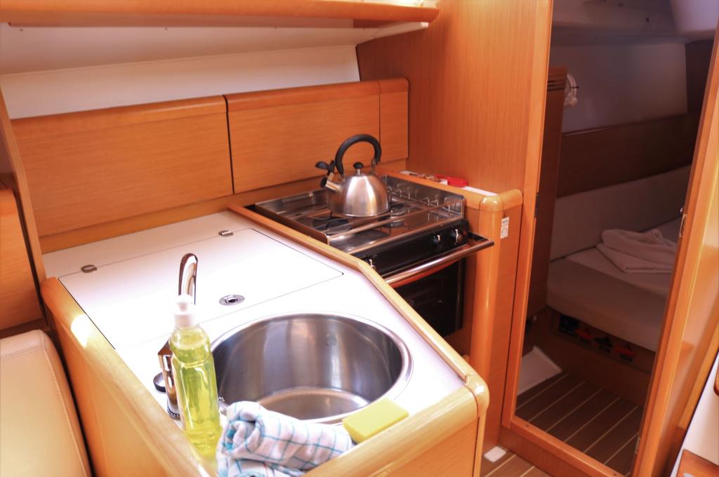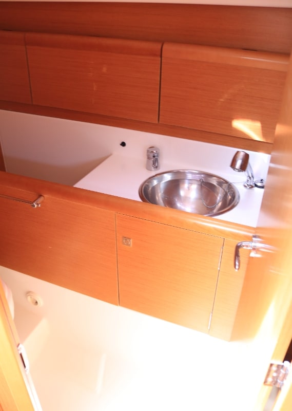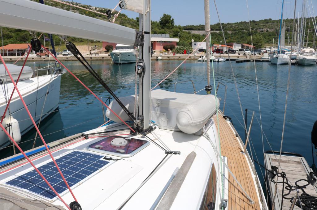 | Outside | Anker mit Kette, Badeleiter, Biminitop, Cockpitdusche, Cockpitlautsprecher, Cockpittisch, elektr. Ankerwinsch, Fender, Festmacherleinen, Gangway, Heckdusche, Solaranlage, Sprayhood, Teak im Cockpit, Teakdeck, Windex |