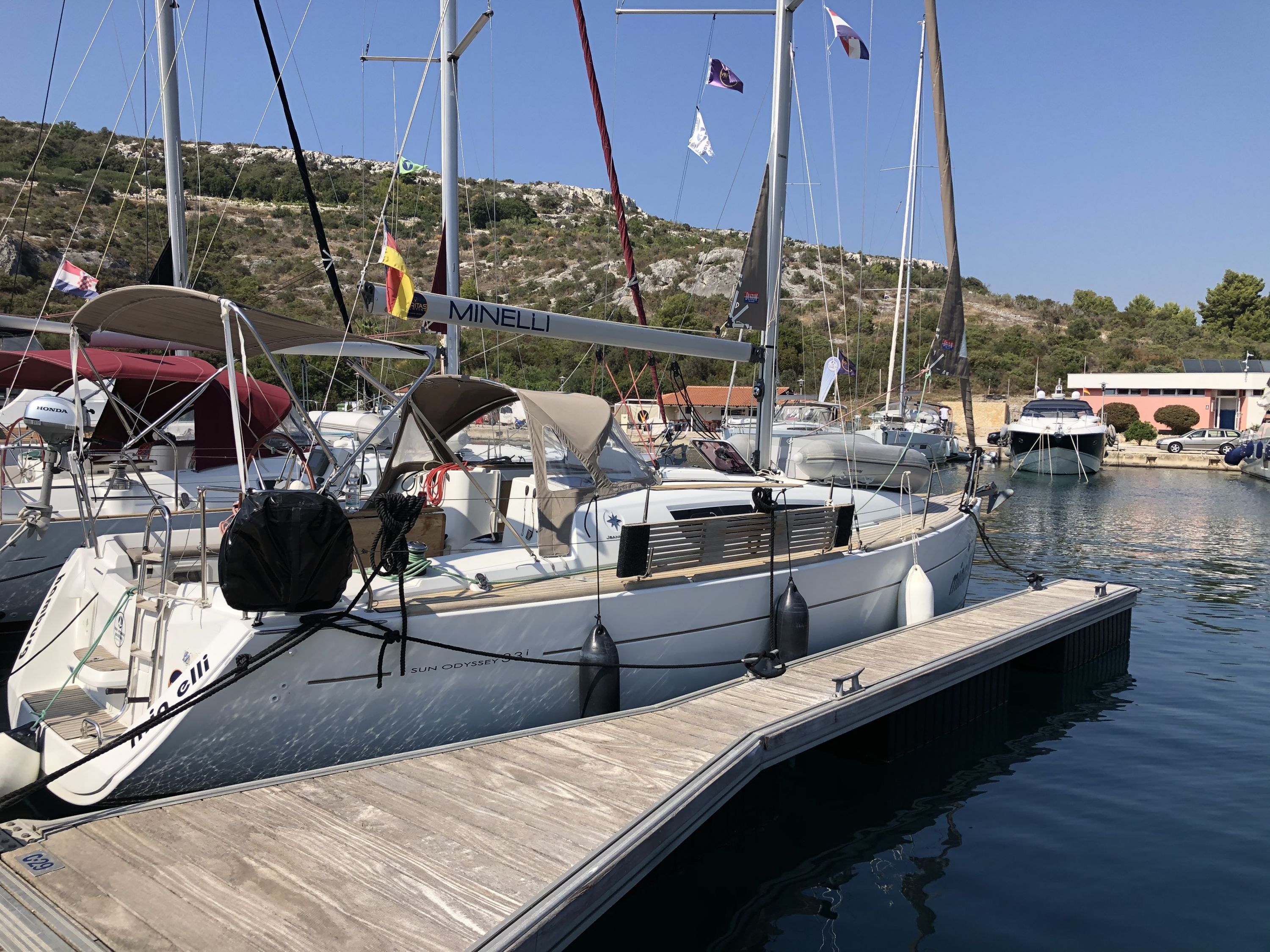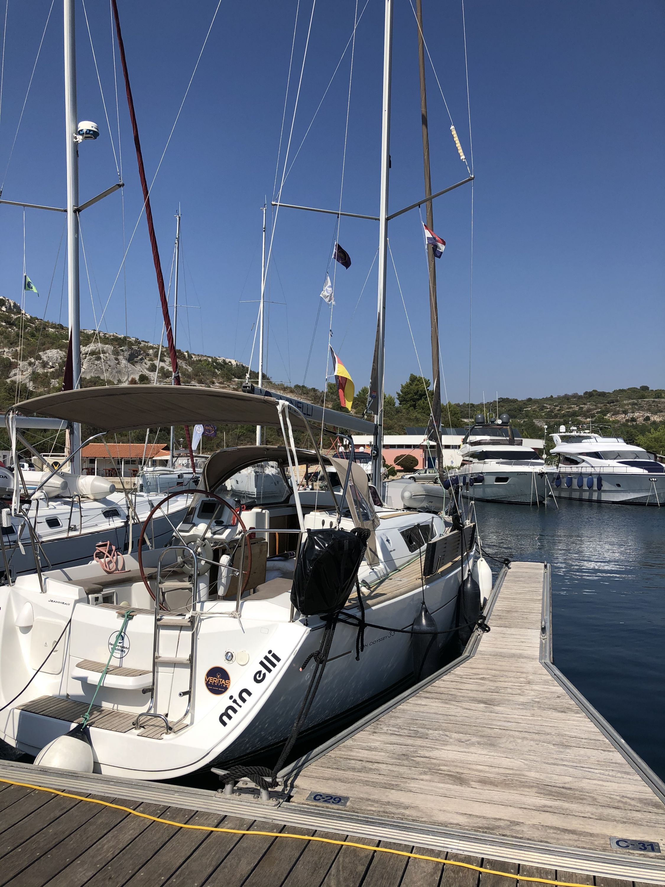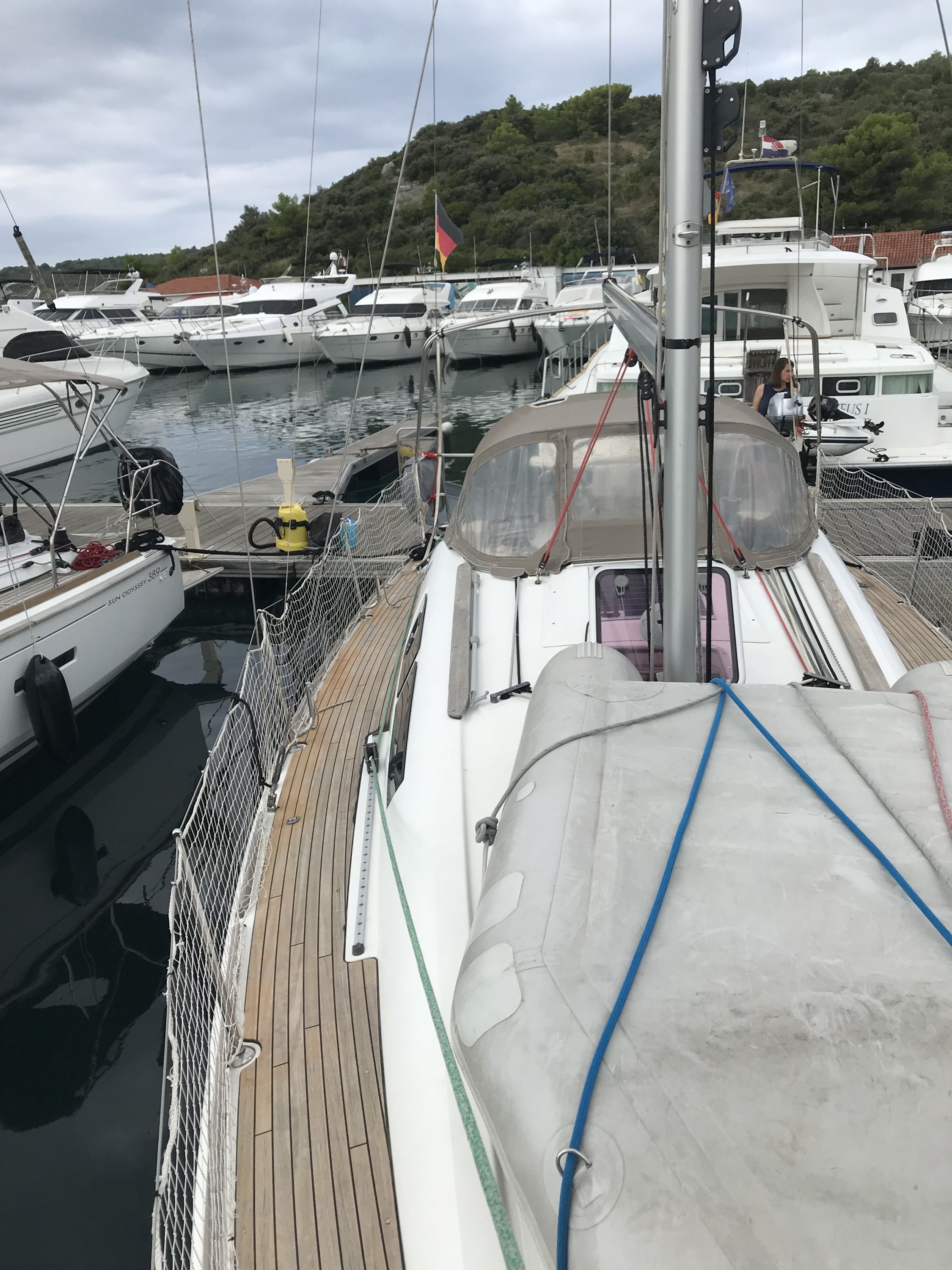 Crewliste wurde über 1 aYachtcharter erstellt und wurde beim Check in erneut erstellt. Datebübernahme von 1a YC und Prüfung der Ausweisdokumente hätte m.E. gereicht. Desgleichen wurde vor Ort nochmal handschriftlich eine Rechnung Quittung der Nebenkosten erstellt (war ja auch achon als Dokument von 1a YC vorhanden, auf das man hätte zurückgreifen können). Damit sollte das Check in effizienter möglich sein. Zum Zustand der Yacht: Ich hatte noch nie eine Yacht, bei der sich die Segeel so problemlos setzen und bergen liesen: großes Lob an den technischen Service.