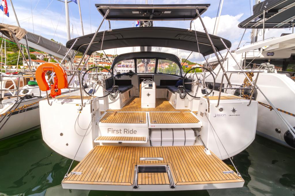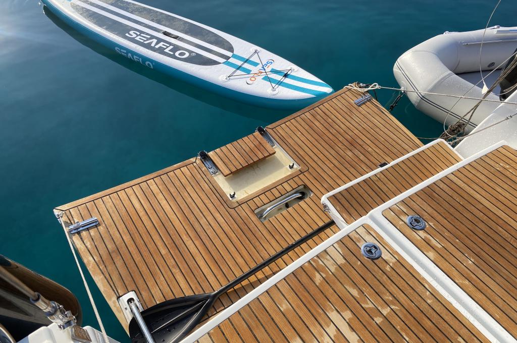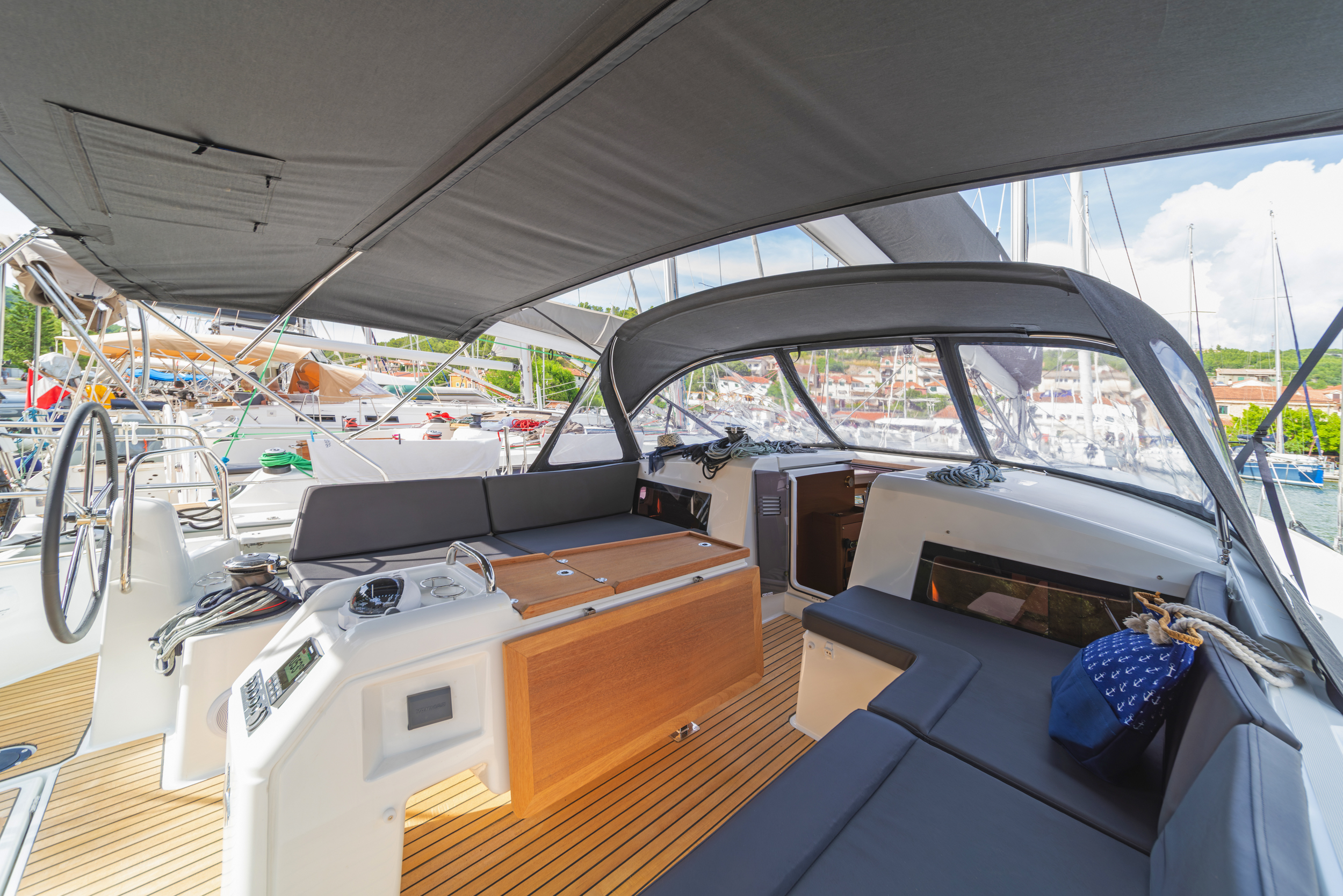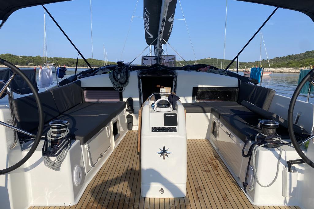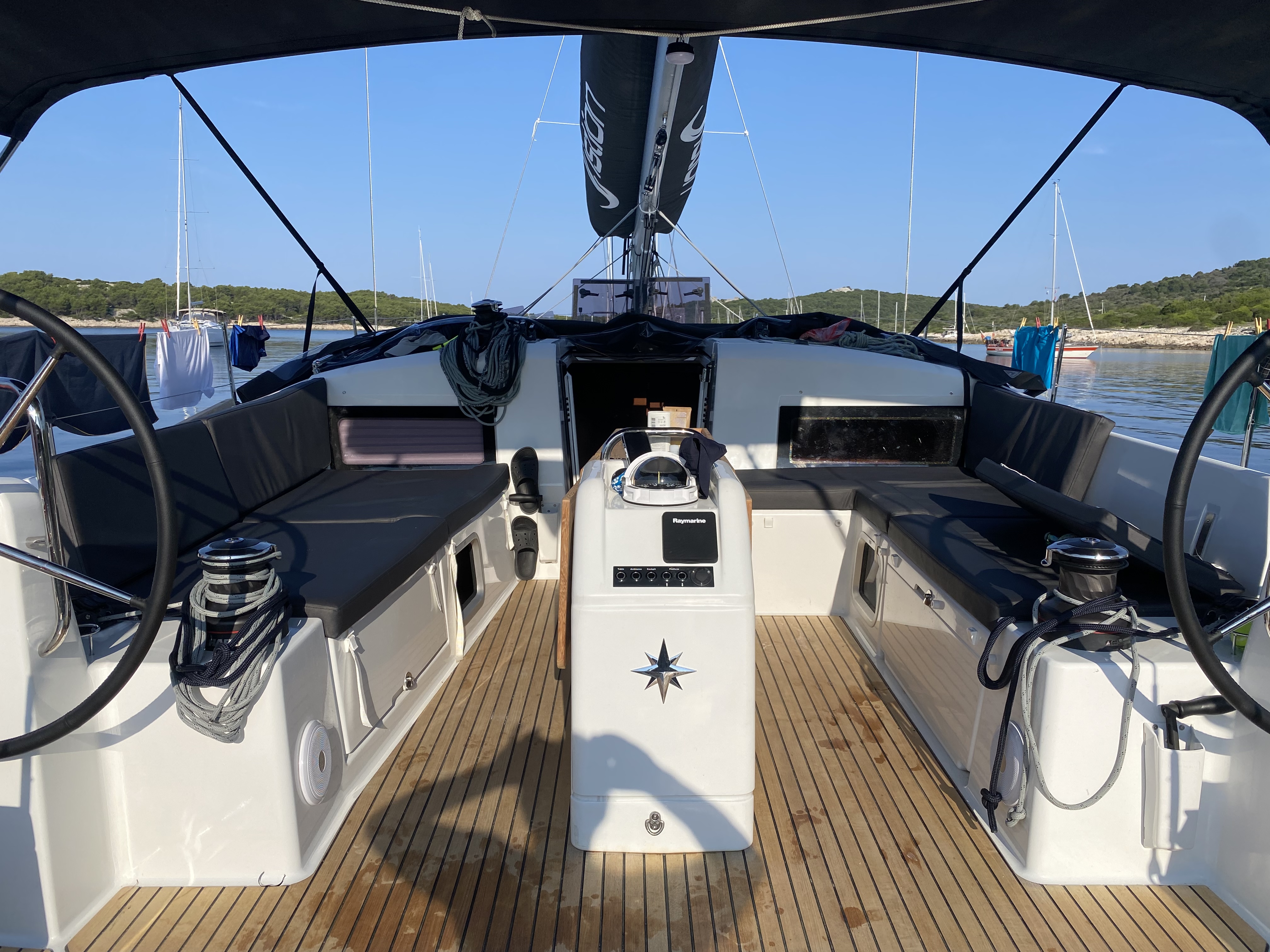 | Outside | Biminitop, Cockpitpolster, Cockpittisch mit Eisbox, Solaranlage, Sprayhood |