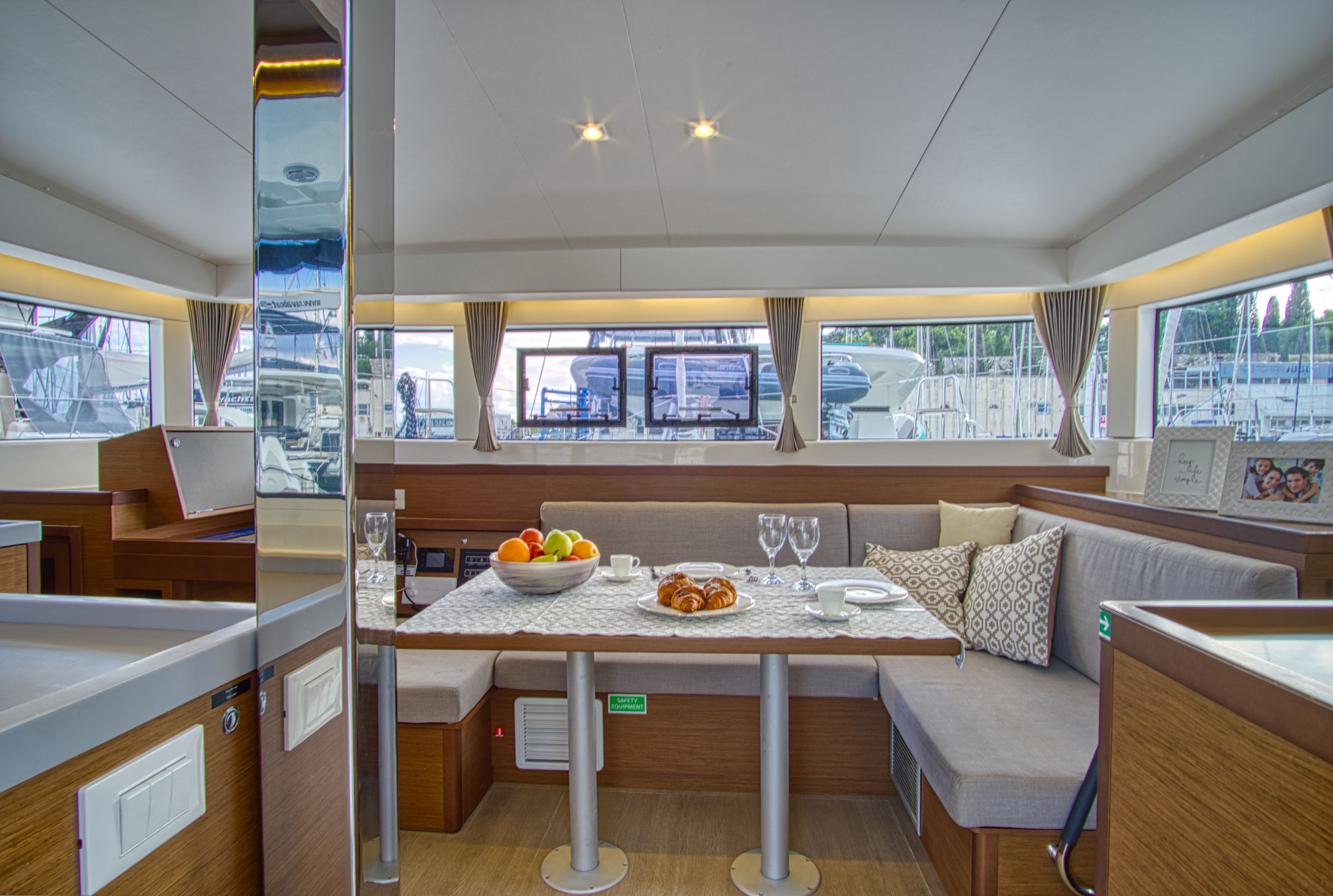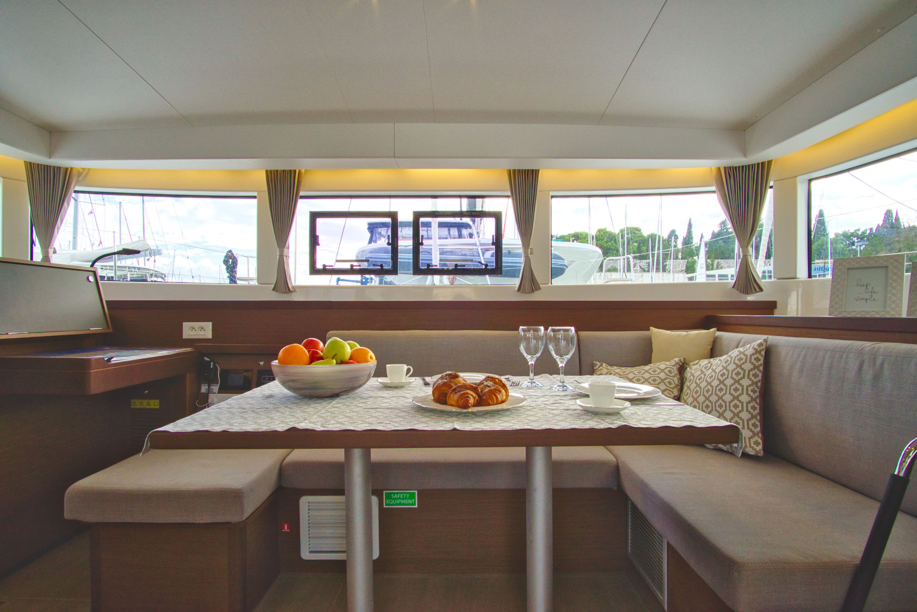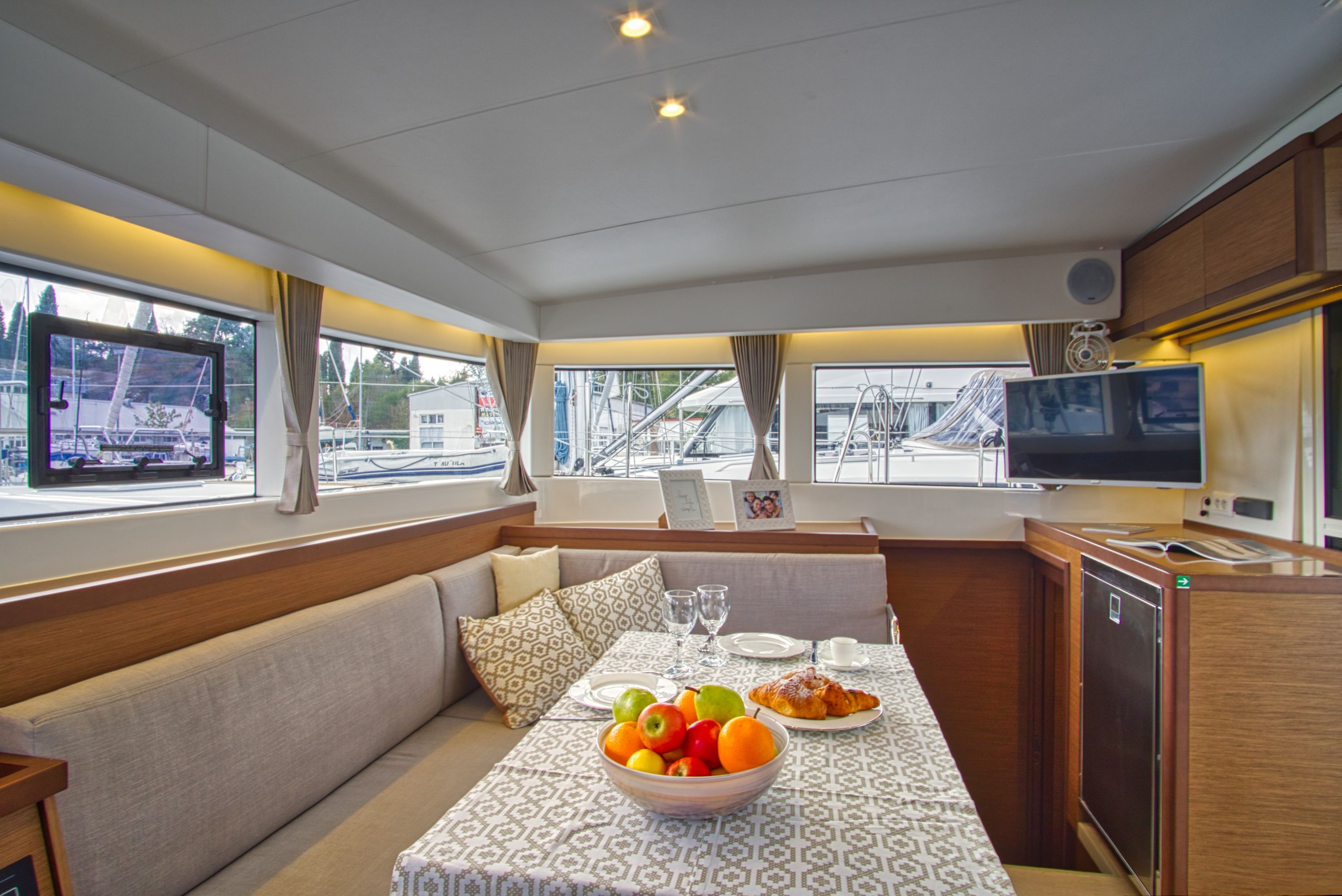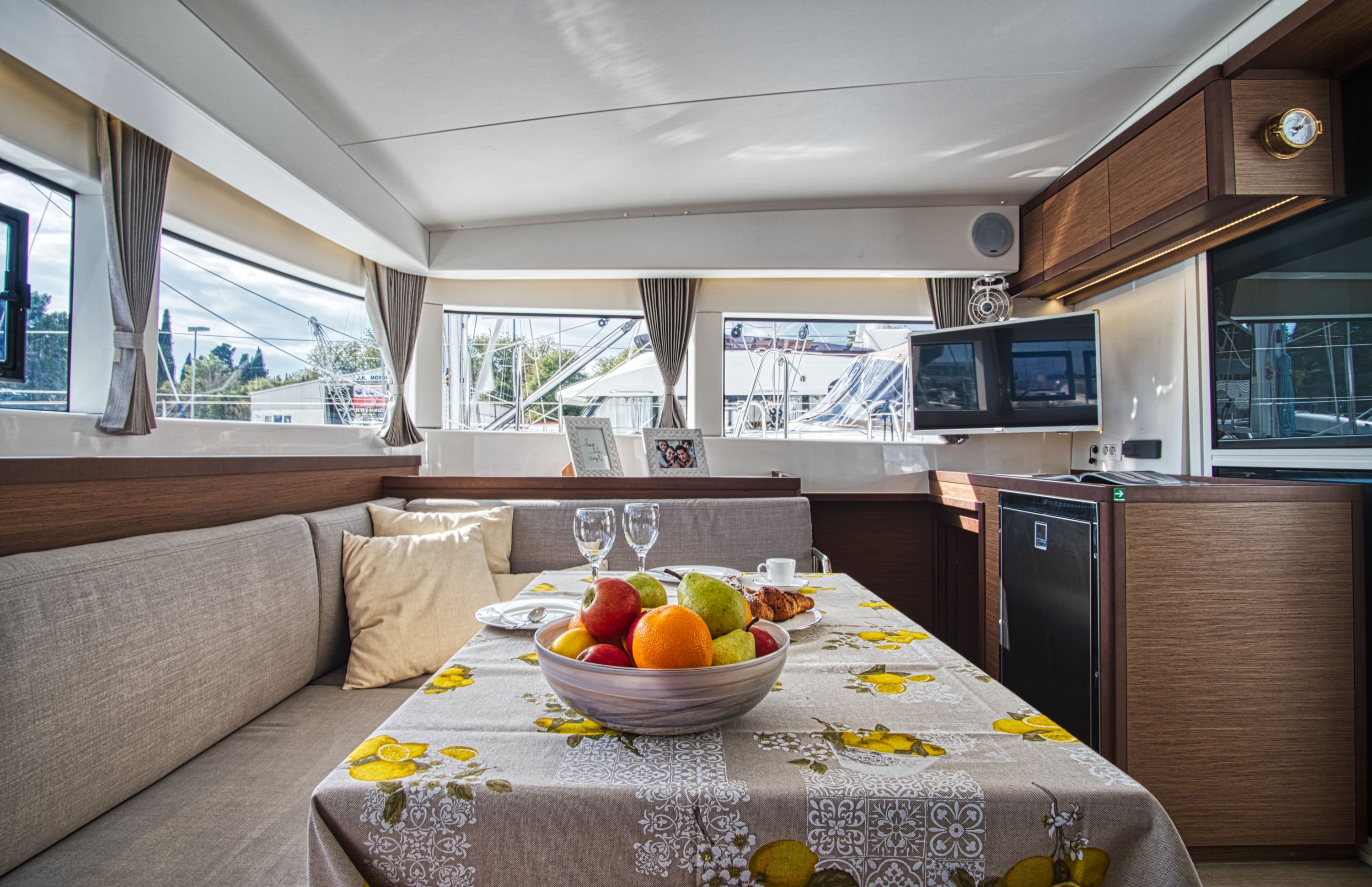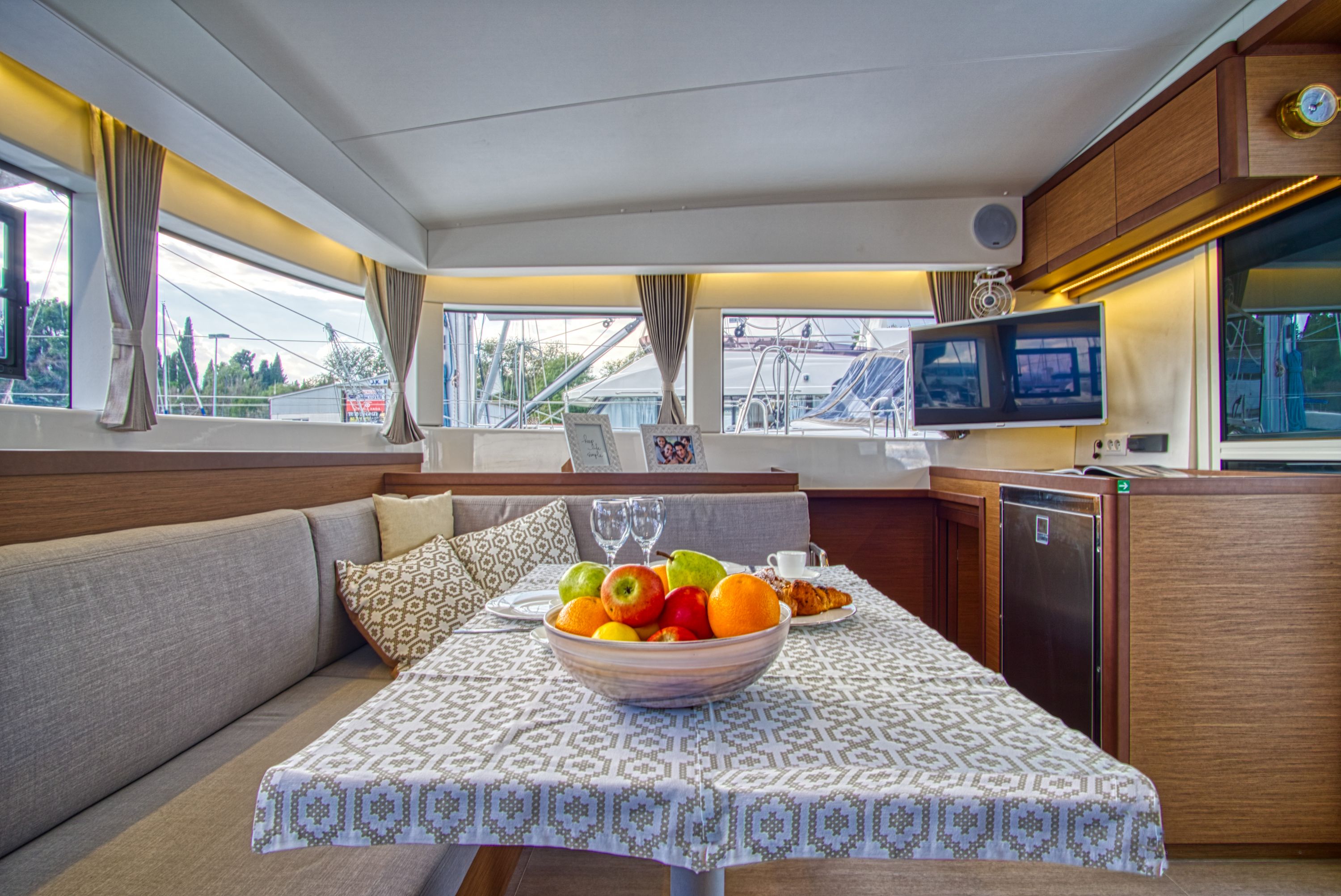 | Outside | 220 V-Landanschluss, Biminitop, Cockpitdusche, Cockpitlautsprecher, Cockpitpolster, Cockpittisch, elektr. Ankerwinsch, Gangway, Kuchenbude, Sprayhood |