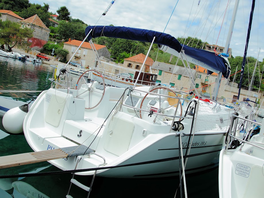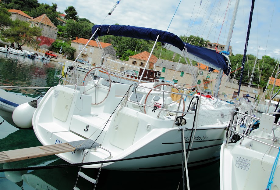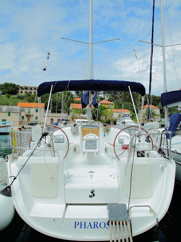 | Outside | Anker mit Kette, Badeleiter, Benzinkanister, Biminitop, Bootshaken, Cockpitdusche, Cockpitlautsprecher, Cockpitleuchte, Cockpitpolster, Cockpittisch, Deckbürste, Dieselkanister , elektr. Ankerwinsch, Fender, Festmacherleinen, Gangway, Kugelfender, Sprayhood, Teak im Cockpit, Wasserschlauch, Winschen |