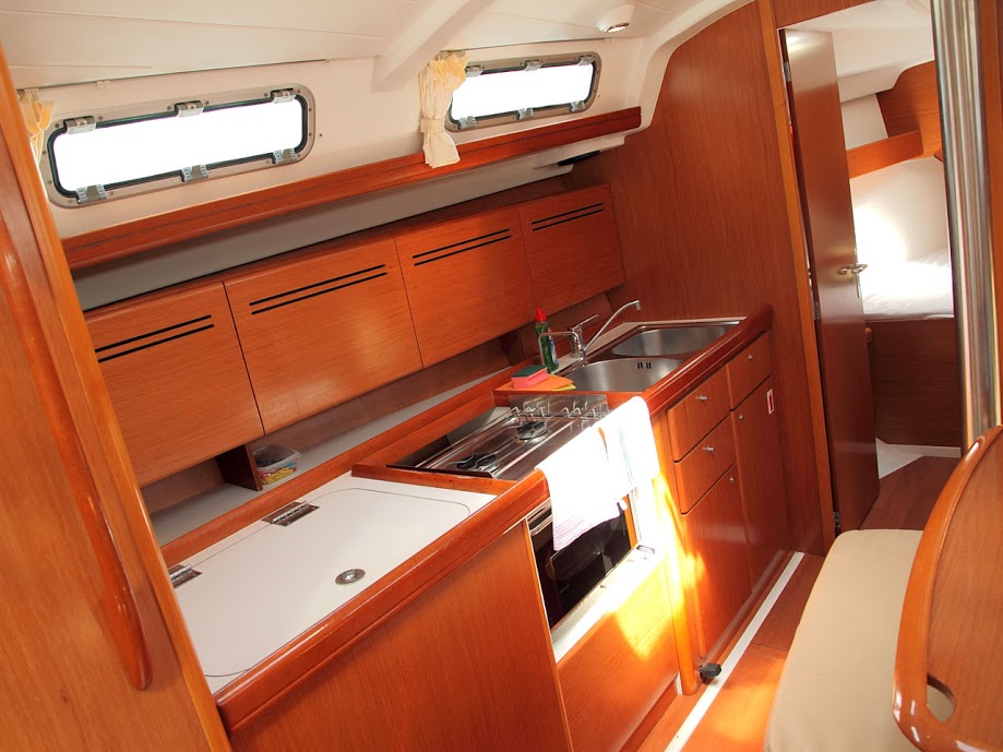 | Inside | Backofen, Borduhr, Fäkalientank, Gasherd, Kühlschrank, Landstromkabel, Luftpumpe für Beiboot, Pantryausstattung, Radio mit CD, Salontisch absenkbar, Wasserkocher, WC-Pumpe |
