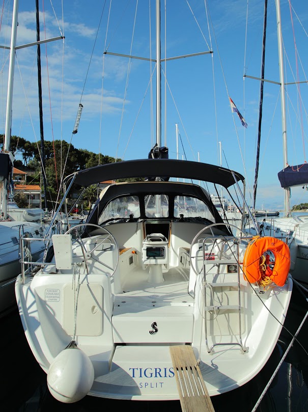| Outside | Anker mit Kette, Badeleiter, Benzinkanister, Biminitop, Bootshaken, Cockpitdusche, Cockpitlautsprecher, Cockpitleuchte, Cockpitpolster, Cockpittisch, Deckbürste, Dieselkanister , elektr. Ankerwinsch, Fender, Festmacherleinen, Gangway, Kugelfender, Sprayhood, Teak im Cockpit, Wasserschlauch, Winschen |