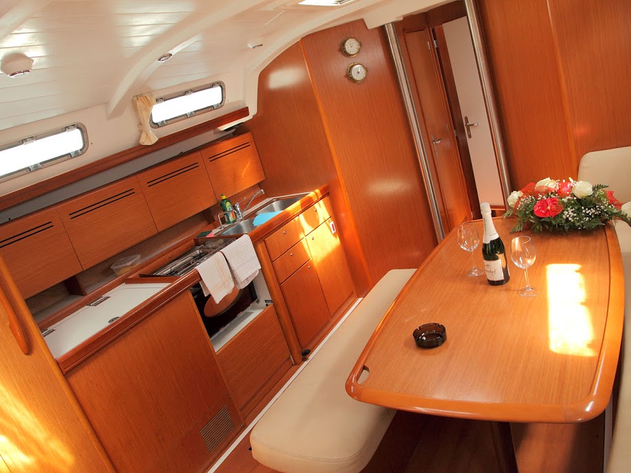| Inside | Backofen, Borduhr, Fäkalientank, Gasherd, Kühlschrank, Ladegerät, Landstromkabel, Luftpumpe für Beiboot, Pantryausstattung, Radio mit CD, Salontisch absenkbar, Wasserkocher, WC-Pumpe |