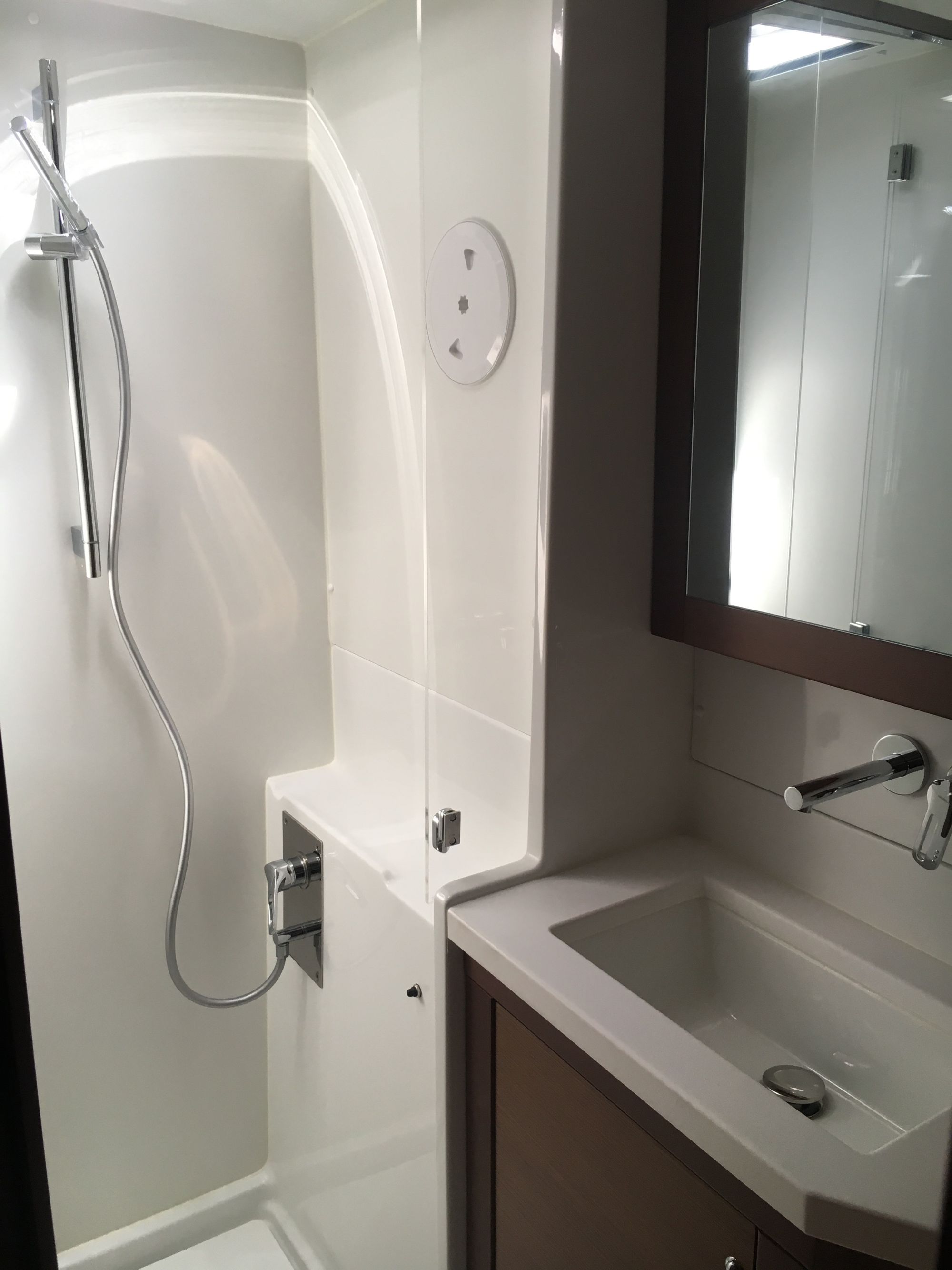 | Inside | Backofen, Borduhr, CD-Player, Fäkalientank, Gasherd mit Backofen, Gefrierschrank, Generator, Heizung, Klimaanlage (ohne Landstrombedarf), Kühlschrank, Landstromkabel, Luftpumpe für Beiboot, Pantryausstattung, Radio, Salontisch absenkbar, TV, USB Steckdose, Ventilator, Warmwasser, Wasserkocher, WC (elektr.) |