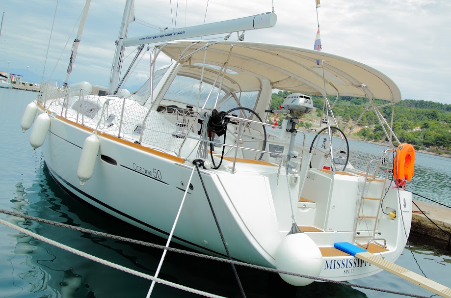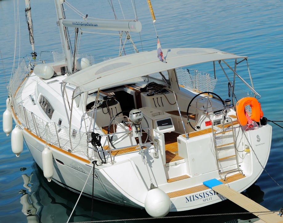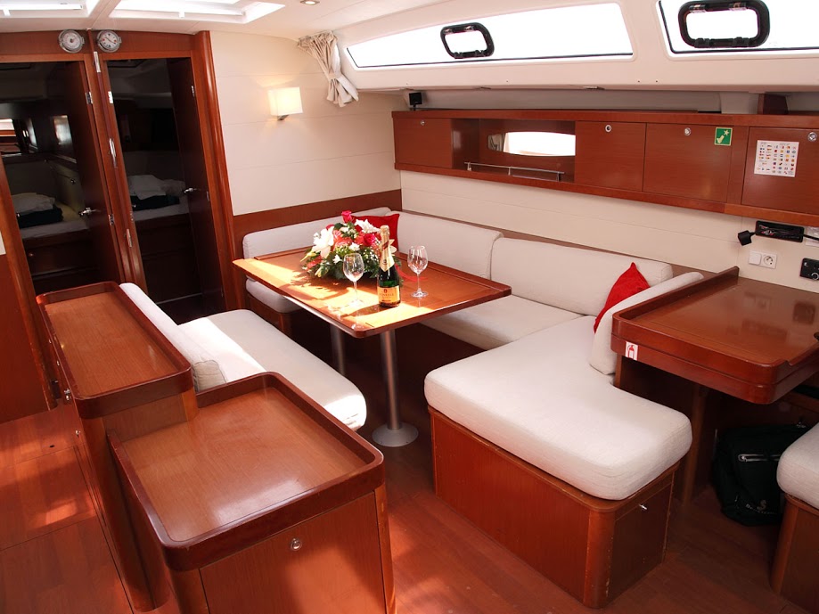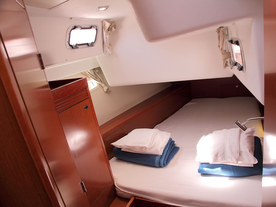 | Outside | Anker mit Kette, Badeleiter, Biminitop, Bootshaken, Cockpitdusche, Cockpitlautsprecher, Cockpitleuchte, Cockpitpolster, Cockpittisch, Deckbürste, Dieselkanister , elektr. Ankerwinsch, Fender, Festmacherleinen, Gangway, Sprayhood, Teak im Cockpit, Wasserschlauch, Winschen |