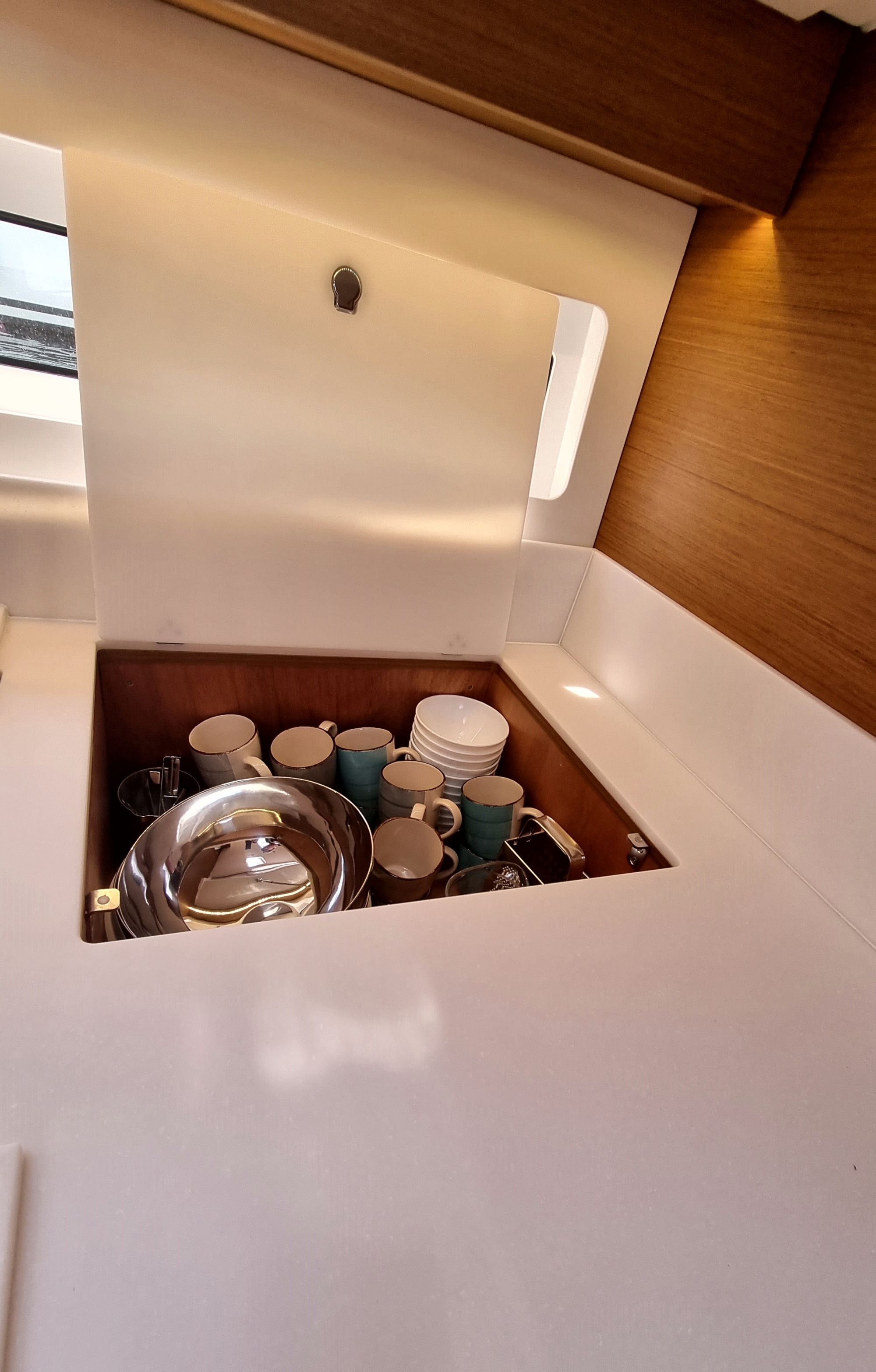 | Inside | 2. Kühlschrank, Backofen, Borduhr, Fäkalientank, Gasherd mit Backofen, Heizung, Kühlschrank, Ladegerät, Landstromkabel, Luftpumpe für Beiboot, Pantryausstattung, Radio, Spüle mit 2 Becken, USB Steckdose, Ventilator, Wasserkocher, WC (elektr.) |
