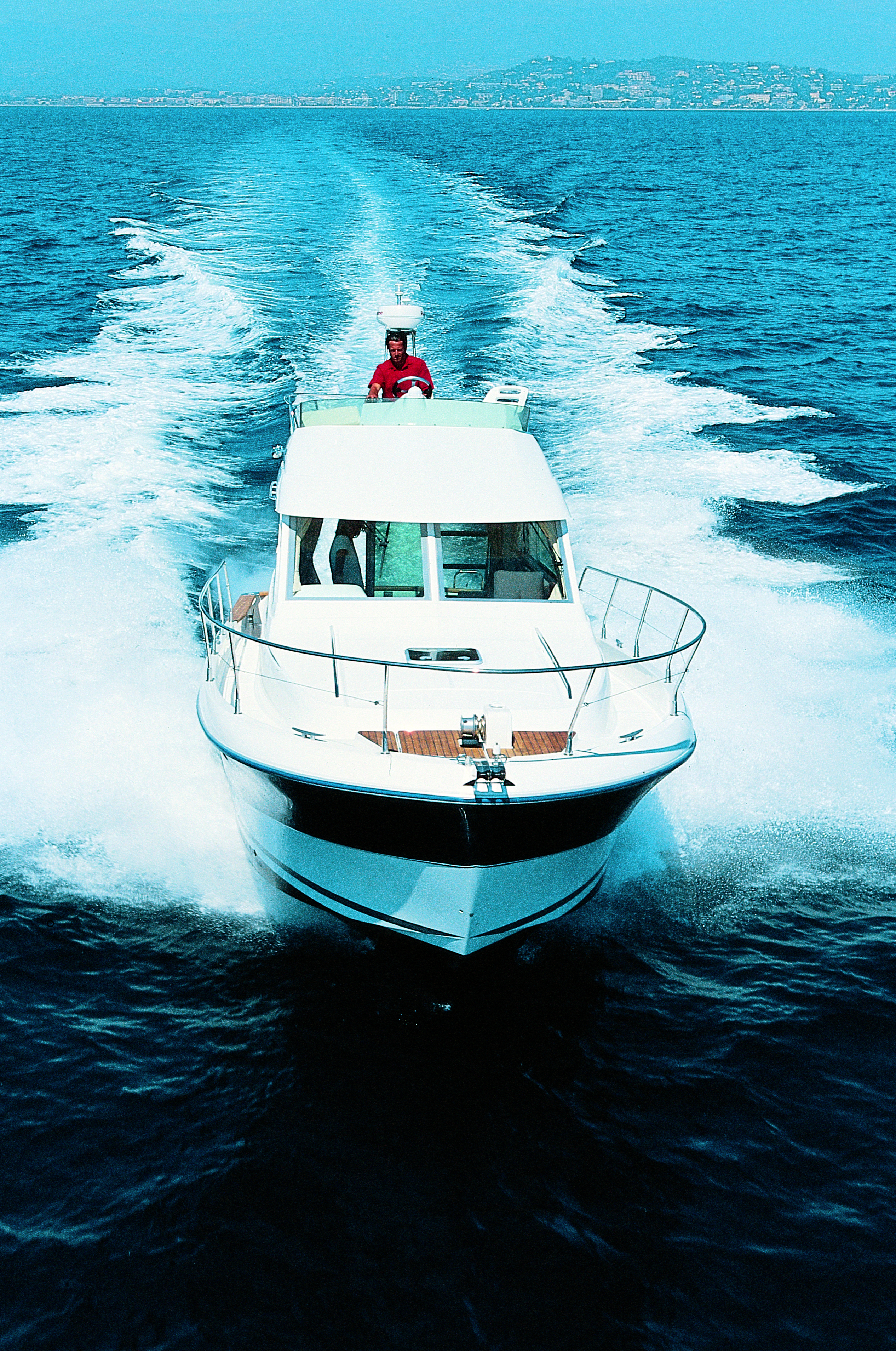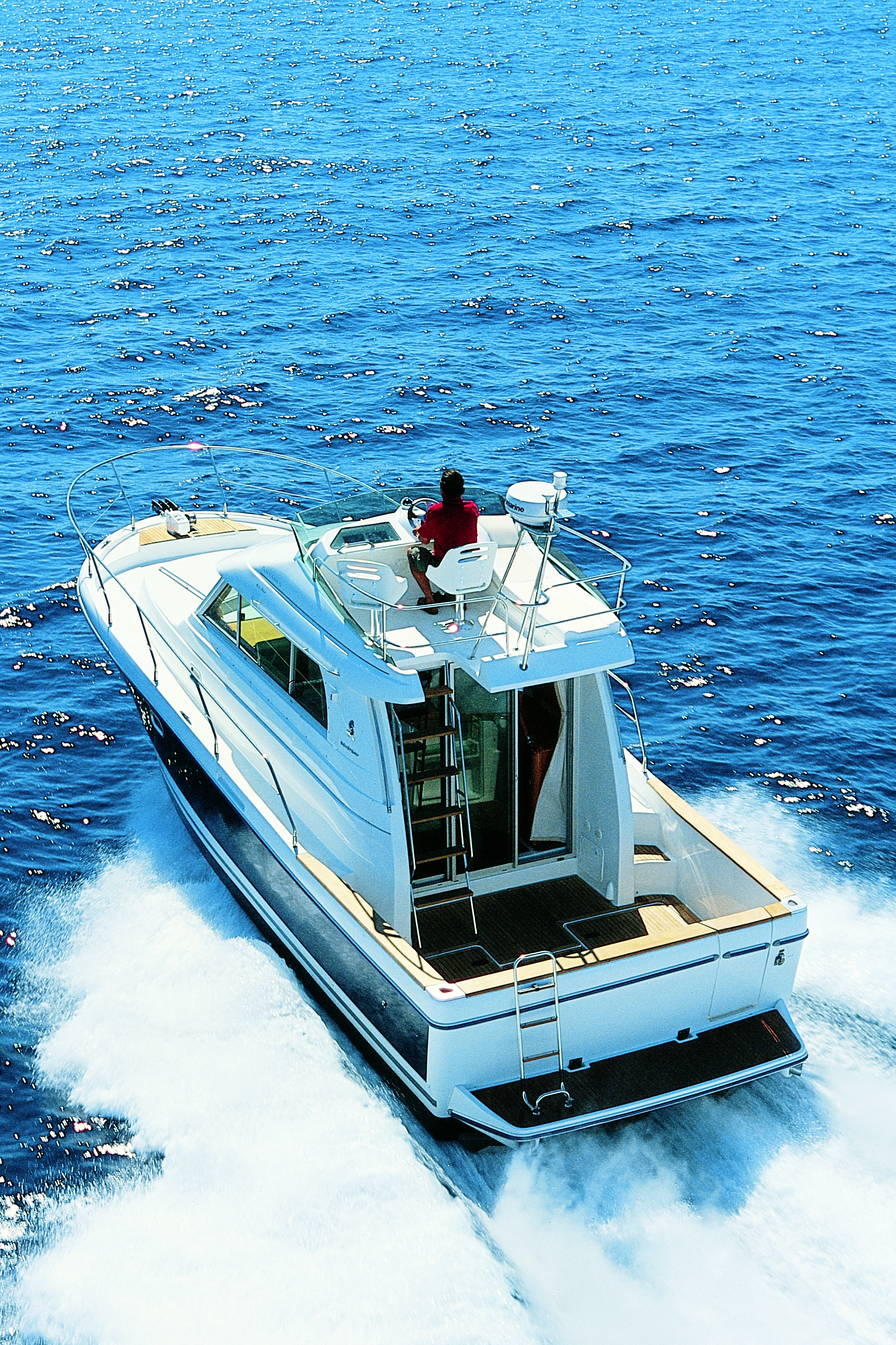 Das Biminitop befindet sich nur über dem Heck. Nicht auf der Flybridge