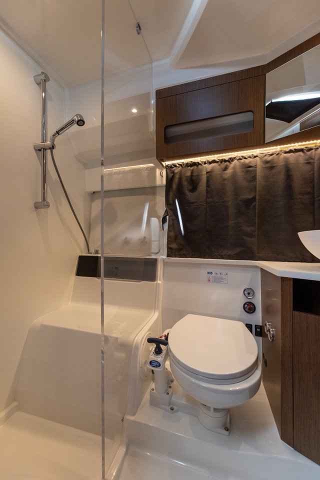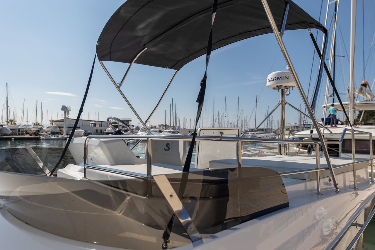 | Outside | 220 V-Landanschluss, Anker mit Kette, Badeplattform, Biminitop auf Flybridge, Cockpitdusche, Cockpitkühlschrank, Cockpitlautsprecher, Cockpitpolster, Cockpittisch, elektr. Ankerwinsch, Gangway, Kühlschrank auf Flybridge |