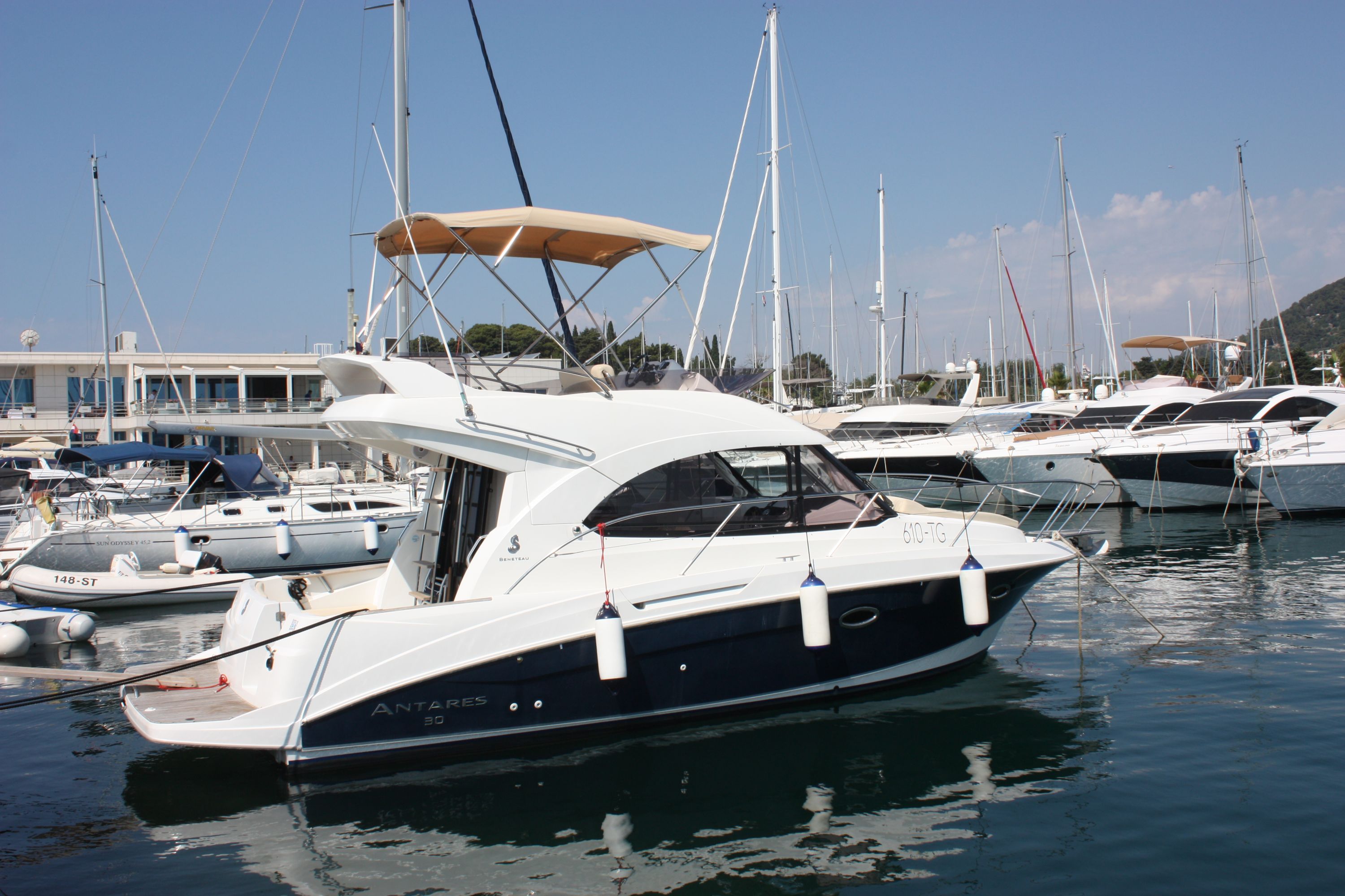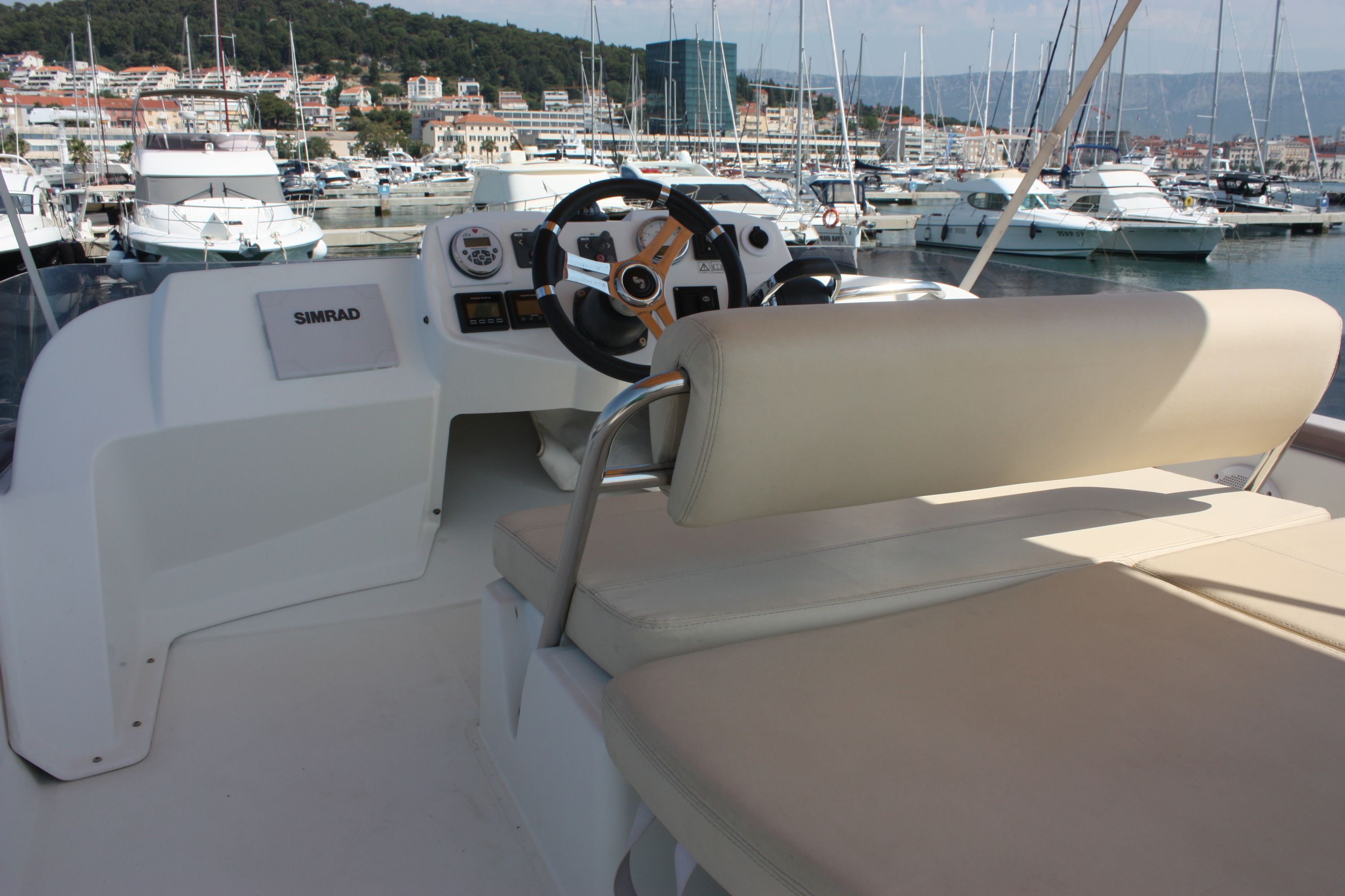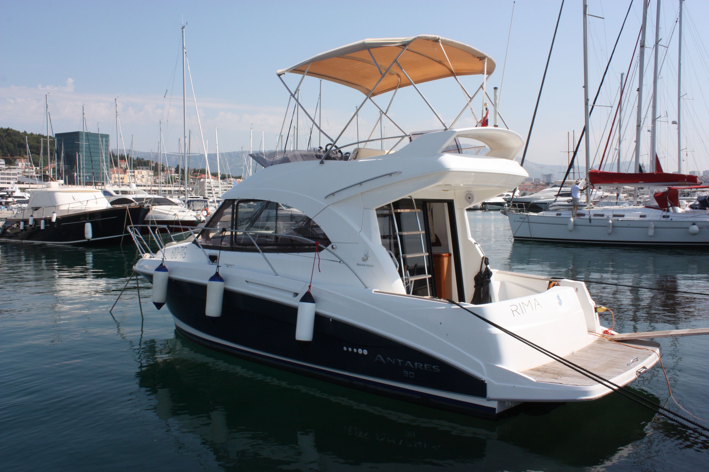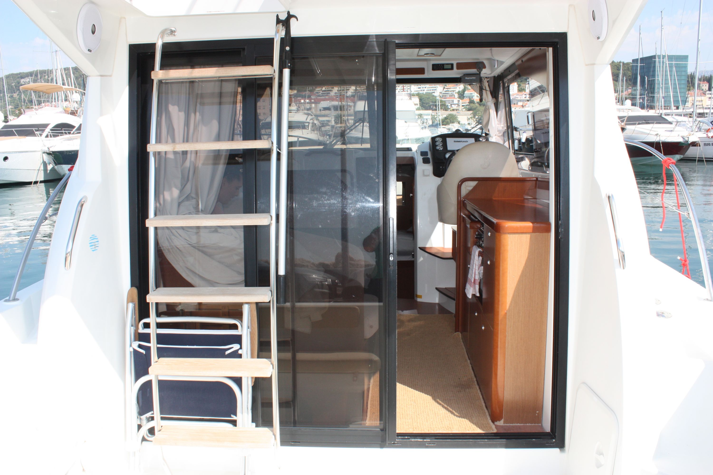| Outside | 220 V-Landanschluss, Badeplattform, Cockpitdusche, Cockpittisch, hydraul. Gangway, Sonnensegel |