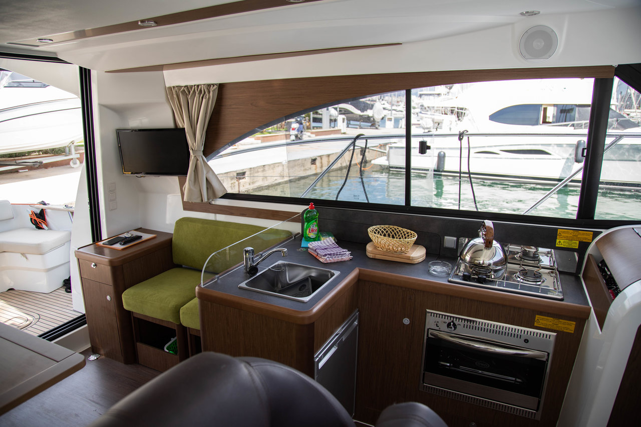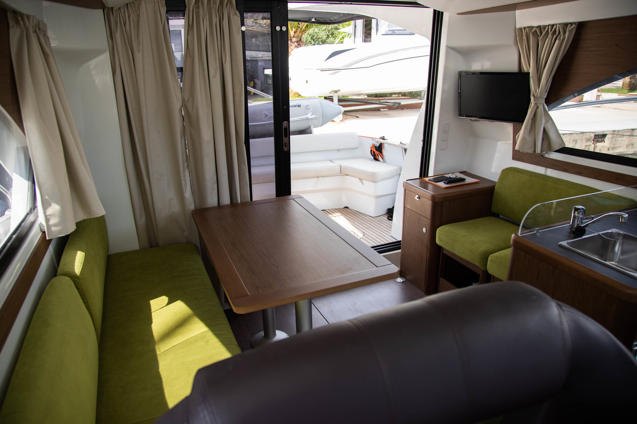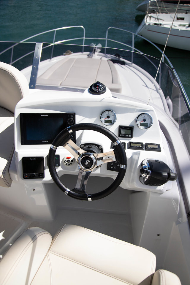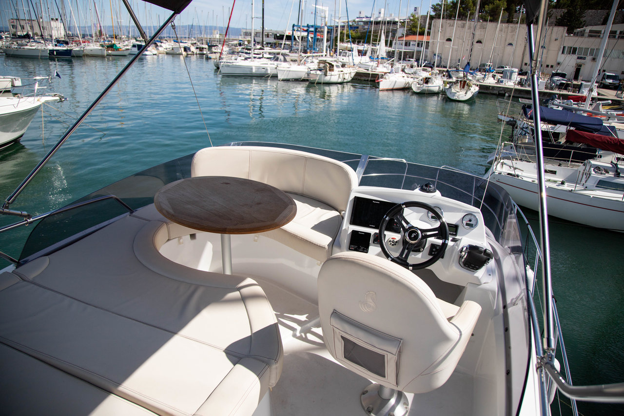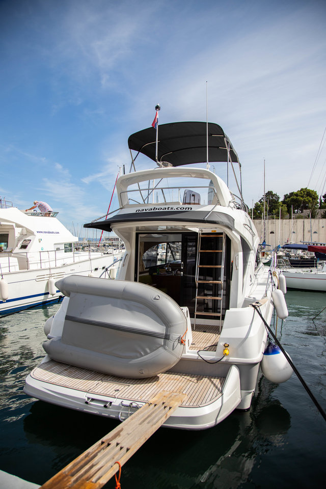 | Outside | 220 V-Landanschluss, Badeplattform, Biminitop, Cockpitdusche, Cockpitlautsprecher, Cockpittisch, elektr. Ankerwinsch, Gangway, Teak im Cockpit |