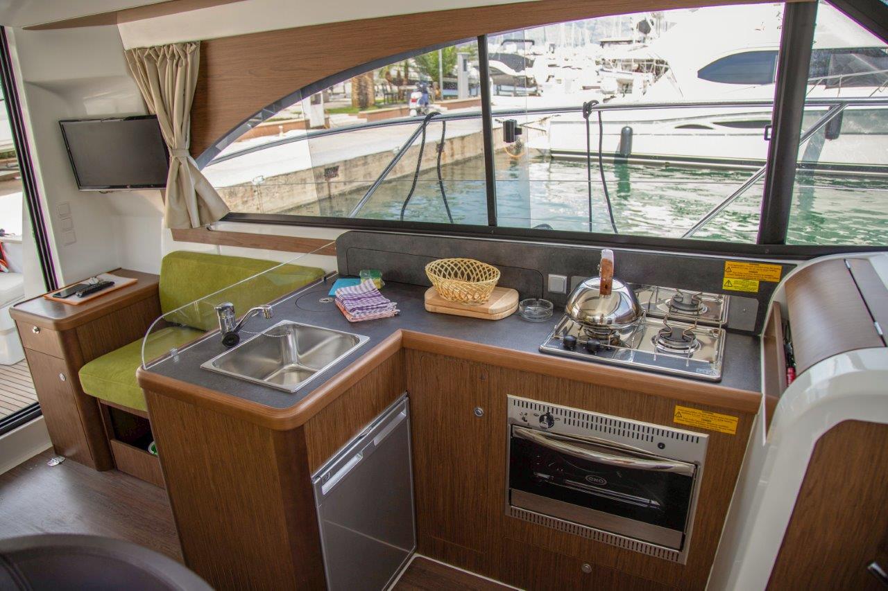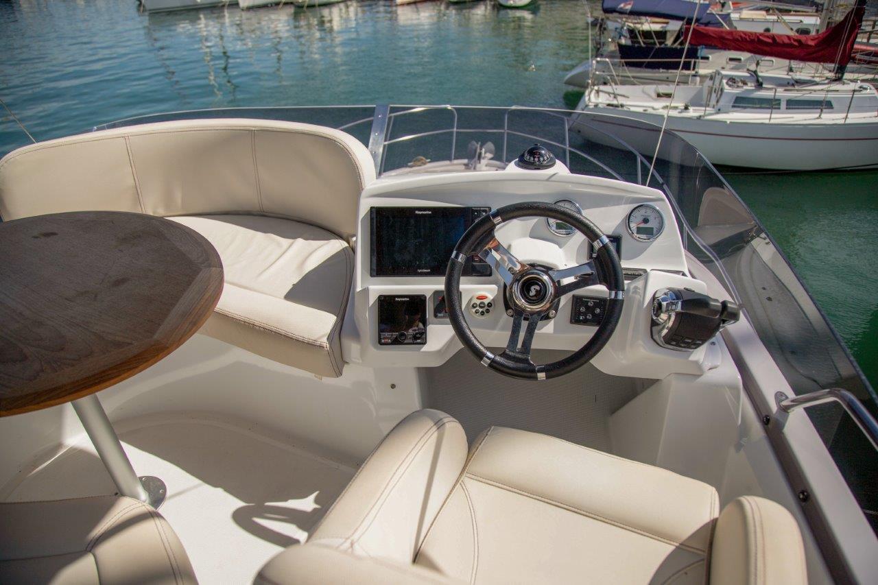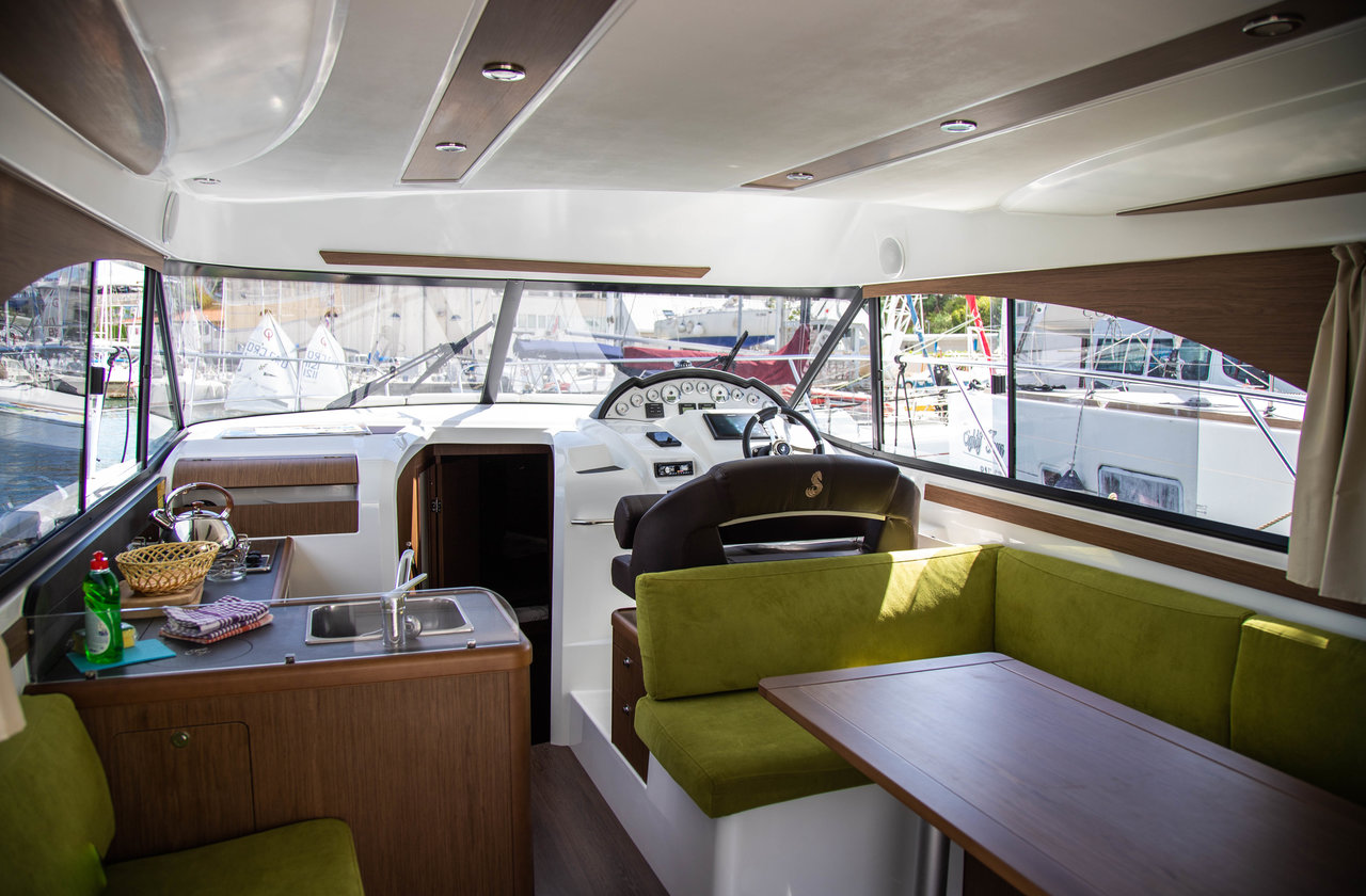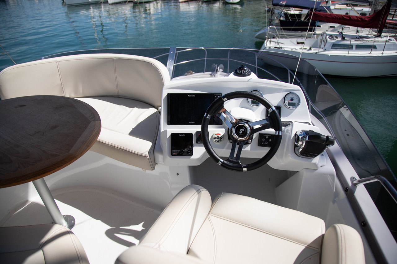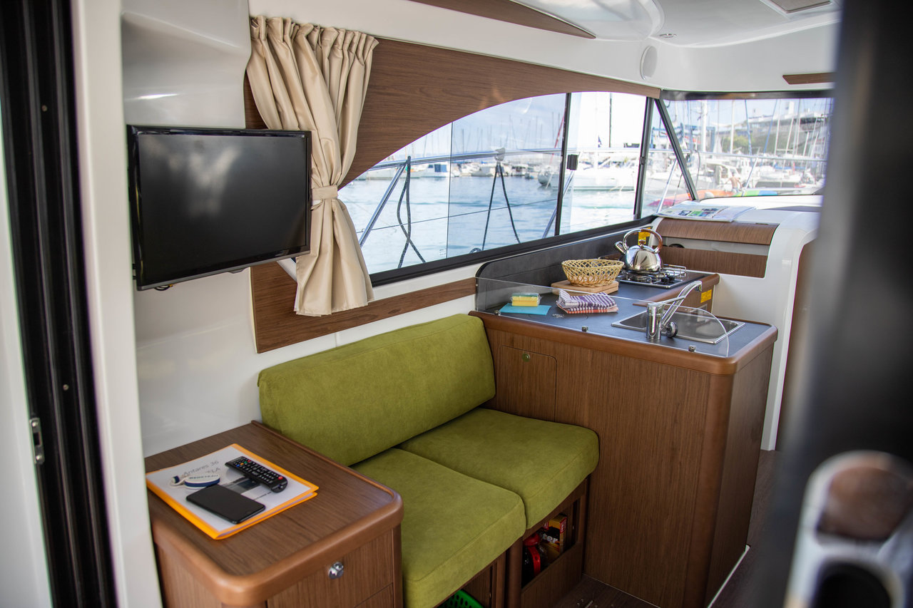 | Outside | 220 V-Landanschluss, Badeplattform, Biminitop, Cockpitdusche, Cockpitlautsprecher, Cockpittisch, elektr. Ankerwinsch, Gangway, Teak im Cockpit |