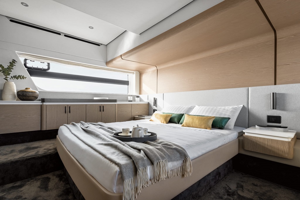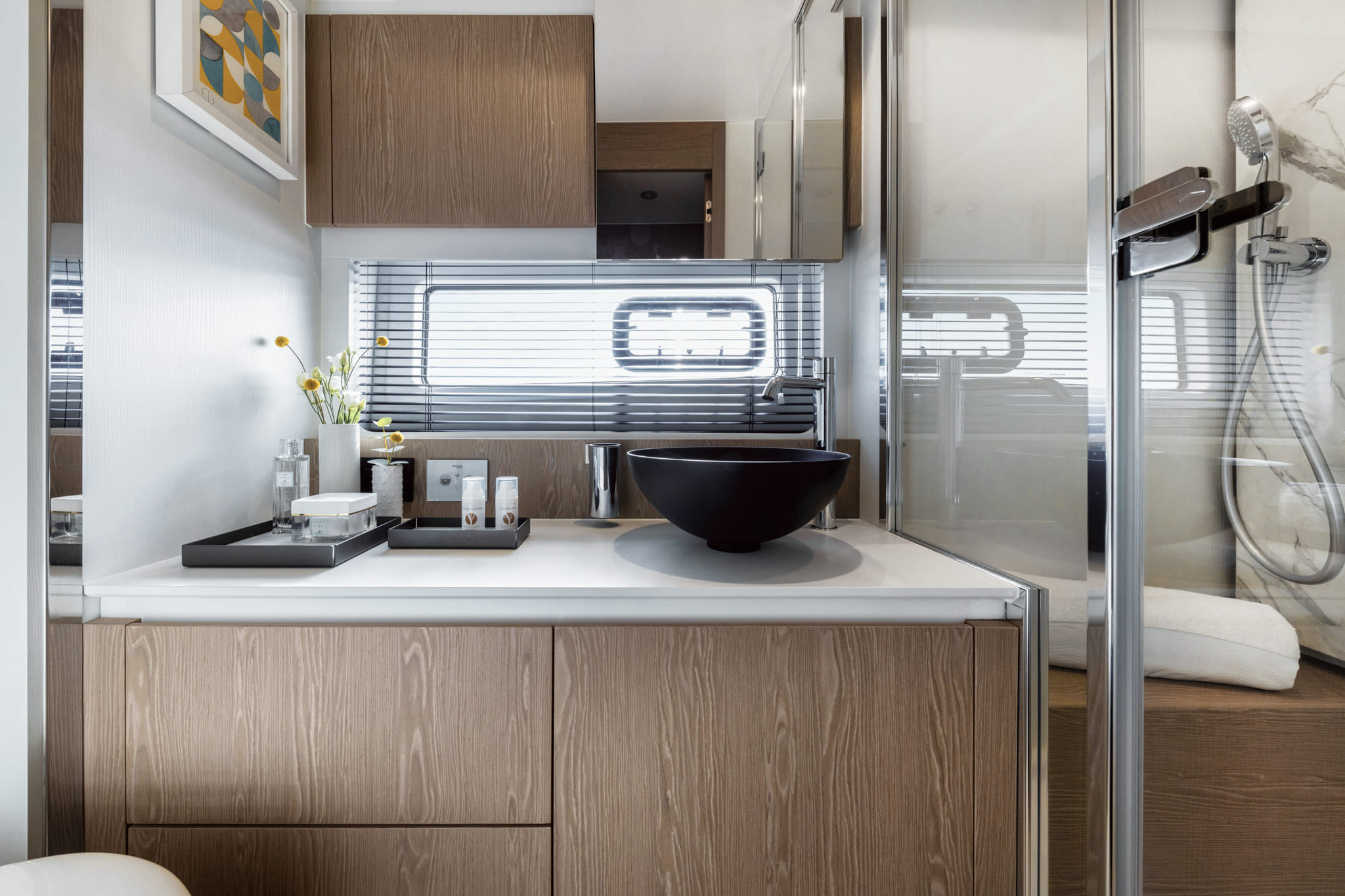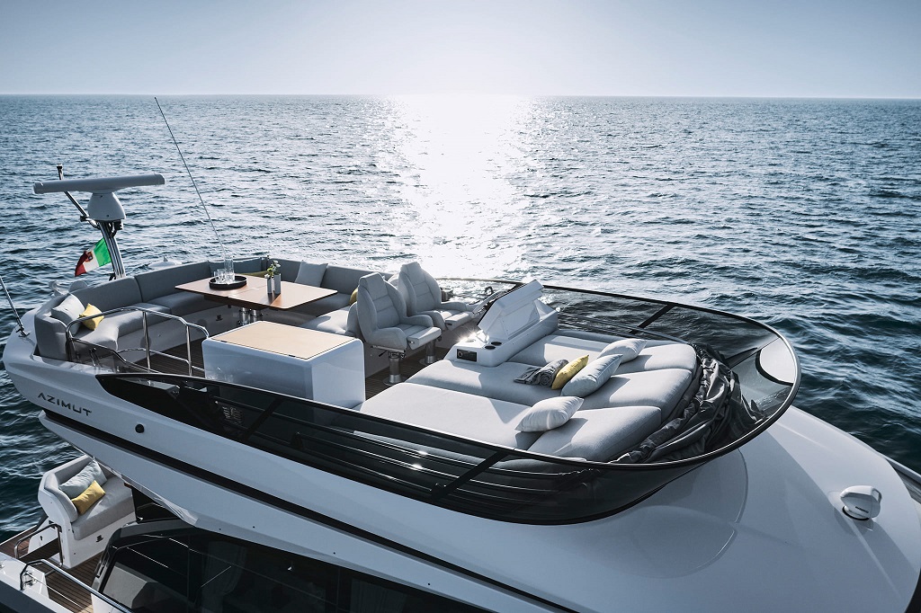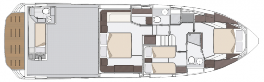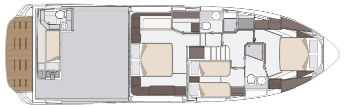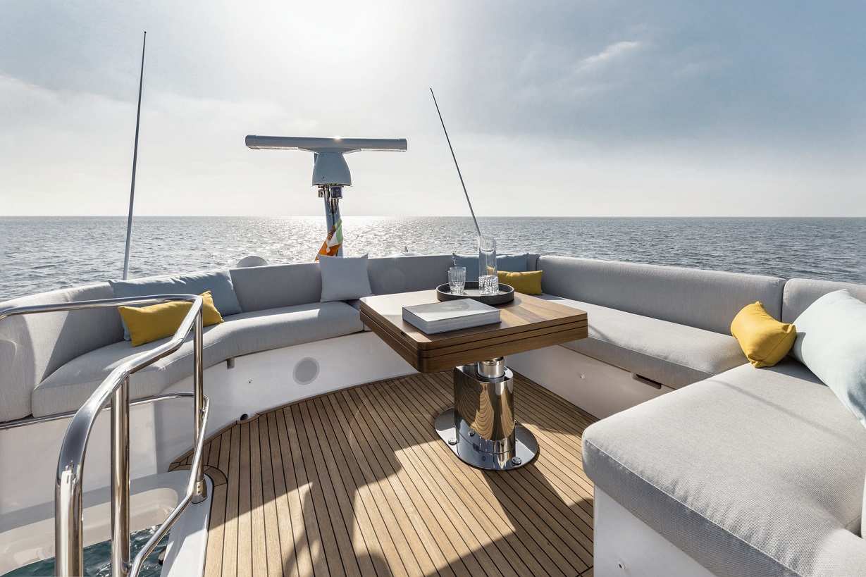 | Outside | 220 V-Landanschluss, Badeplattform (hydr.), Cockpitpolster, Cockpittisch, Deckpolster, elektr. Winsch, Flybridge, Hardtop, hydraul. Gangway, Polster auf Flybridge, Sonnendeck |